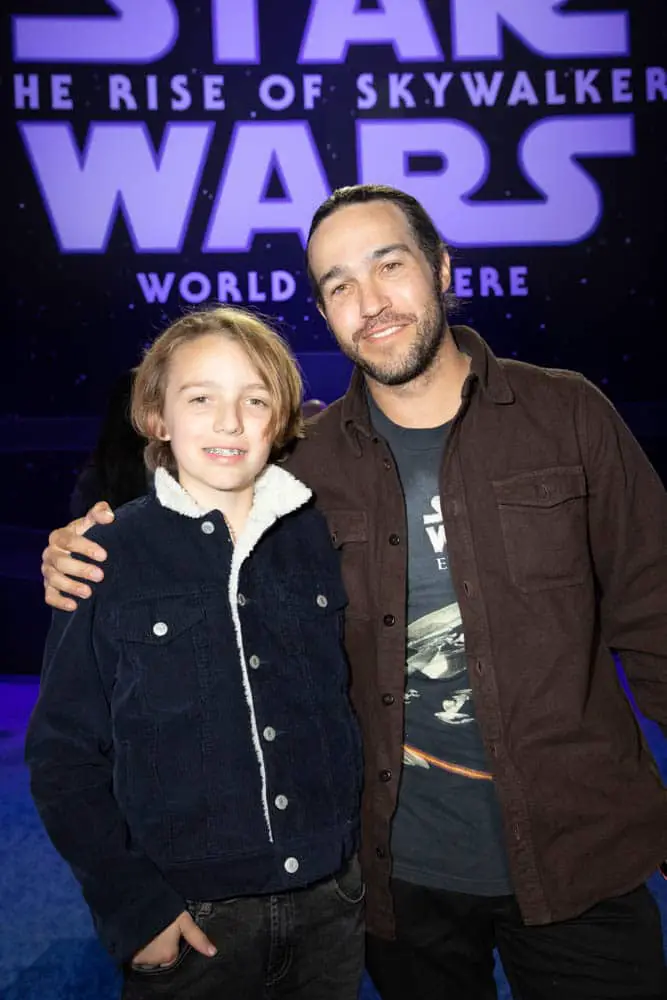 HOLLYWOOD, CALIFORNIA – DECEMBER 16: (L-R) Bronx Wentz and Pete Wentz arrive for the World Premiere of “Star Wars: The Rise of Skywalker”, the highly anticipated conclusion of the Skywalker saga on December 16, 2019 in Hollywood, California. (Photo by Jesse Grant/Getty Images for Disney)