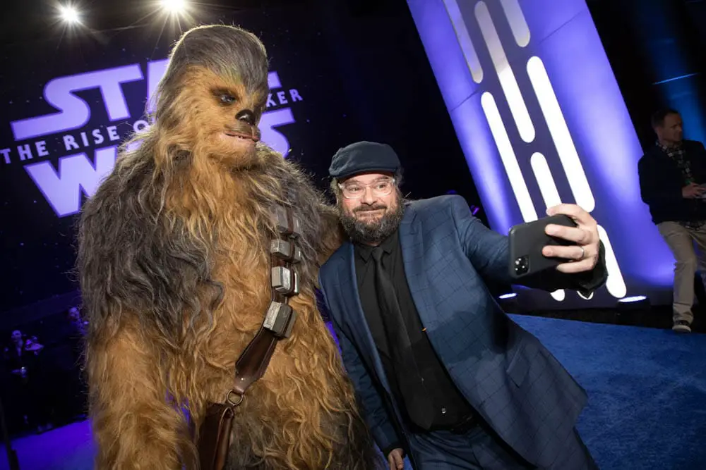 Chris Terrio and Chewbacca arrive for the World Premiere of Star Wars: The Rise of Skywalker, the highly anticipated conclusion of the Skywalker saga, in Hollywood, CA, on December 16, 2019..(photo: Alex J. Berliner/ABImages)