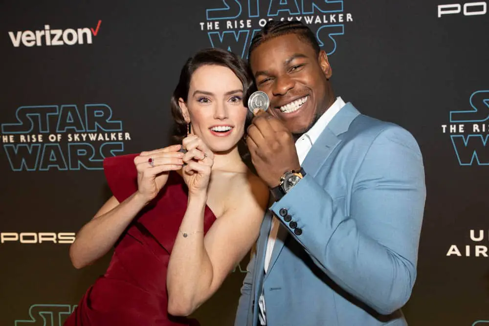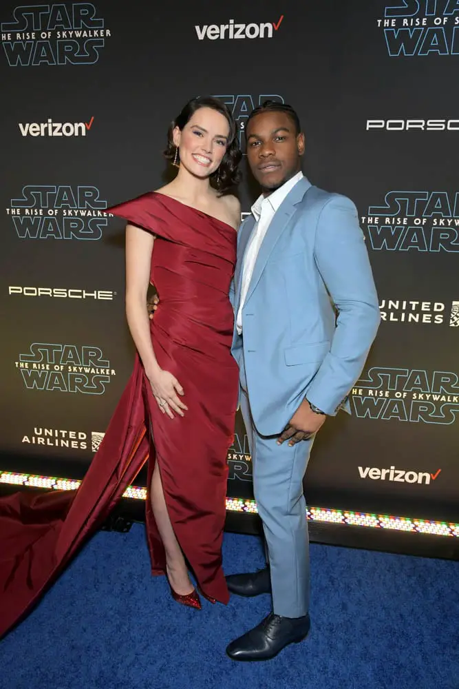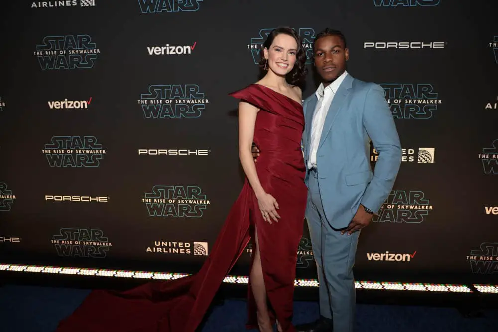 HOLLYWOOD, CALIFORNIA – DECEMBER 16: (L-R) Daisy Ridley and John Boyega arrive for the World Premiere of “Star Wars: The Rise of Skywalker”, the highly anticipated conclusion of the Skywalker saga on December 16, 2019 in Hollywood, California. (Photo by Charley Gallay/Getty Images for Disney)