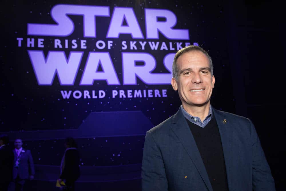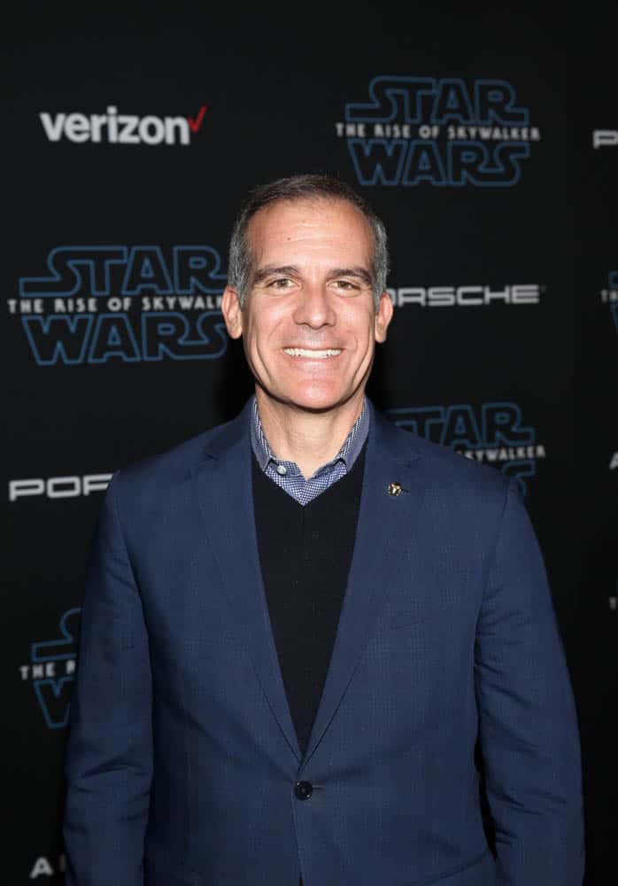 Los Angeles Mayor Eric Garcetti arrives for the World Premiere of Star Wars: The Rise of Skywalker, the highly anticipated conclusion of the Skywalker saga, in Hollywood, CA, on December 16, 2019..(photo: Alex J. Berliner/ABImages)