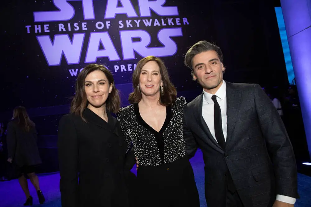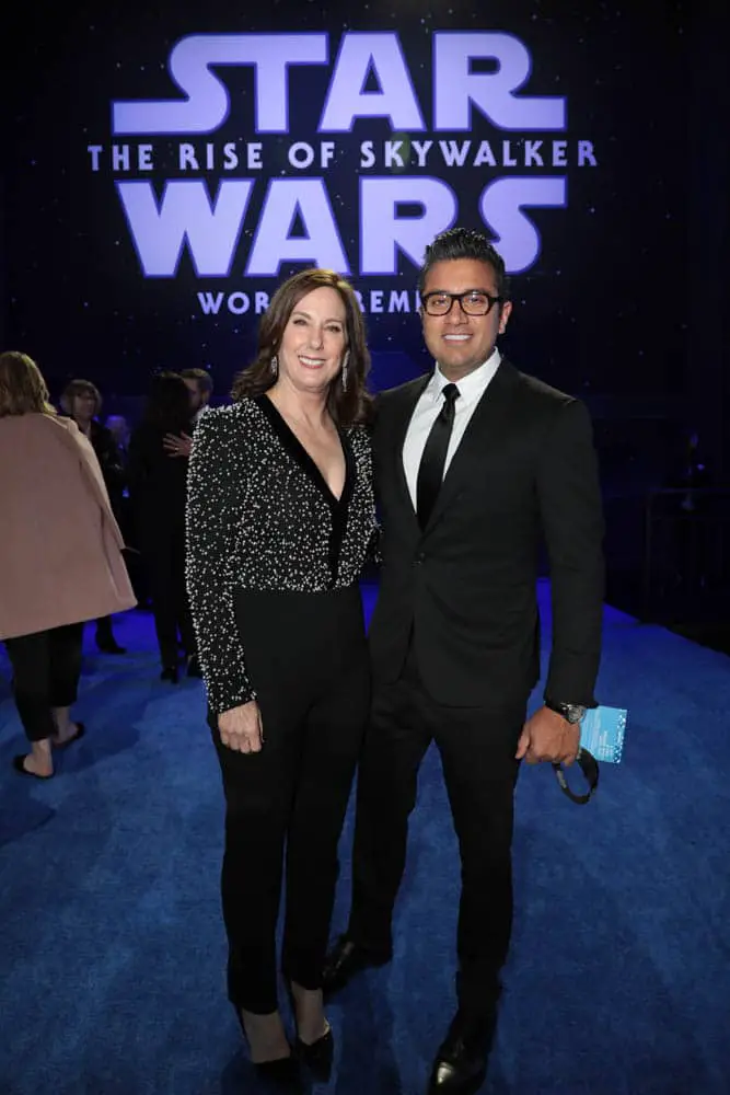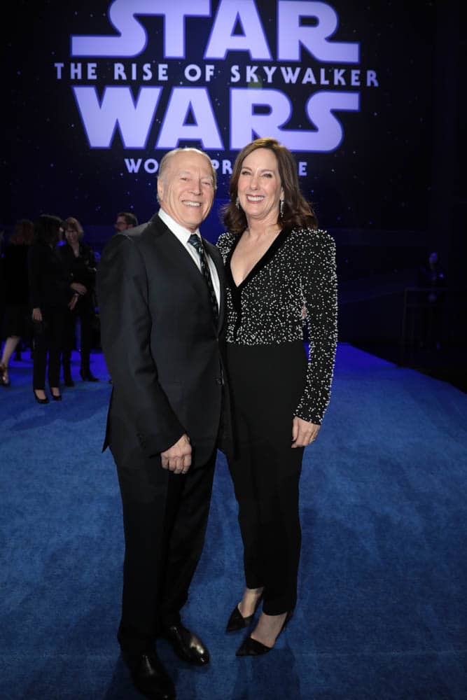 HOLLYWOOD, CALIFORNIA – DECEMBER 16: (L-R) Producer and President of Lucasfilm Kathleen Kennedy and Dave Filoni attend the World Premiere of “Star Wars: The Rise of Skywalker”, the highly anticipated conclusion of the Skywalker saga on December 16, 2019 in Hollywood, California. (Photo by Alberto E. Rodriguez/Getty Images for Disney)