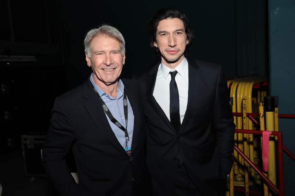 HOLLYWOOD, CALIFORNIA – DECEMBER 16: (L-R) Harrison Ford and Adam Driver arrive for the World Premiere of “Star Wars: The Rise of Skywalker”, the highly anticipated conclusion of the Skywalker saga on December 16, 2019 in Hollywood, California. (Photo by Charley Gallay/Getty Images for Disney)