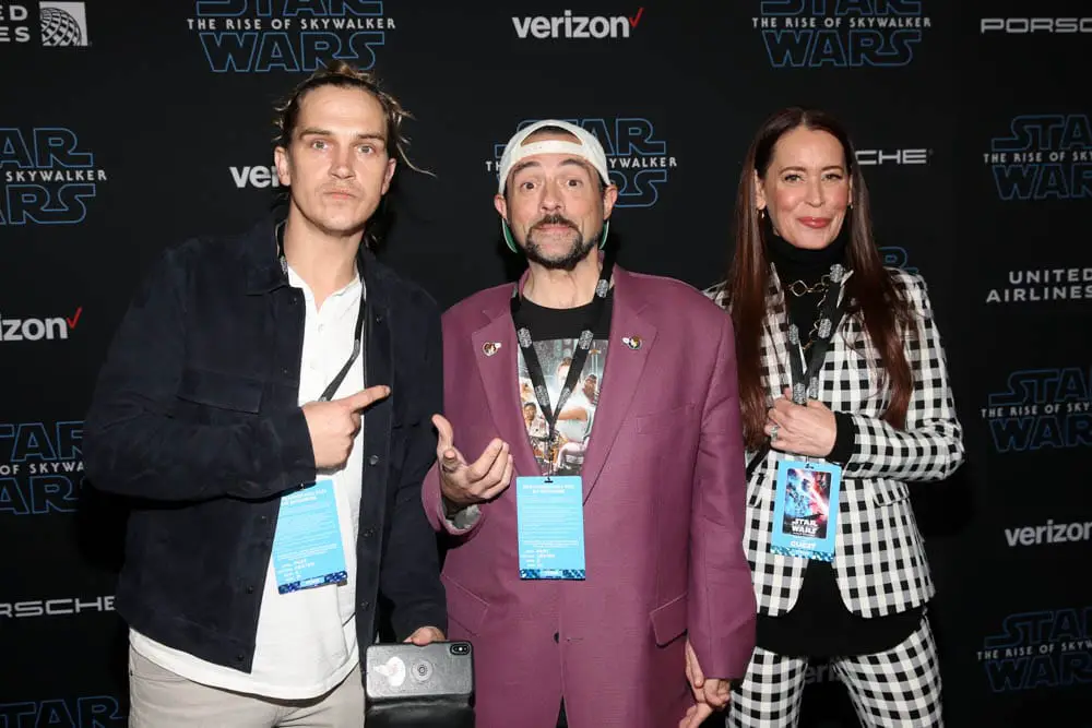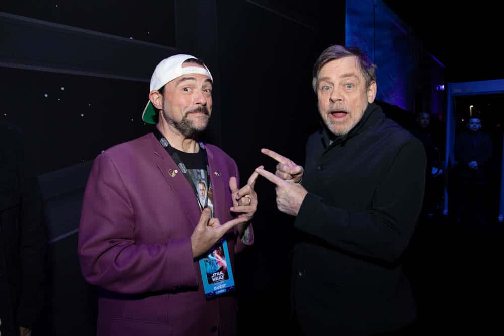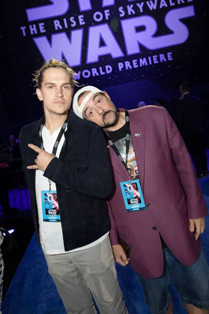 HOLLYWOOD, CALIFORNIA – DECEMBER 16: (L-R) Kevin Smith and Jason Mewes arrive for the World Premiere of “Star Wars: The Rise of Skywalker”, the highly anticipated conclusion of the Skywalker saga on December 16, 2019 in Hollywood, California. (Photo by Amy Sussman/Getty Images for Disney)