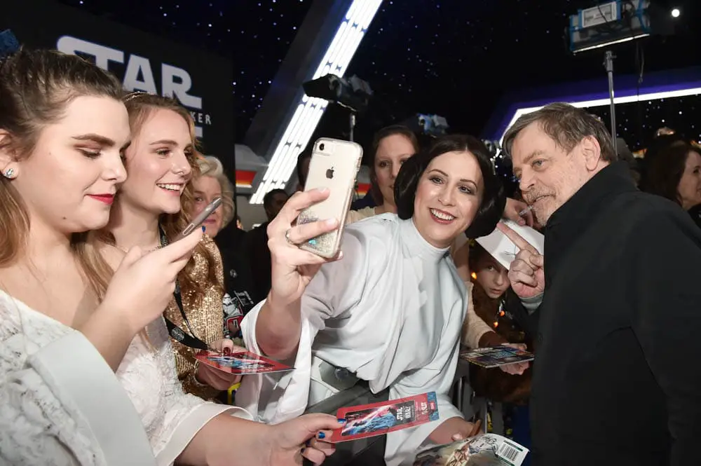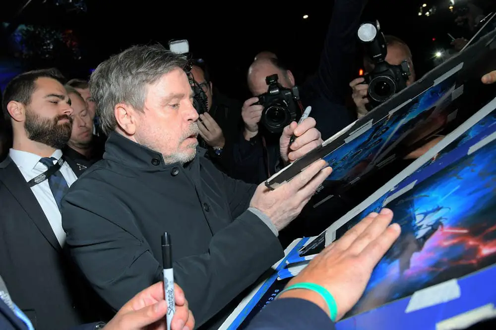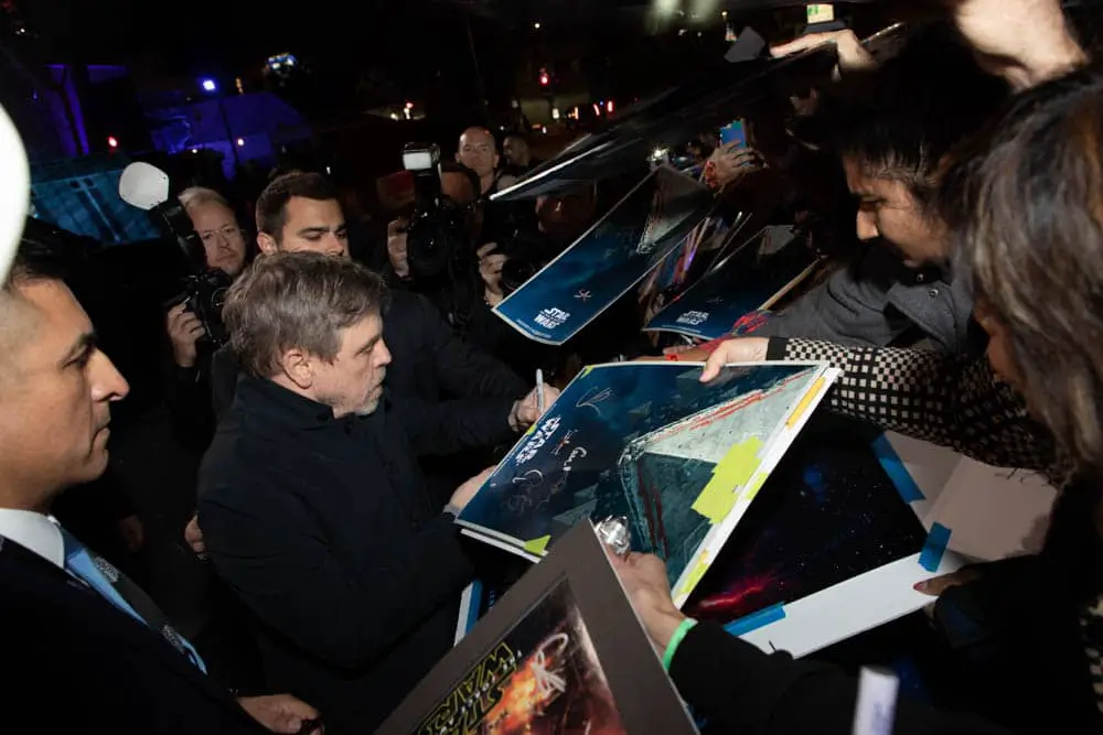 Mark Hamill signs autographs at the World Premiere of Star Wars: The Rise of Skywalker, the highly anticipated conclusion of the Skywalker saga, in Hollywood, CA, on December 16, 2019..(photo: Alex J. Berliner/ABImages)