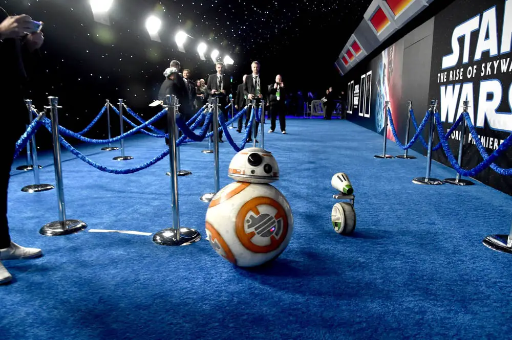 HOLLYWOOD, CALIFORNIA – DECEMBER 16: (L-R) BB-8 and D-O arrive for the World Premiere of “Star Wars: The Rise of Skywalker”, the highly anticipated conclusion of the Skywalker saga on December 16, 2019 in Hollywood, California. (Photo by Alberto E. Rodriguez/Getty Images for Disney)