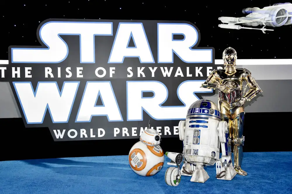 HOLLYWOOD, CALIFORNIA – DECEMBER 16: (L-R) BB-8, R2-D2, and C-3PO arrive for the World Premiere of “Star Wars: The Rise of Skywalker”, the highly anticipated conclusion of the Skywalker saga on December 16, 2019 in Hollywood, California. (Photo by Amy Sussman/Getty Images for Disney)