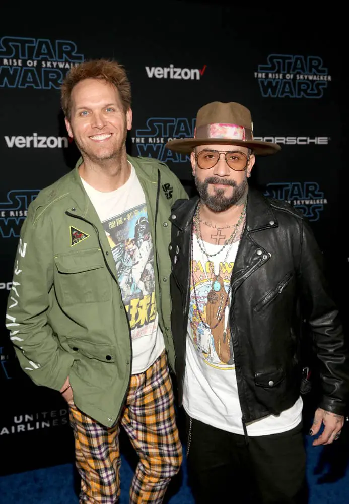 HOLLYWOOD, CALIFORNIA – DECEMBER 16: (L-R) Mark Adler and AJ McLean arrive for the World Premiere of “Star Wars: The Rise of Skywalker”, the highly anticipated conclusion of the Skywalker saga on December 16, 2019 in Hollywood, California. (Photo by Jesse Grant/Getty Images for Disney)