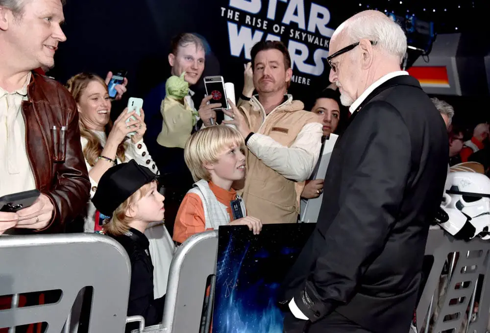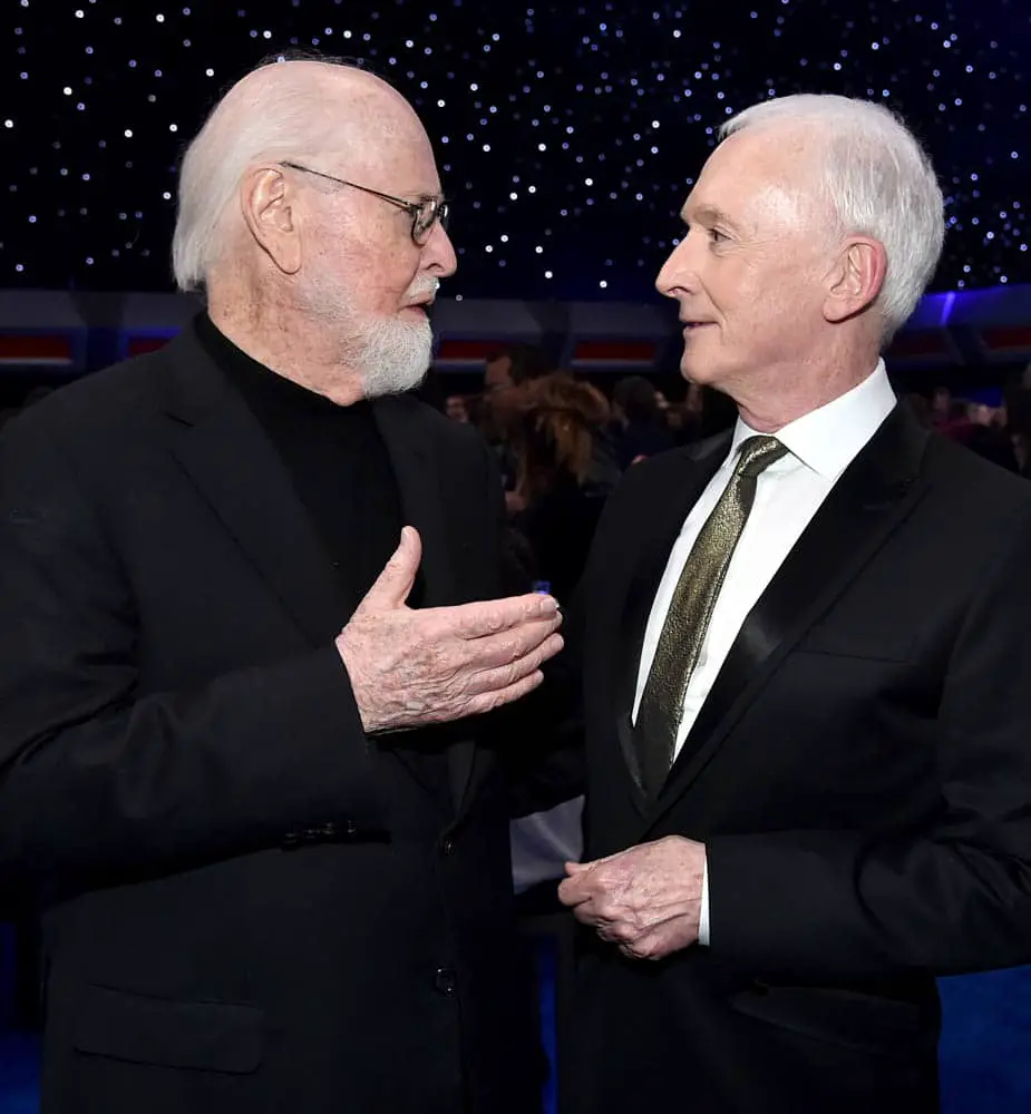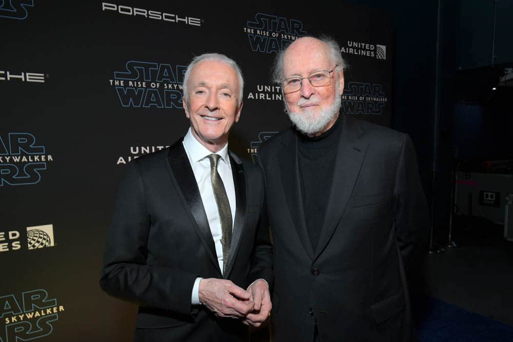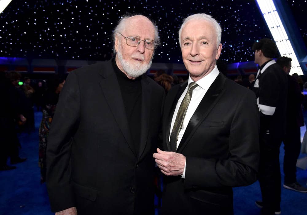 HOLLYWOOD, CALIFORNIA – DECEMBER 16: (L-R) Composer John Williams and Anthony Daniels attends the World Premiere of “Star Wars: The Rise of Skywalker”, the highly anticipated conclusion of the Skywalker saga on December 16, 2019 in Hollywood, California. (Photo by Alberto E. Rodriguez/Getty Images for Disney)