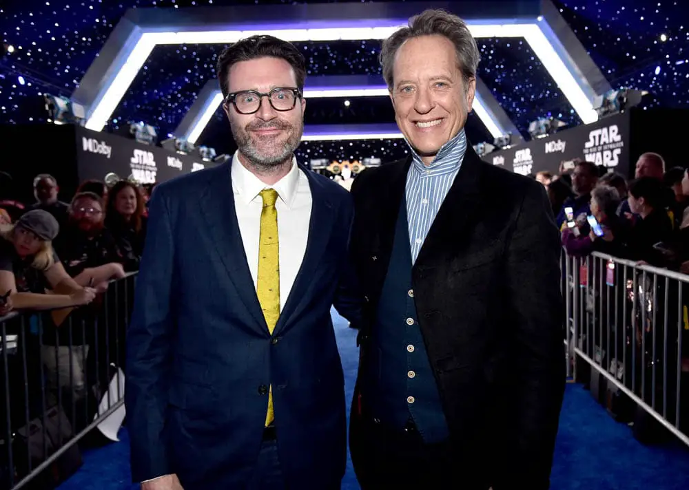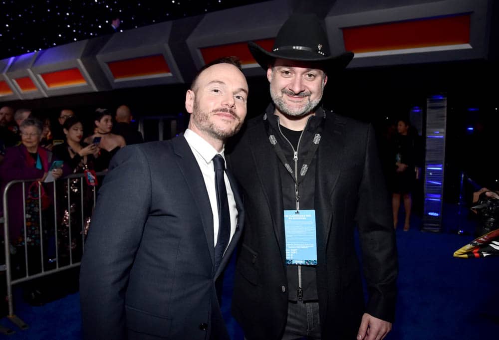 HOLLYWOOD, CALIFORNIA – DECEMBER 16: (L-R) Writer Chris Terrio and Dave Filoni arrive for the World Premiere of “Star Wars: The Rise of Skywalker”, the highly anticipated conclusion of the Skywalker saga on December 16, 2019 in Hollywood, California. (Photo by Alberto E. Rodriguez/Getty Images for Disney)