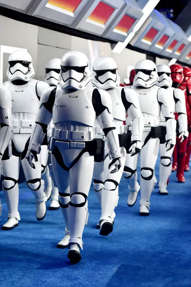 HOLLYWOOD, CALIFORNIA – DECEMBER 16: Troopers arrive for the World Premiere of “Star Wars: The Rise of Skywalker”, the highly anticipated conclusion of the Skywalker saga on December 16, 2019 in Hollywood, California. (Photo by Amy Sussman/Getty Images for Disney)