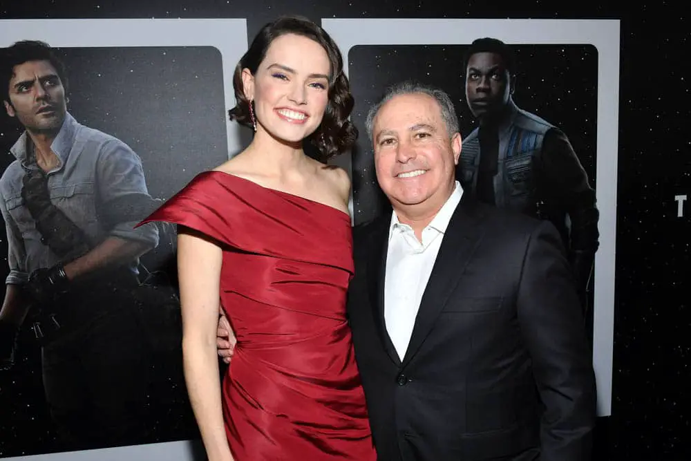 HOLLYWOOD, CALIFORNIA – DECEMBER 16: Daisy Ridley and Co-Chairman, The Walt Disney Studios Alan Bergman arrive for the World Premiere of “Star Wars: The Rise of Skywalker”, the highly anticipated conclusion of the Skywalker saga on December 16, 2019 in Hollywood, California. (Photo by Amy Sussman/Getty Images for Disney)