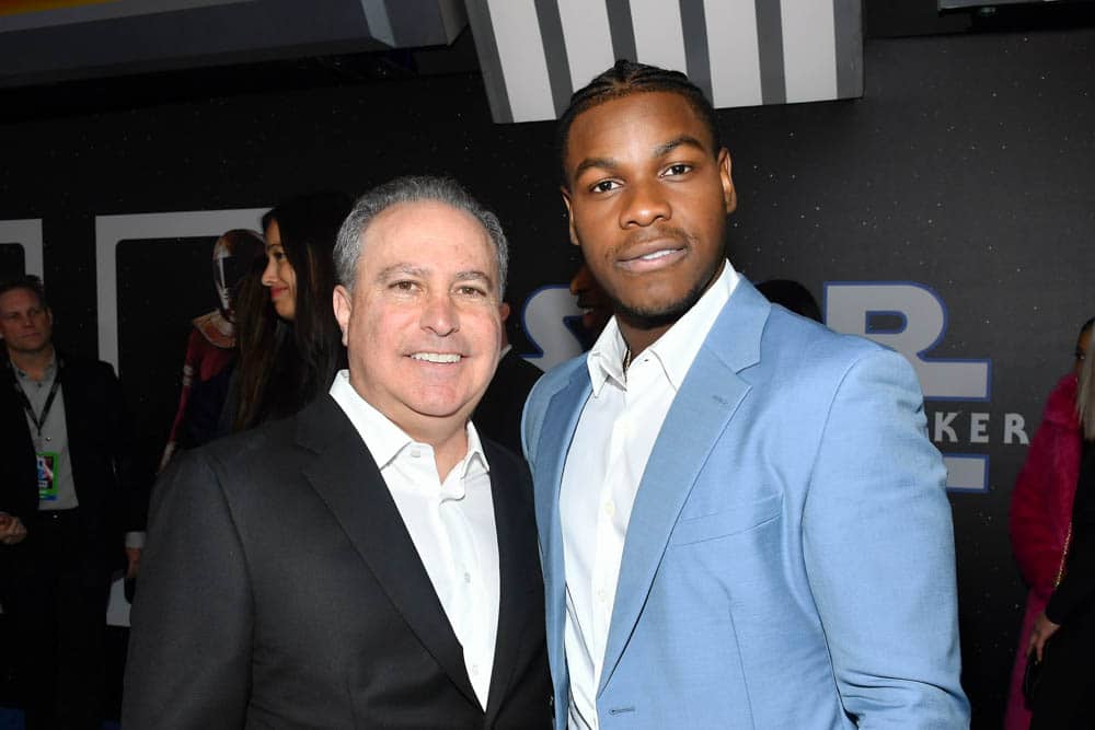 HOLLYWOOD, CALIFORNIA – DECEMBER 16: Co-Chairman, The Walt Disney Studios Alan Bergman and John Boyega arrive for the World Premiere of “Star Wars: The Rise of Skywalker”, the highly anticipated conclusion of the Skywalker saga on December 16, 2019 in Hollywood, California. (Photo by Amy Sussman/Getty Images for Disney)