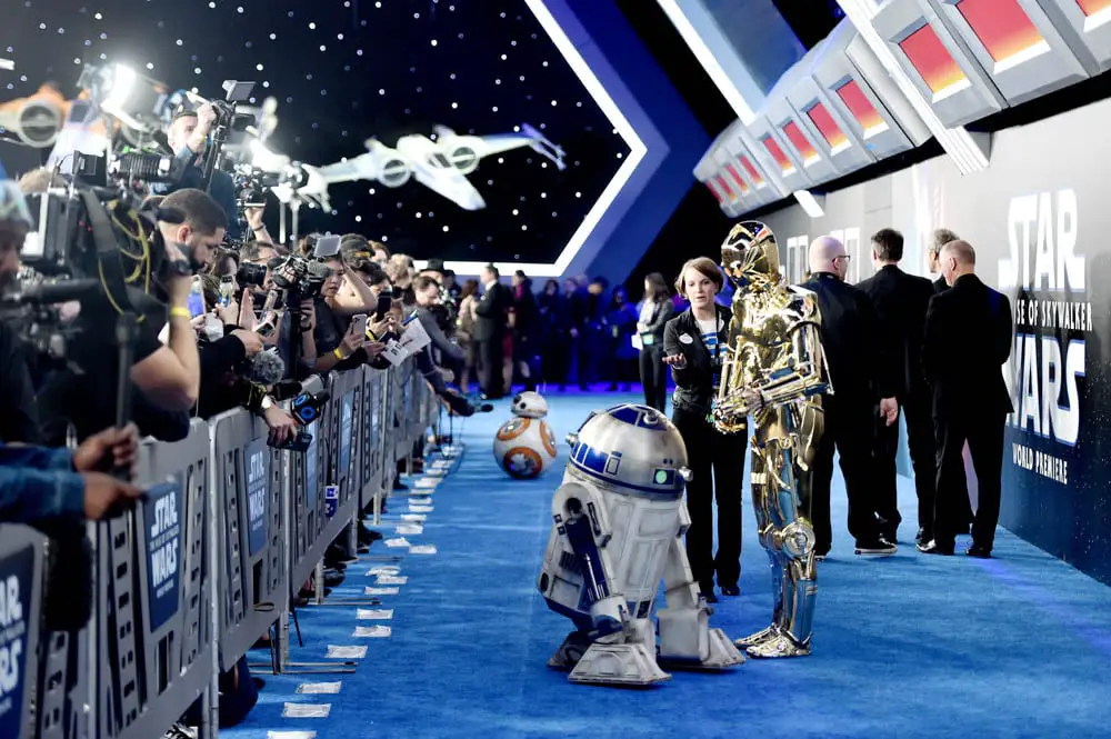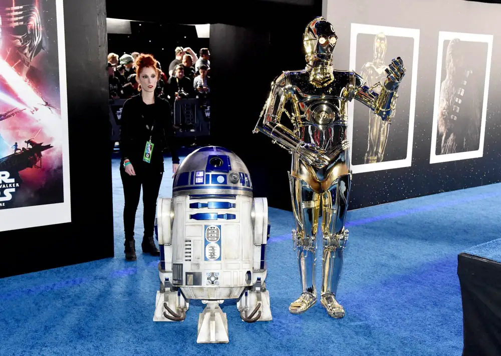 HOLLYWOOD, CALIFORNIA – DECEMBER 16: (L-R) R2-D2 and C-3PO arrive for the World Premiere of “Star Wars: The Rise of Skywalker”, the highly anticipated conclusion of the Skywalker saga on December 16, 2019 in Hollywood, California. (Photo by Jesse Grant/Getty Images for Disney)