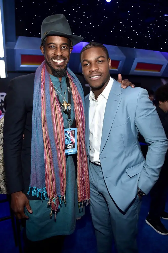 HOLLYWOOD, CALIFORNIA – DECEMBER 16: (L-R) Ahmed Best and John Boyega attend the World Premiere of “Star Wars: The Rise of Skywalker”, the highly anticipated conclusion of the Skywalker saga on December 16, 2019 in Hollywood, California. (Photo by Alberto E. Rodriguez/Getty Images for Disney)