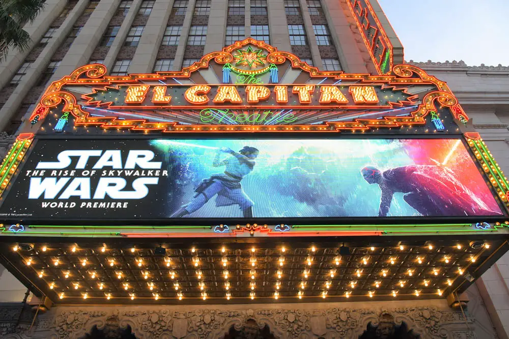 A view of the marquee at the World Premiere of Star Wars: The Rise of Skywalker, the highly anticipated conclusion of the Skywalker saga, in Hollywood, CA, on December 16, 2019.