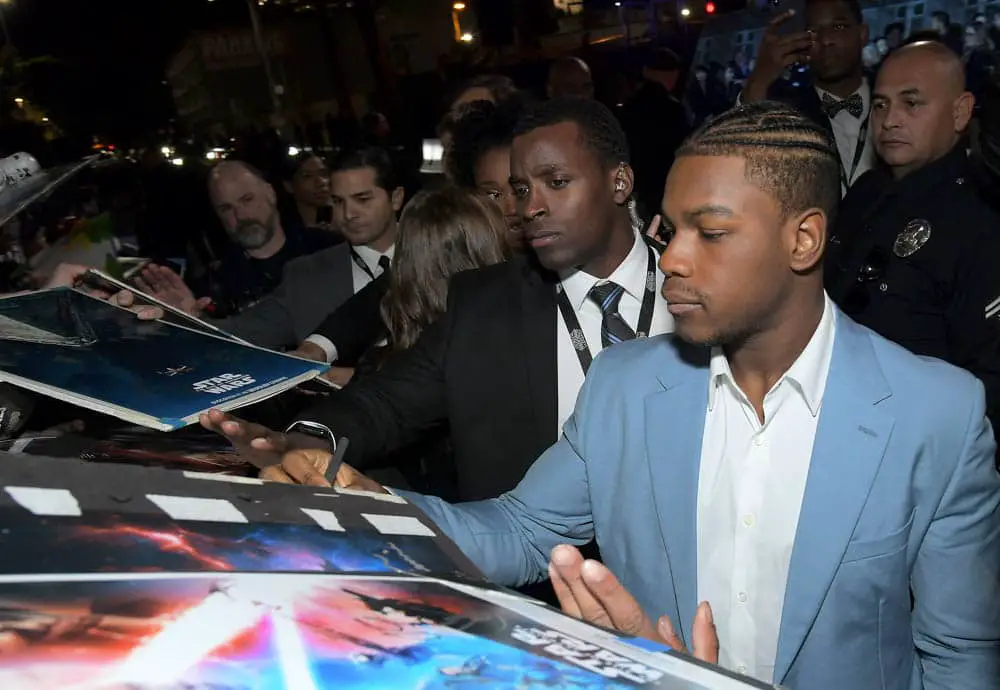 HOLLYWOOD, CALIFORNIA – DECEMBER 16: John Boyega arrives for the World Premiere of “Star Wars: The Rise of Skywalker”, the highly anticipated conclusion of the Skywalker saga on December 16, 2019 in Hollywood, California. (Photo by Charley Gallay/Getty Images for Disney)