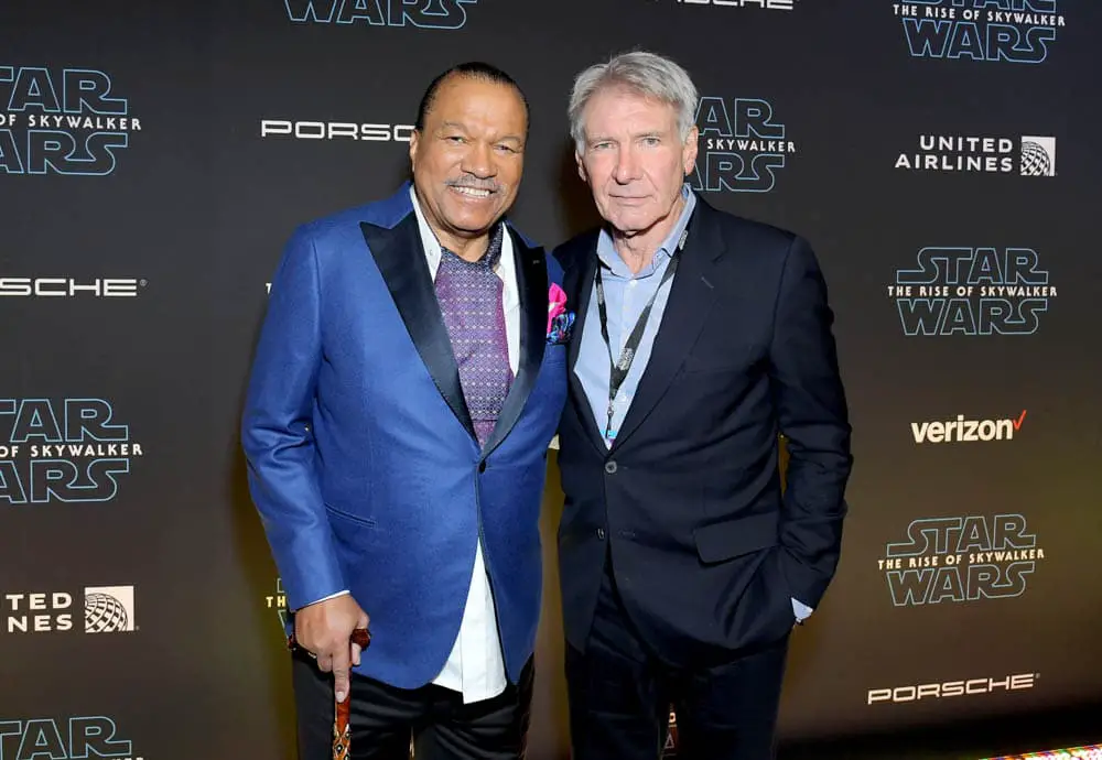 HOLLYWOOD, CALIFORNIA – DECEMBER 16: (L-R) Billy Dee Williams and Harrison Ford arrive for the World Premiere of “Star Wars: The Rise of Skywalker”, the highly anticipated conclusion of the Skywalker saga on December 16, 2019 in Hollywood, California. (Photo by Charley Gallay/Getty Images for Disney)