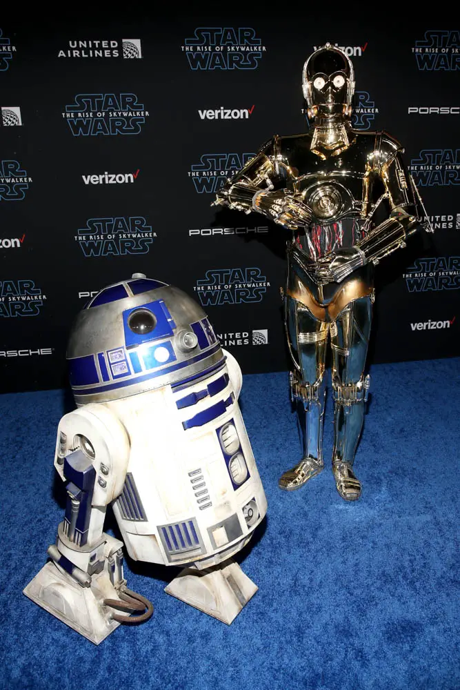HOLLYWOOD, CALIFORNIA – DECEMBER 16: (L-R) R2-D2 and C-3PO arrive for the World Premiere of “Star Wars: The Rise of Skywalker”, the highly anticipated conclusion of the Skywalker saga on December 16, 2019 in Hollywood, California. (Photo by Alberto E. Rodriguez/Getty Images for Disney)