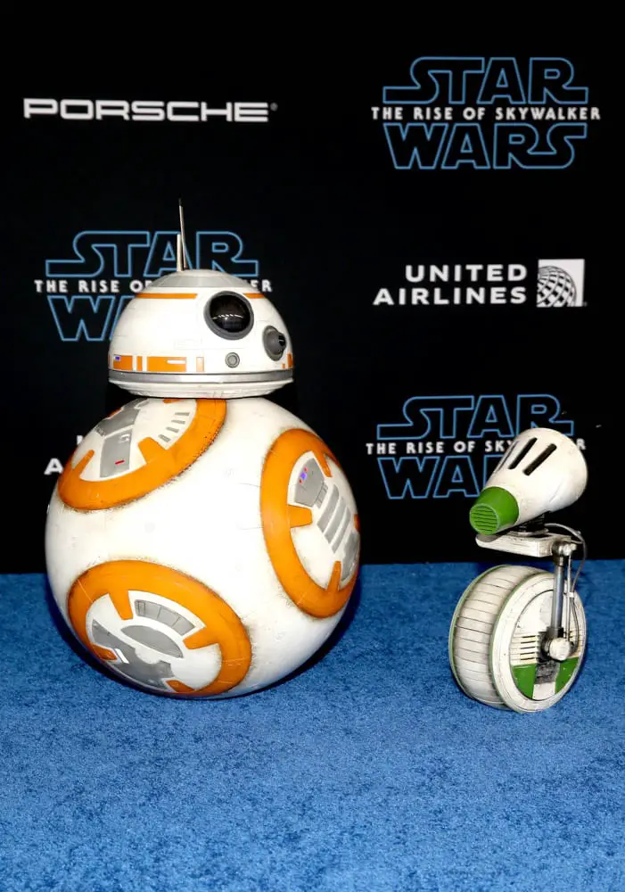 HOLLYWOOD, CALIFORNIA – DECEMBER 16: (L-R) BB-8 and D-O arrive for the World Premiere of “Star Wars: The Rise of Skywalker”, the highly anticipated conclusion of the Skywalker saga on December 16, 2019 in Hollywood, California. (Photo by Jesse Grant/Getty Images for Disney)