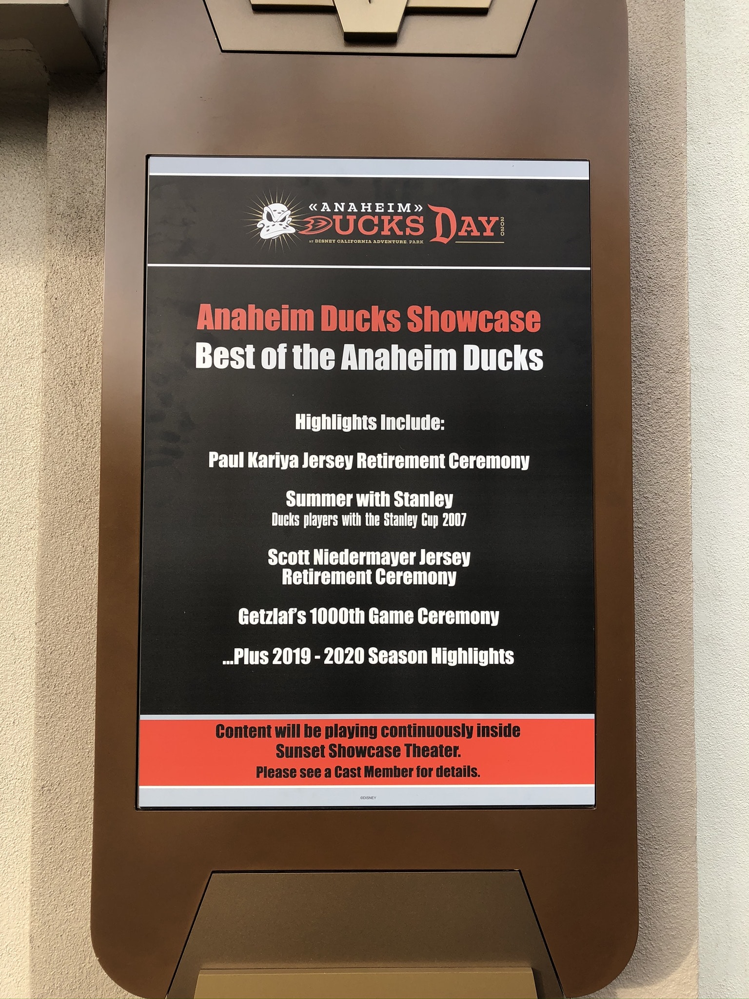 In Stage 17 fans could meet the Anaheim Ducks mascot, learn more about hockey and the science of hockey, take part in interactive photos, and even test their own hockey skills! There was also a collection of special merchandise on hand for Anaheim Ducks Day in Stage 17. In Mickey’s PhilharMagic Theater guests could watch the “Best of the Anaheim Ducks!” This featured memorable moments, clips, and highlights for the team and its fans.