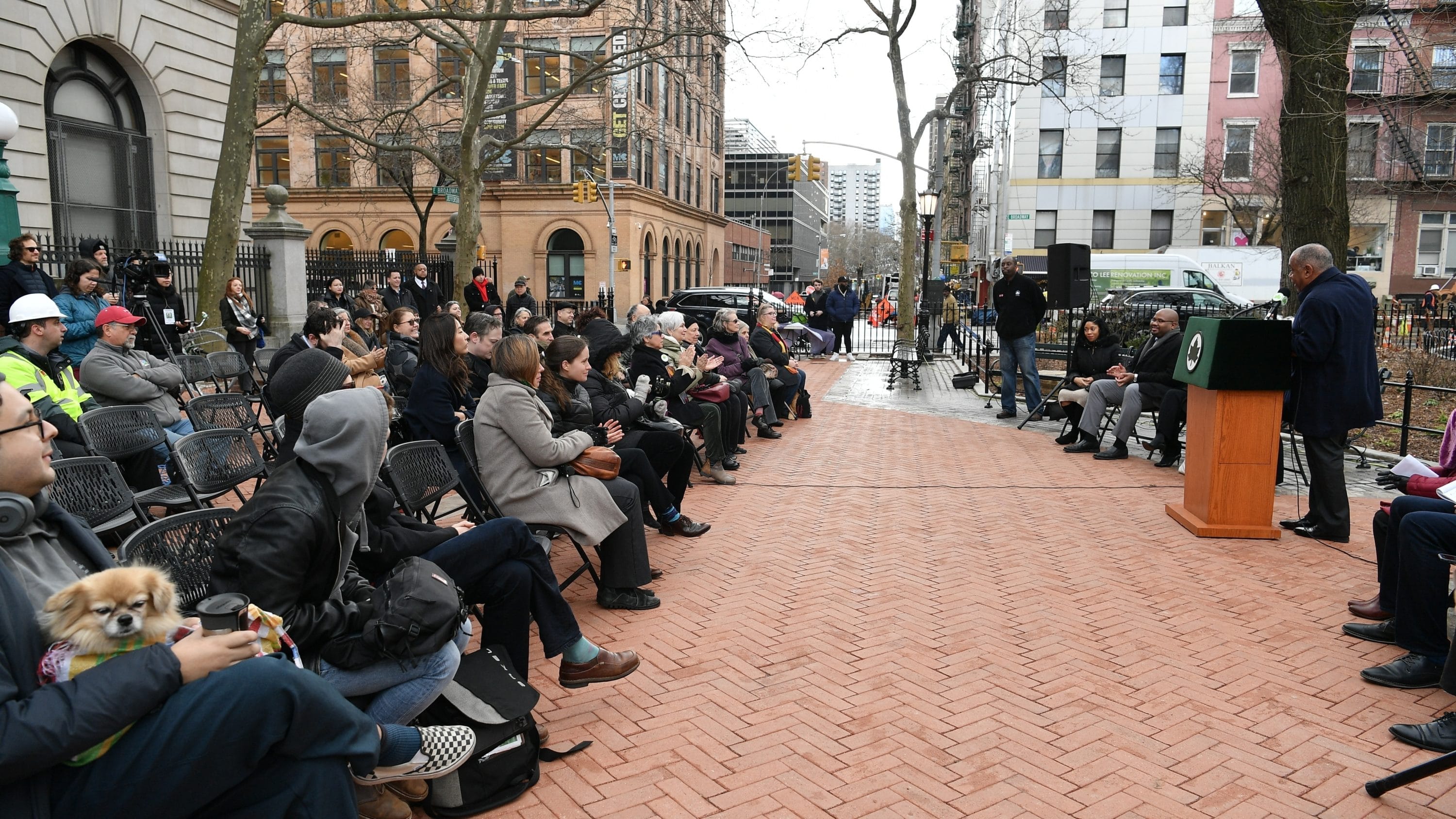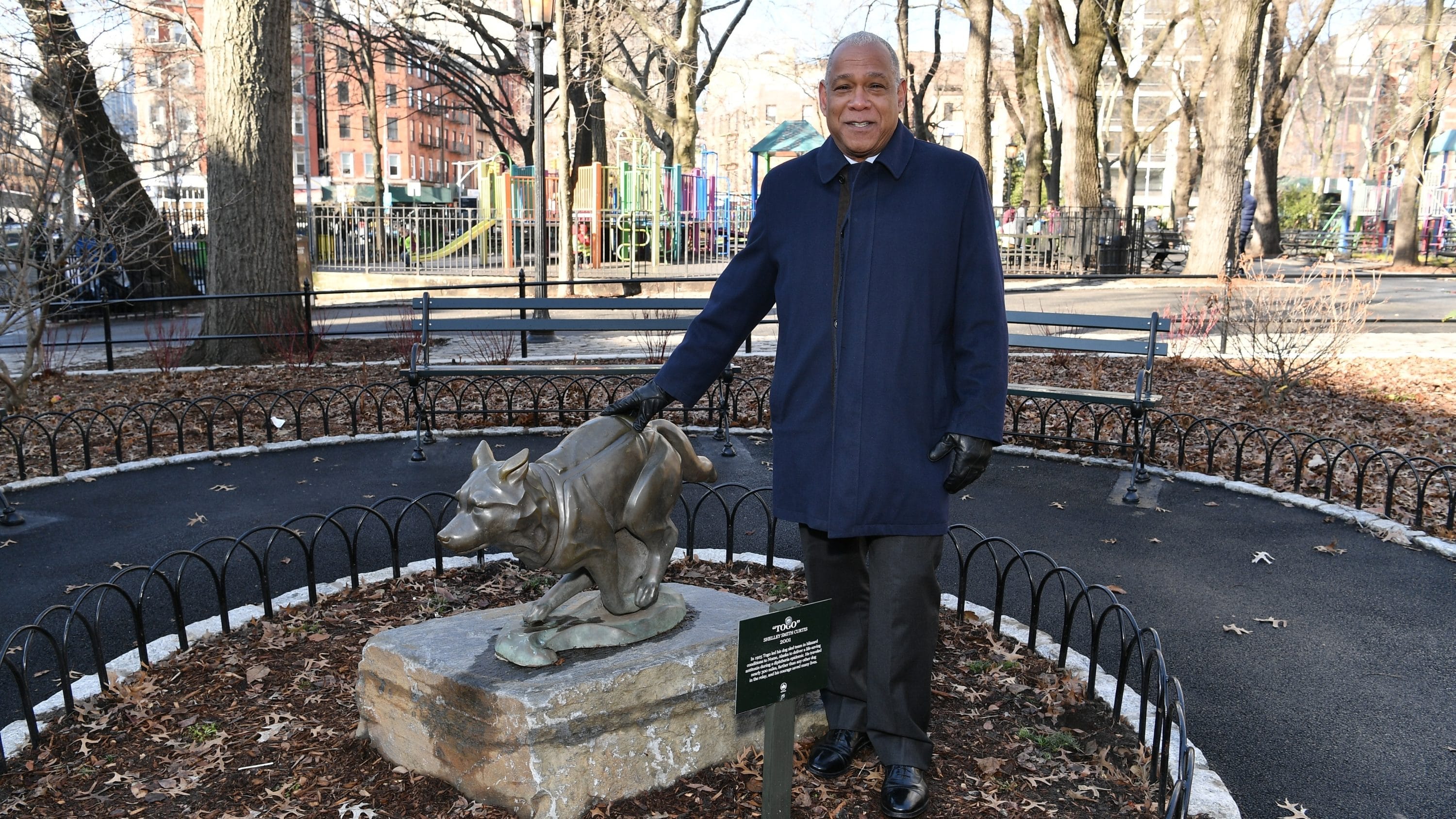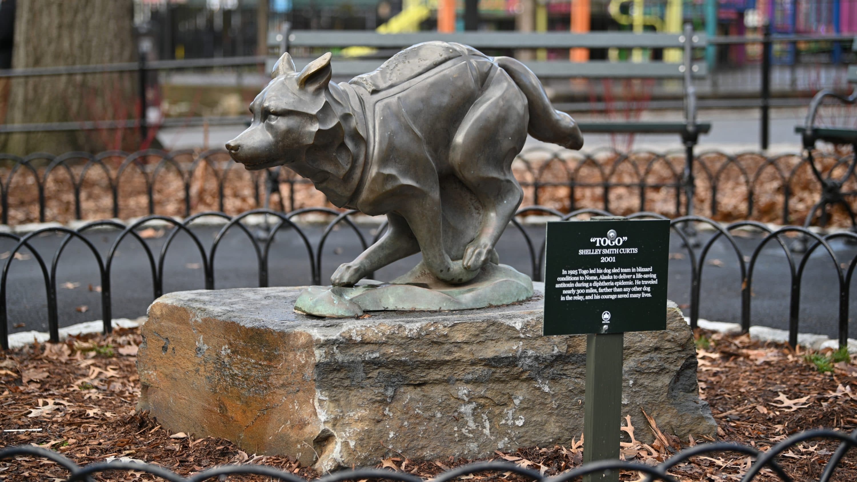 This morning, NYC Parks celebrated the Parks Without Borders’ milestone $5.9 million reconstruction of Seward Park, which now features new pavements and curbs, benches and tables, a storytelling alcove, fitness equipment, lighting, plants and lower fences. Seward Park is home of a bronze statue of Togo, the hero sled dog who inspired the Disney+ original movie “Togo.” Disney+ worked with NYC Parks to install a plaque alongside the statue to honor the famous dog who trekked more than 260 miles to help deliver life-saving serum to children in Nome, Alaska.
