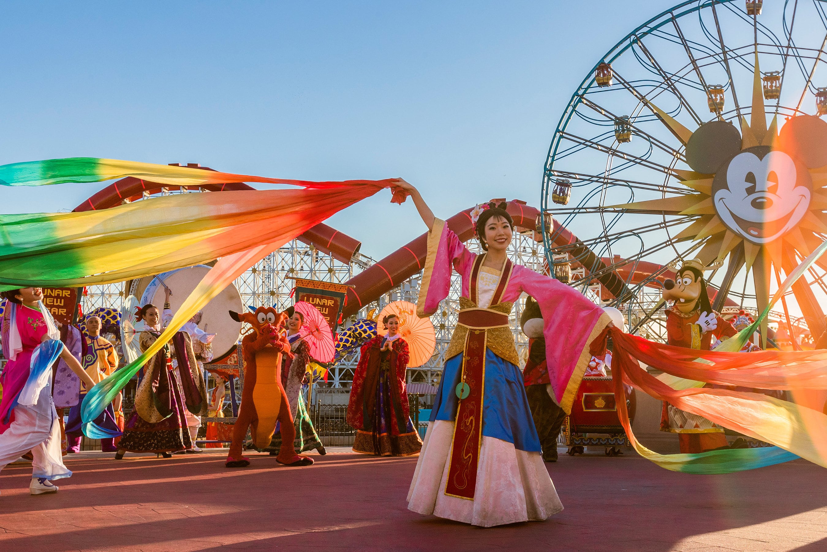 Disneyland Resort in California welcomes a year of good fortune with Lunar New Year celebrations at Disney California Adventure from Jan. 17 – Feb. 9, 2020. Celebrating the Year of the Mouse, the limited-time festival features Mulan’s Lunar New Year Procession, pictured here, plus “Hurry Home – Lunar New Year Celebration” prior to “World of Color,” a Lucky Wishing Wall, delectable foods and more. (Joshua Sudock/Disneyland Resort)