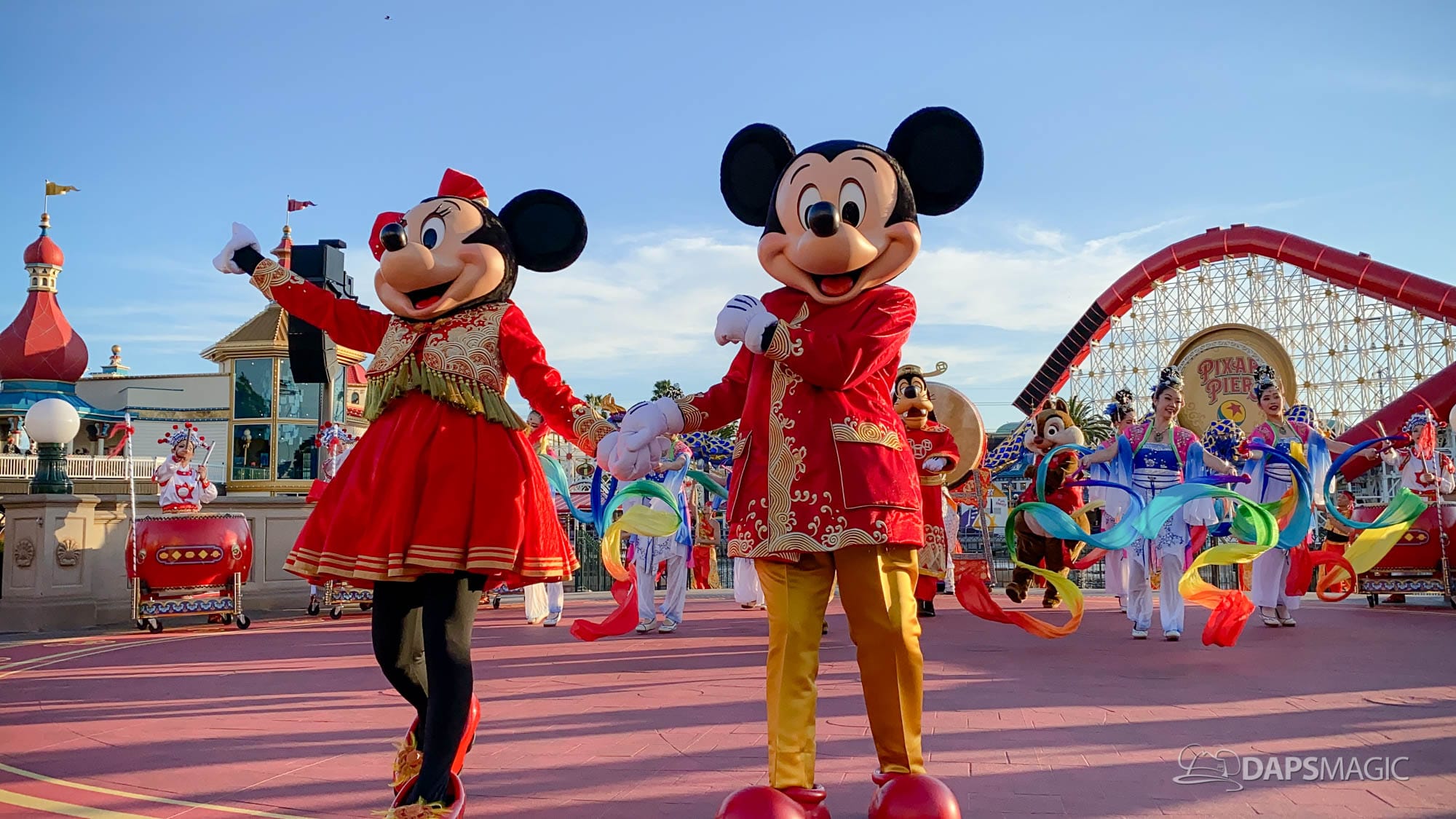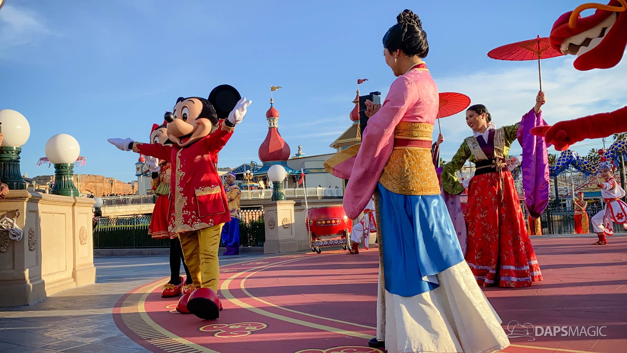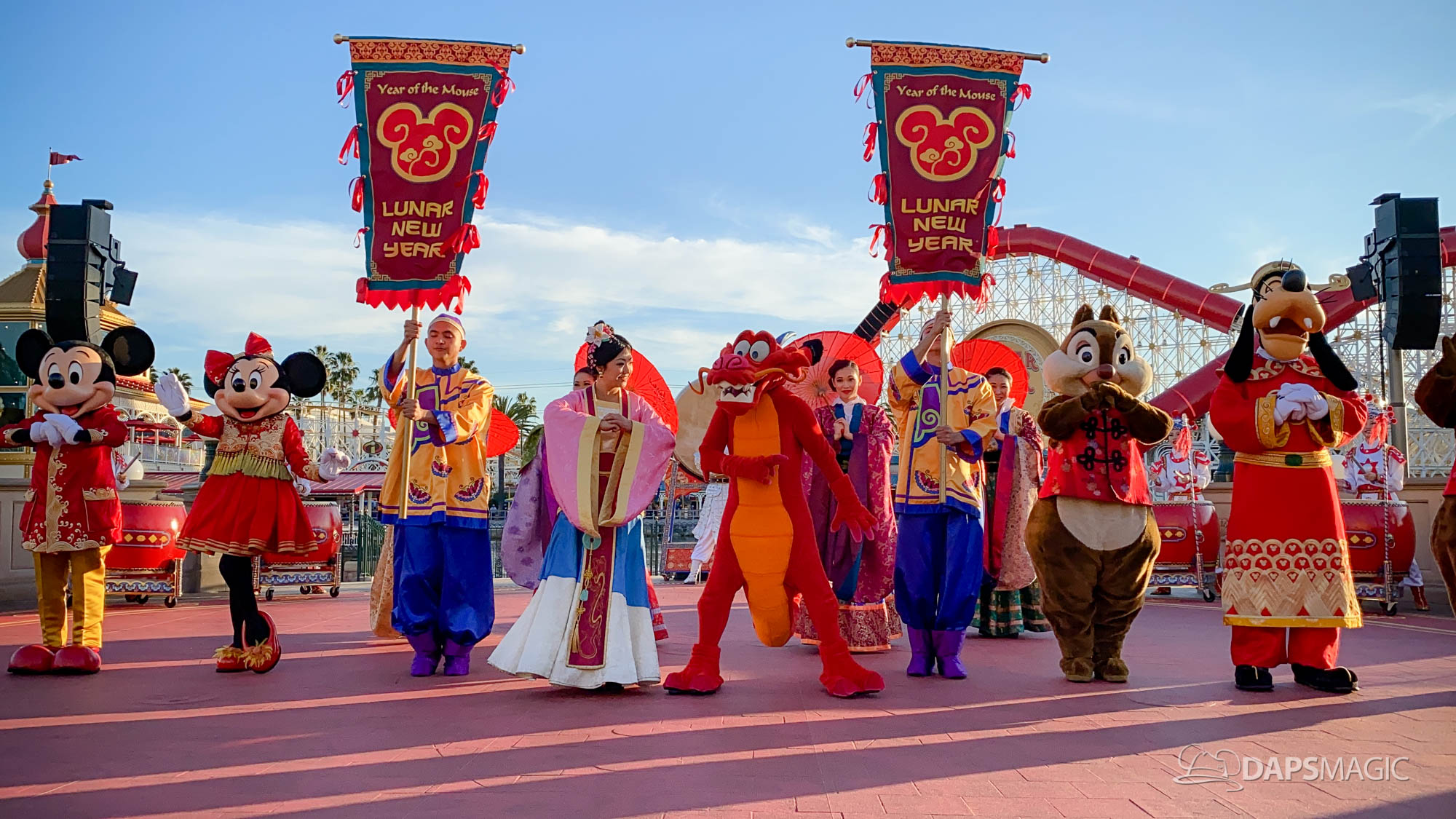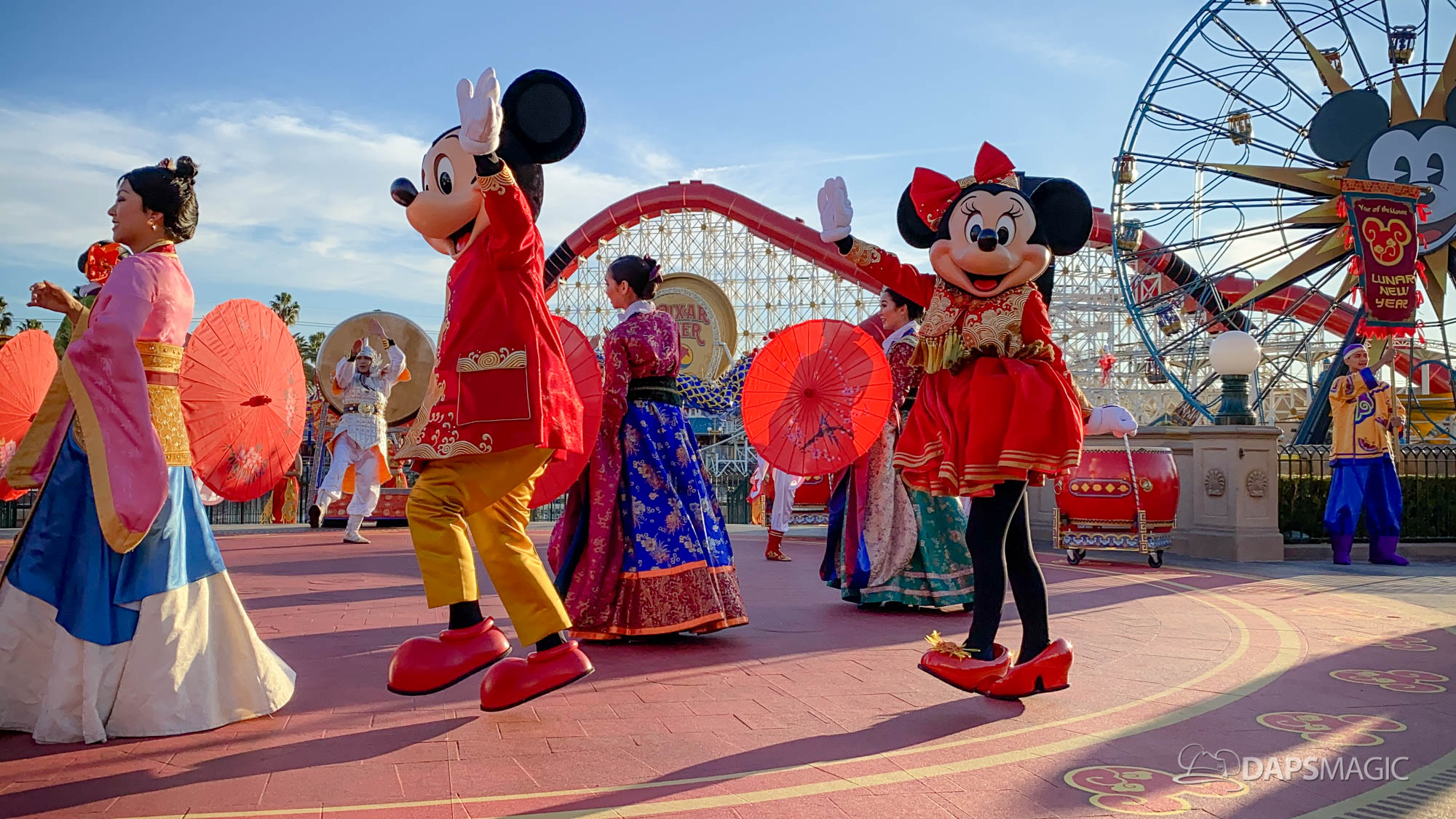 The Year of the Mouse Lunar New Year celebration has kicked off at the Disneyland Resort in Disney California Adventure this weekend. On Friday, Mickey and Minnie Mouse debuted new outfits for the Lunar New Year Celebration during Mulan’s Lunar New Year Procession and also as they met with guests. Couple this with some new popular merchandise, food, and entertainment, this year’s Lunar New Year Celebration is already quite popular with guests.