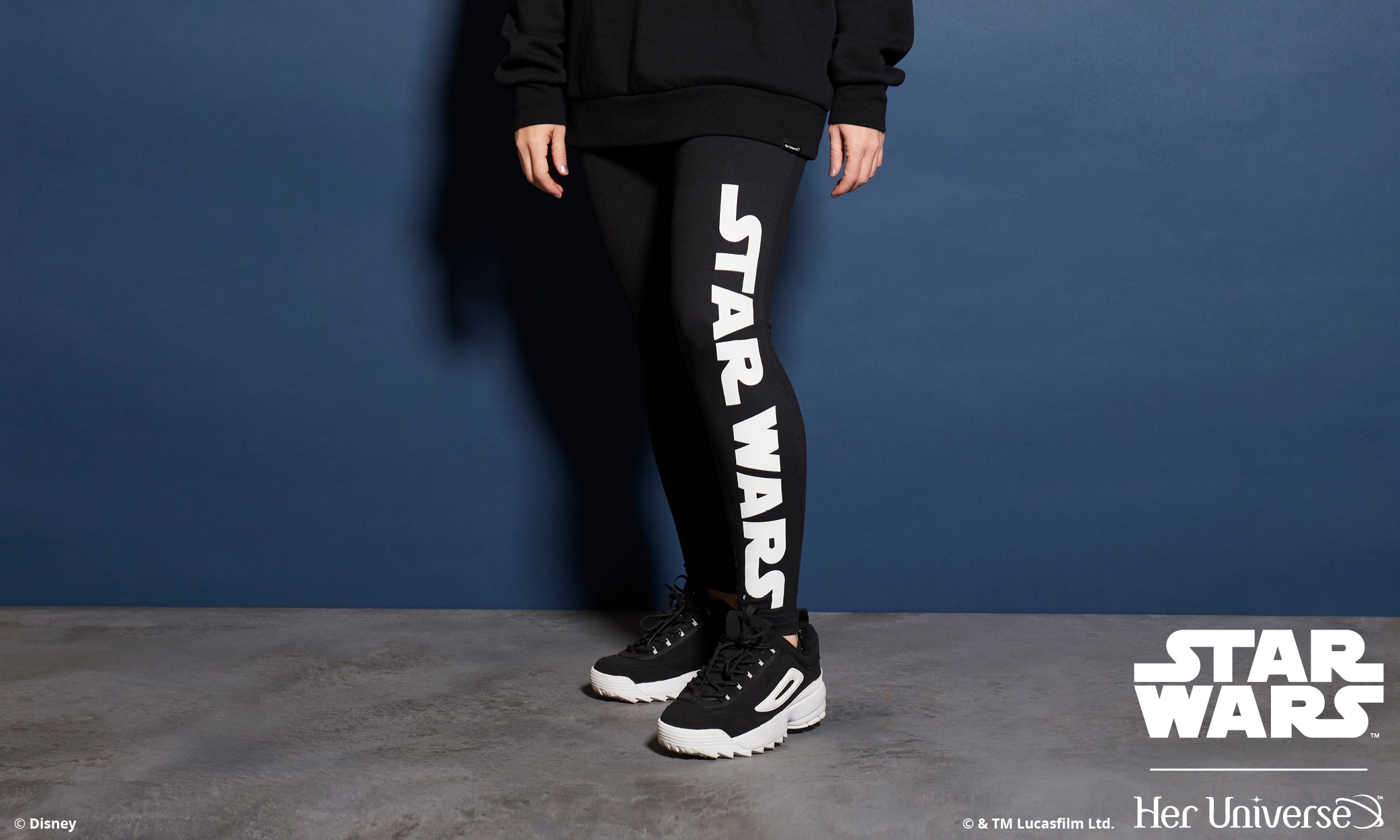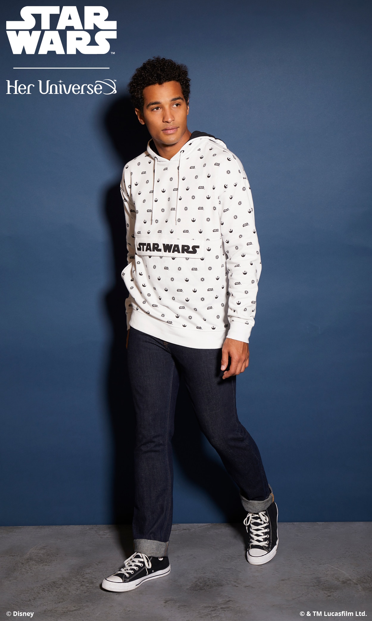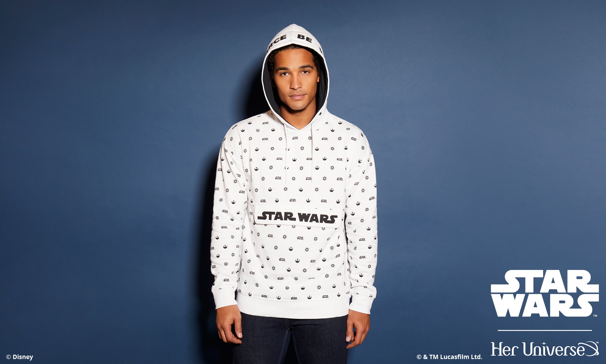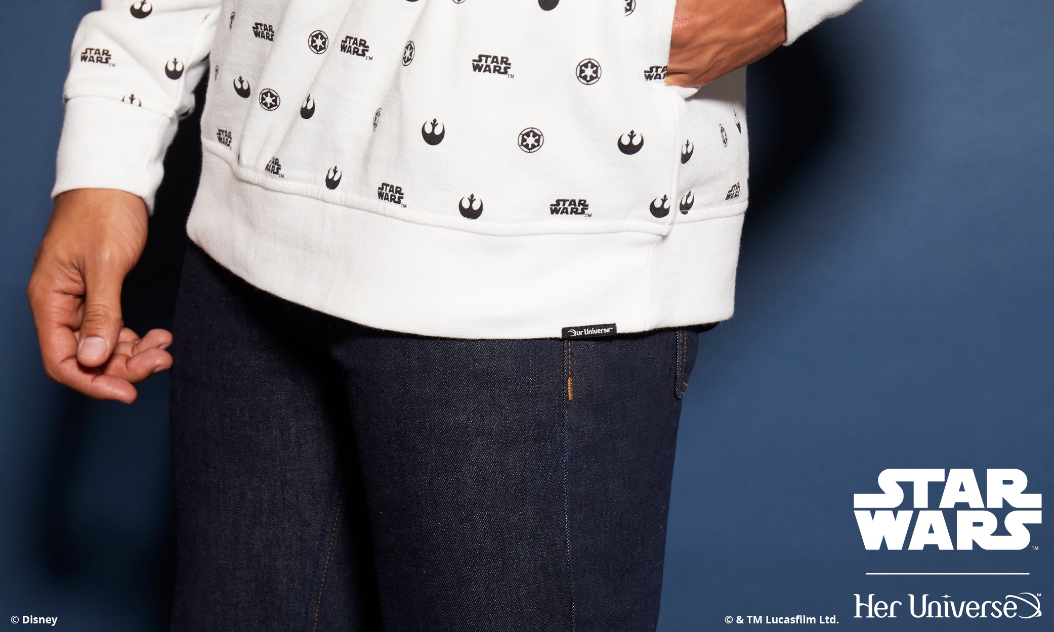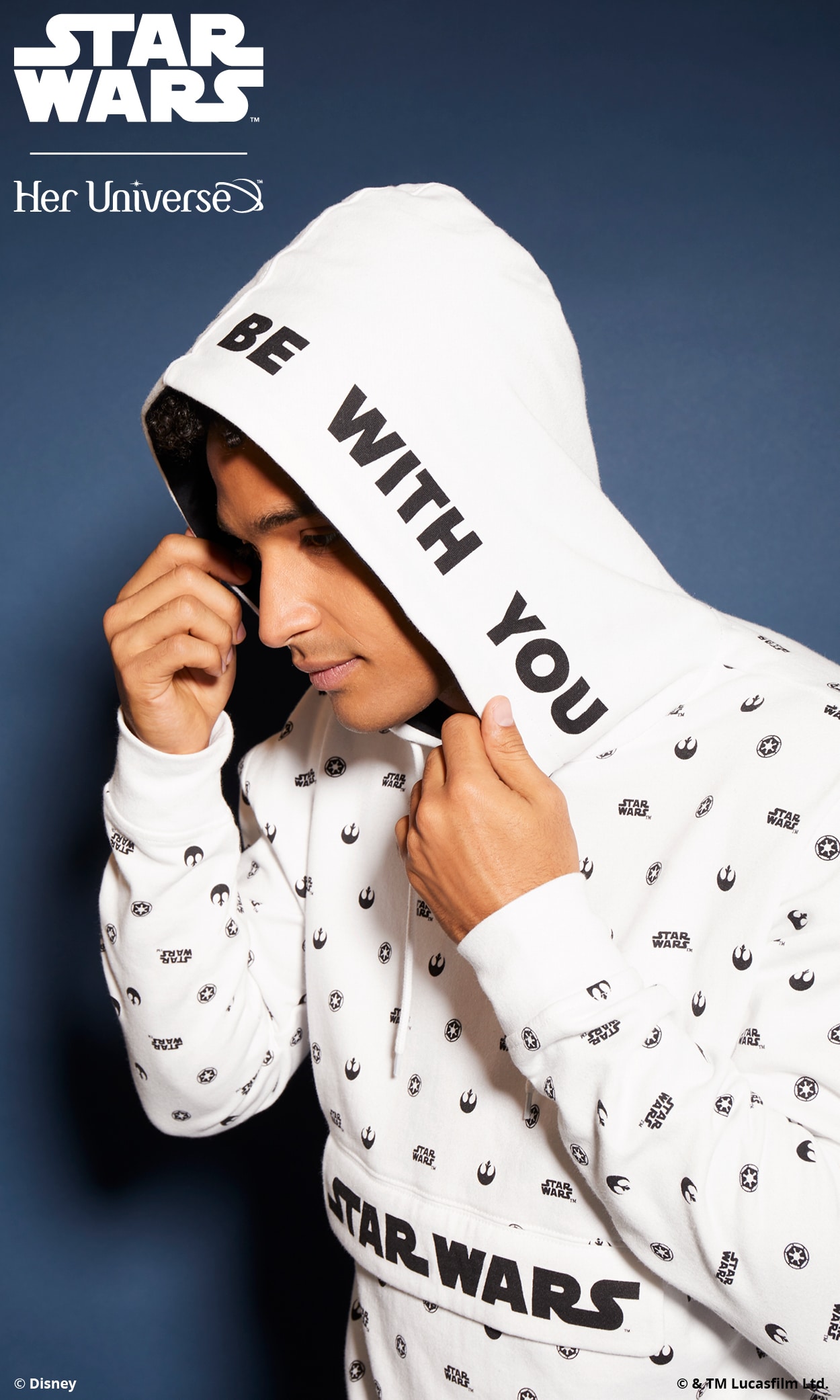 Inspired by ‘90s fashion trends and a black and white color palette, this collection is perfectly balanced and gives fans the opportunity to proudly wear their fandom in a fashion-forward way. With bold Star Wars logos, both Rebel and Imperial symbols and the classic phrase, “May the Force Be with You,” there is something for everyone with this simple and sleek collection. Several pieces even feature a hidden, inside trim with the reminder to “Choose Your Destiny.”