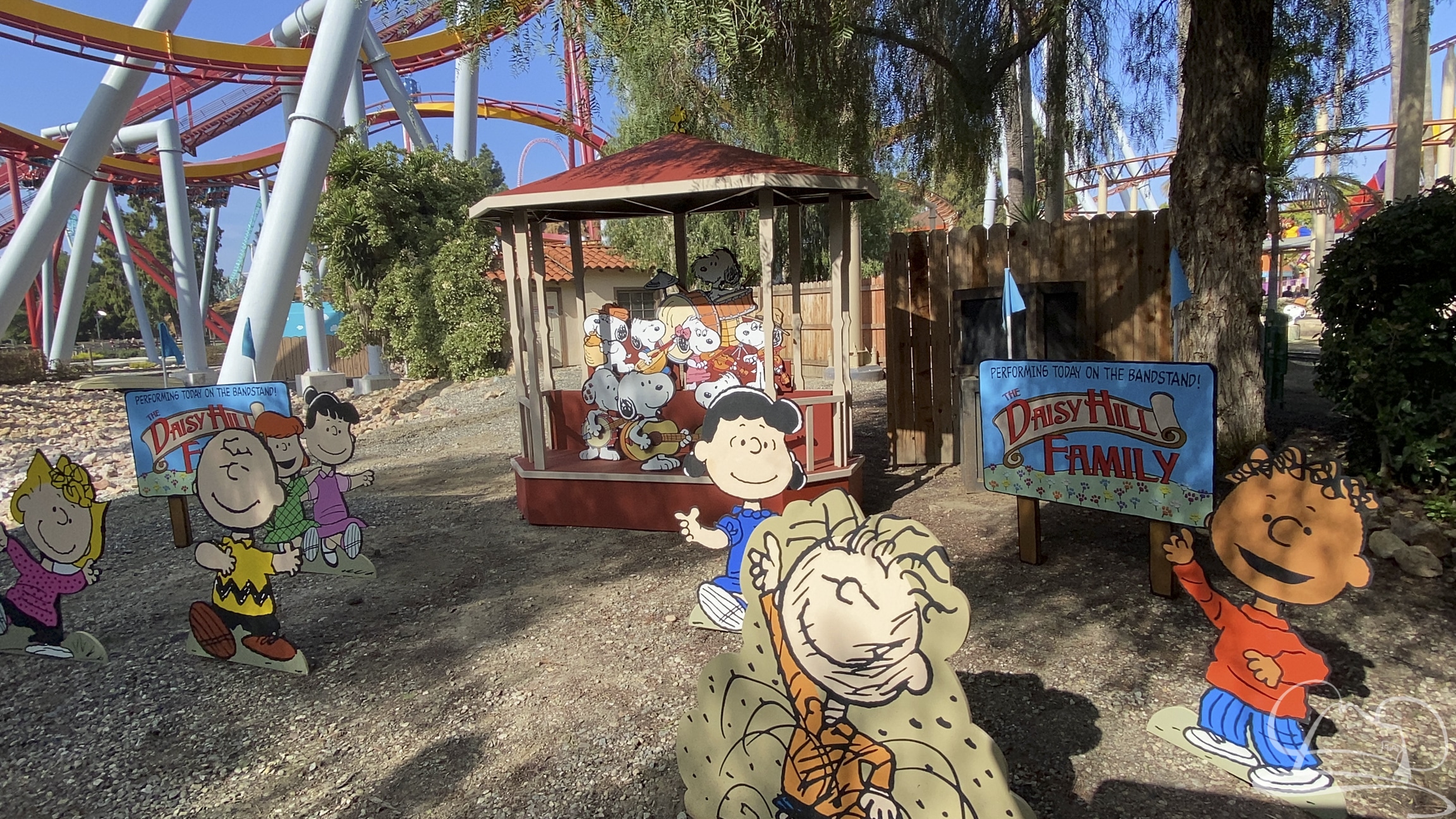 At the heart of the celebration is Camp Snoopy. Amidst the land are many decorations like word bubbles celebrating famous sayings of Charlie Brown and friends. Snoopy’s WWI flying ace plane can be seen amidst a flower runway. A very popular “Child to Teacher Translator” lets your voice sound like the adults of the Peanuts world. The Grand Sierra Railway ride has been transformed into the Trip to Beagle Bonanza with even more Peanuts characters to view. It’s an adorable trip with Snoopy and his brothers and sisters. Woodstock’s Bird’s-Eye View is the transformed Sky Cabin with the yellow bird flying around the rotating cabin in the sky. Pig Pen’s Pig Pen is located in the Ghost Town Barn and has some piglets that will keep you mesmerized watching their playfulness for quite a while. Here you can also get a photo with Pig Pen himself.