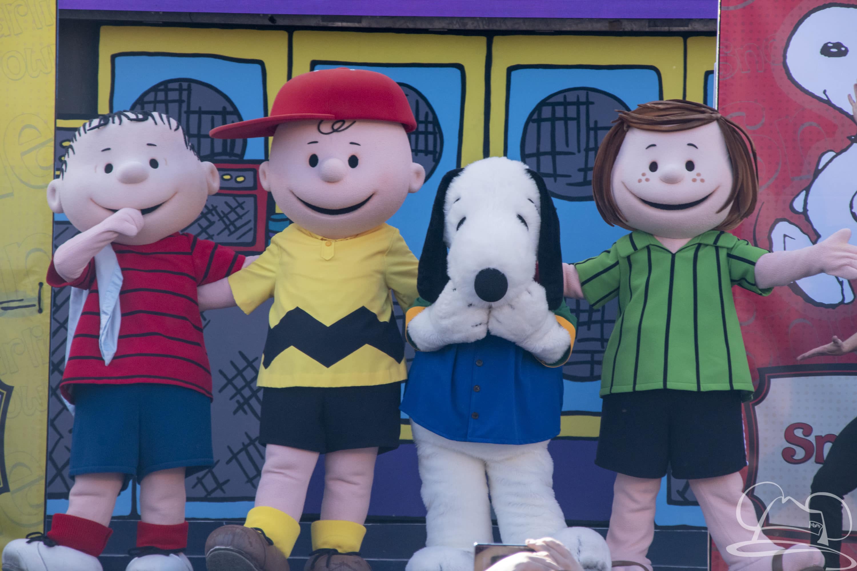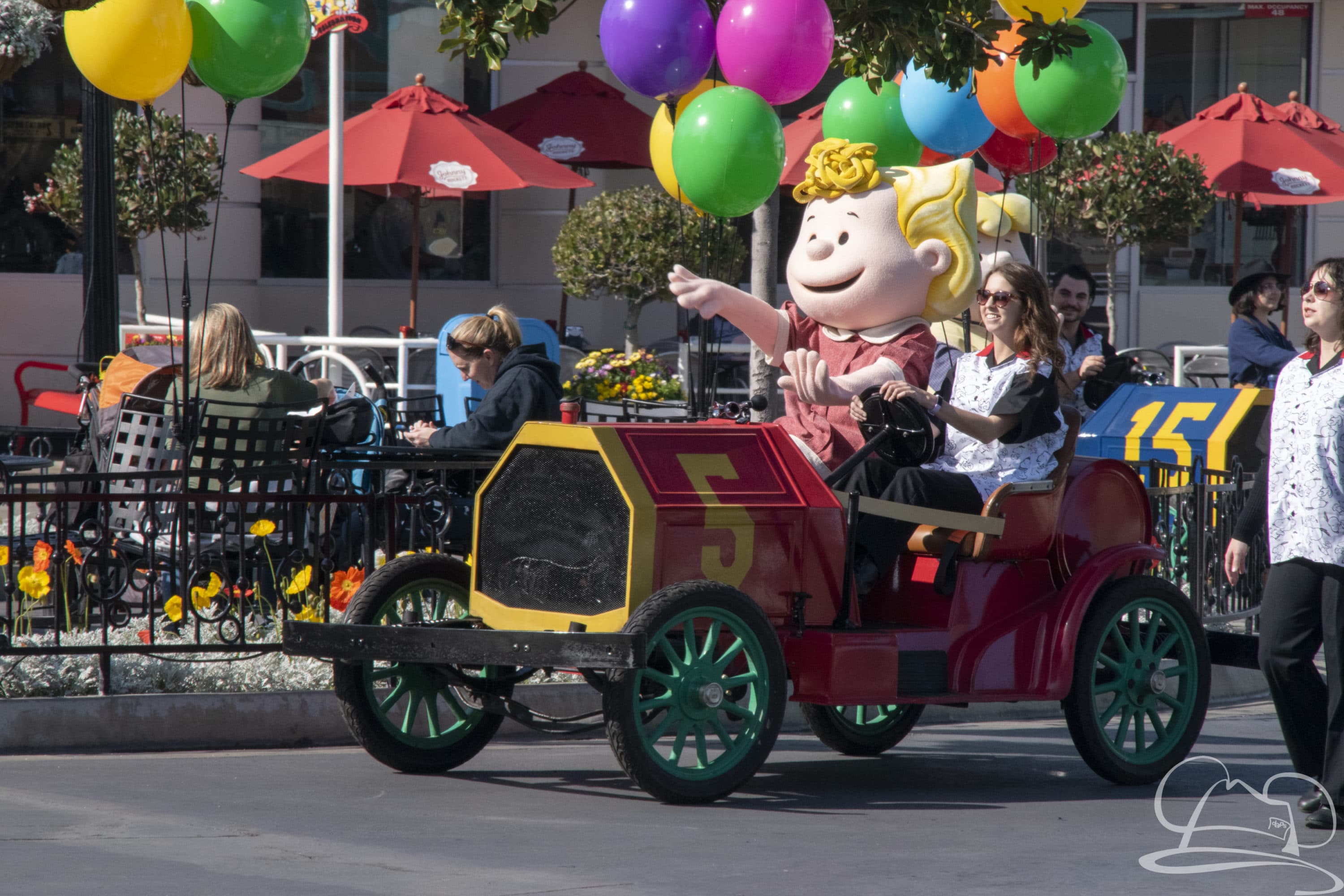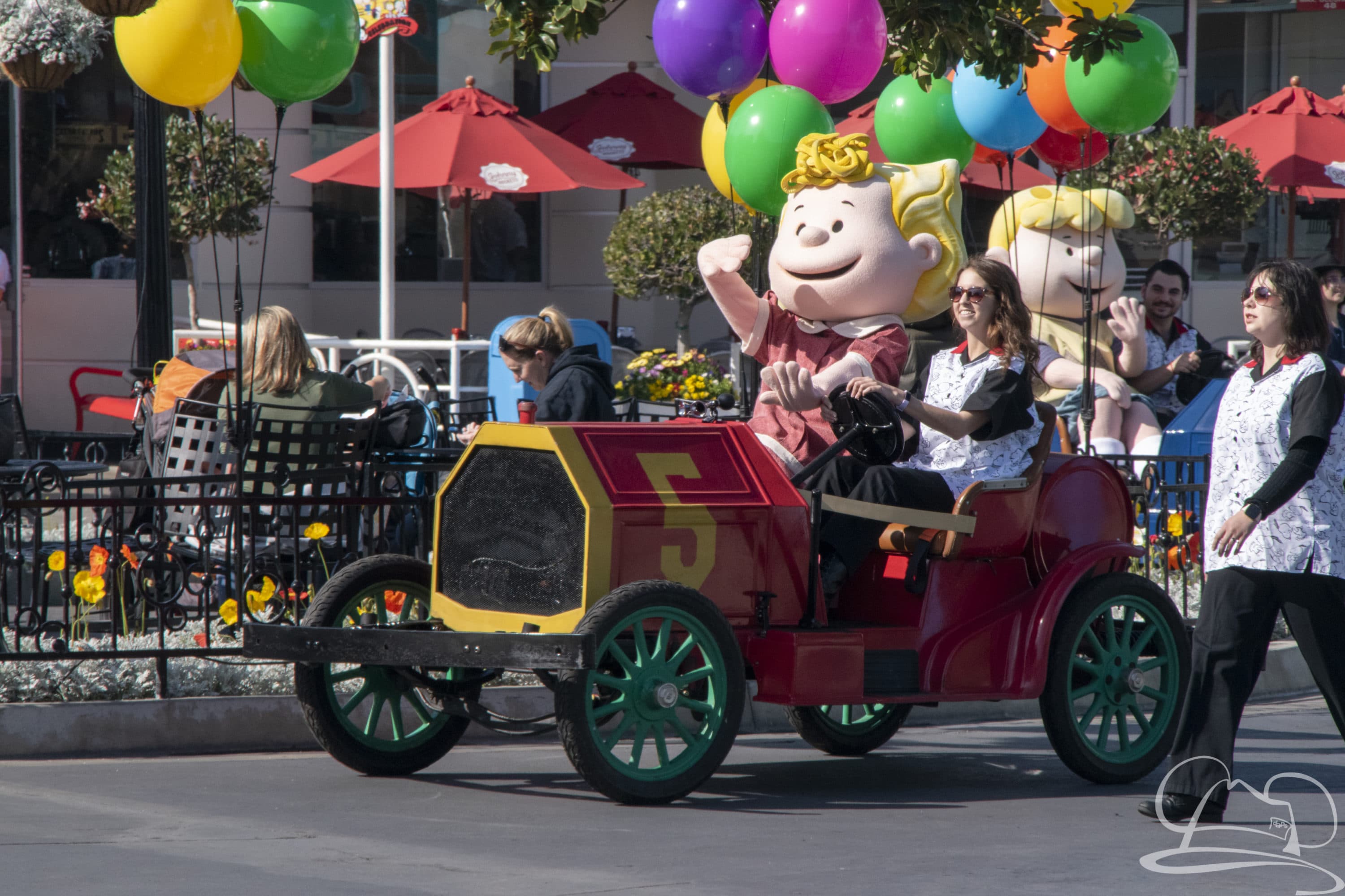 Speaking of characters, a fun little throughout the day surprise is a cavalcade of Peanuts stars around the Boardwalk fountain. They come out via 20’s style roadster and pose for photos around the fountain. Lucy, Sally, and Schroeder seem to be featured here. It was a highly fun, not listed surprise to find!