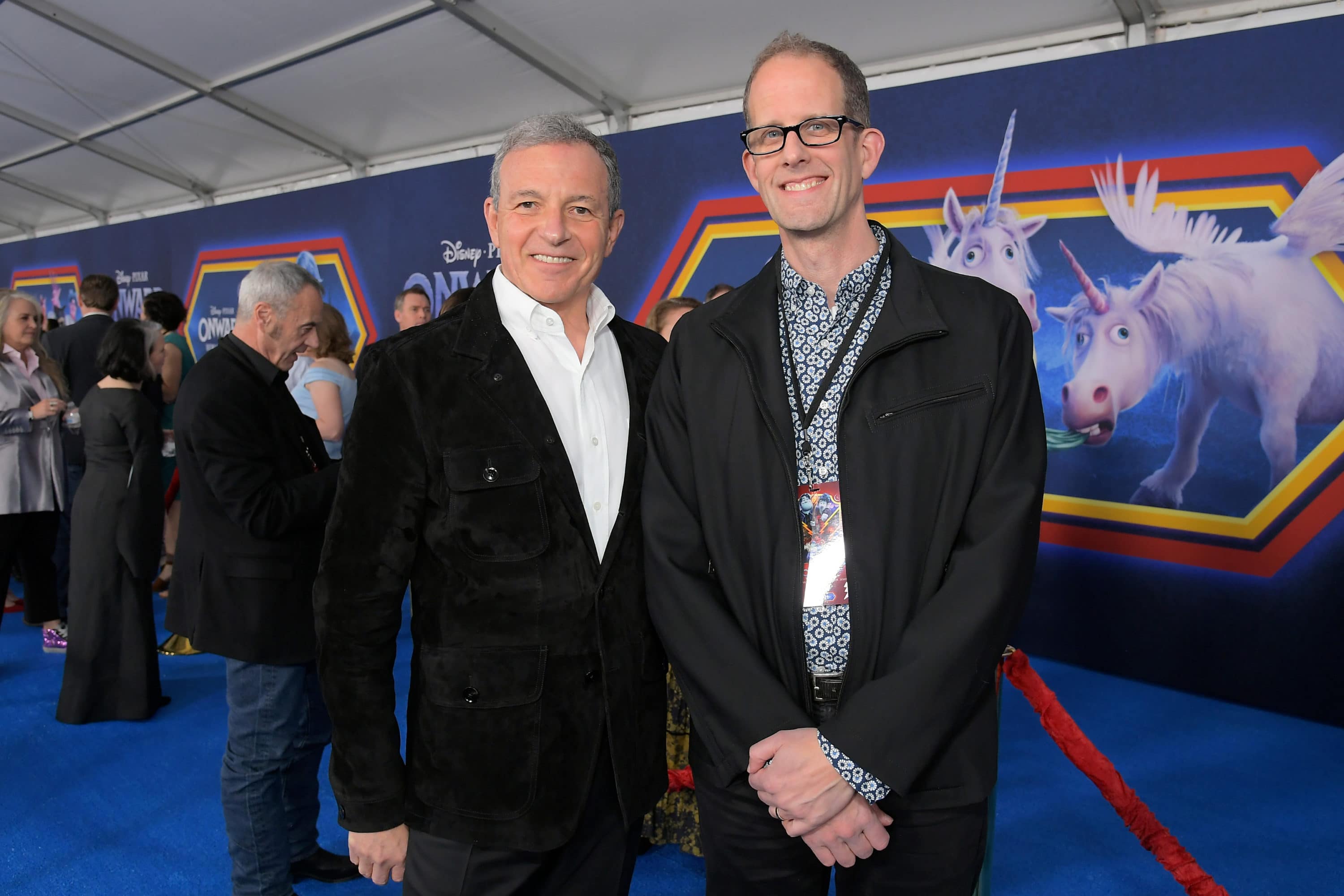 HOLLYWOOD, CALIFORNIA – FEBRUARY 18: (L-R) The Walt Disney Company Chairman and CEO Bob Iger and Executive producer Pete Docter attend the world premiere of Disney and Pixar’s ONWARD at the El Capitan Theatre on February 18, 2020 in Hollywood, California. (Photo by Charley Gallay/Getty Images for Disney)