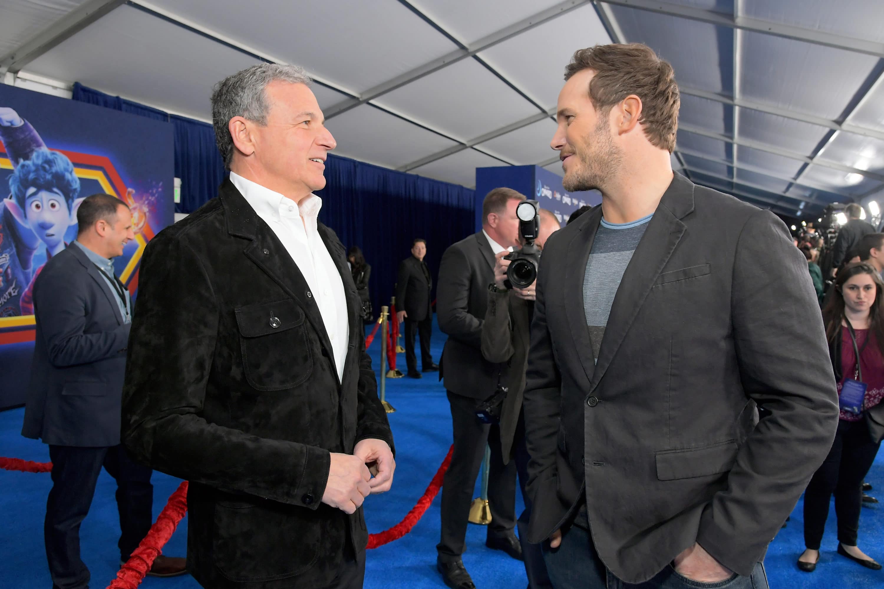 HOLLYWOOD, CALIFORNIA – FEBRUARY 18: The Walt Disney Company Chairman and CEO Bob Iger and Chris Pratt attend the world premiere of Disney and Pixar’s ONWARD at the El Capitan Theatre on February 18, 2020 in Hollywood, California. (Photo by Charley Gallay/Getty Images for Disney)