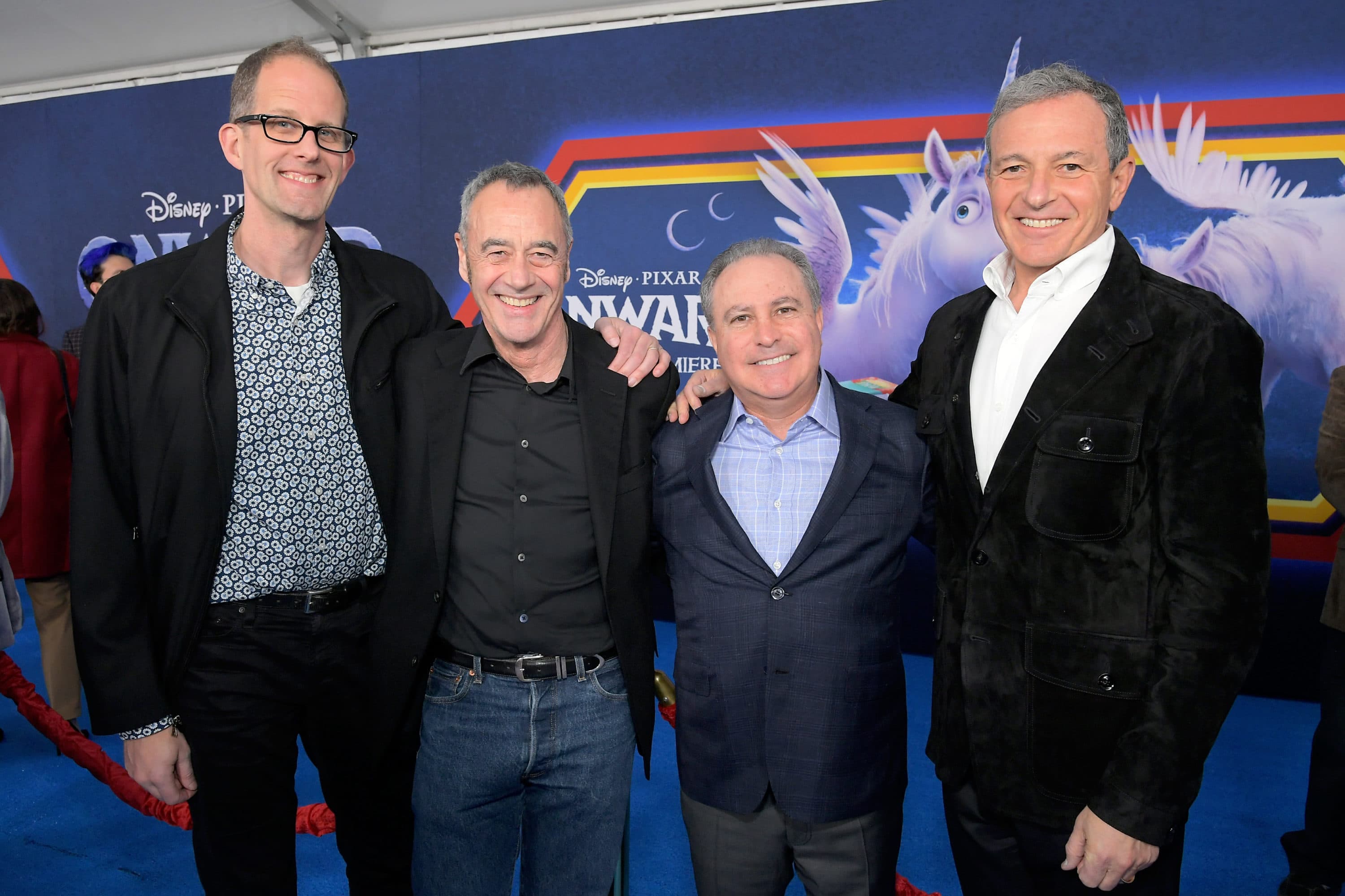 HOLLYWOOD, CALIFORNIA – FEBRUARY 18: (L-R) Executive producer Pete Docter, President of Pixar Animation Studios Jim Morris, Co-Chairman, The Walt Disney Studios Alan Bergman, and The Walt Disney Company Chairman and CEO Bob Iger attend the world premiere of Disney and Pixar’s ONWARD at the El Capitan Theatre on February 18, 2020 in Hollywood, California. (Photo by Charley Gallay/Getty Images for Disney)