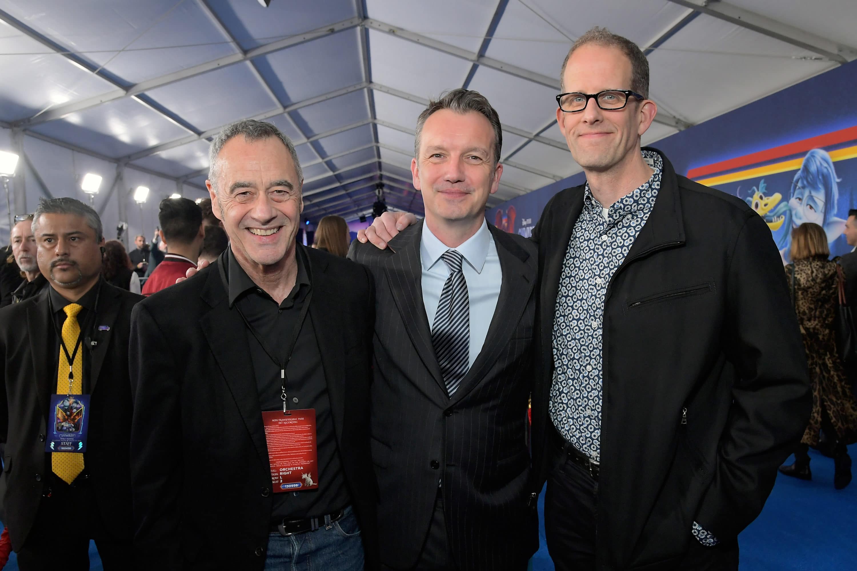 HOLLYWOOD, CALIFORNIA – FEBRUARY 18: (L-R) President of Pixar Animation Studios Jim Morris, President of Walt Disney Studios Motion Picture Production Sean Bailey, and Executive producer Pete Docter attend the world premiere of Disney and Pixar’s ONWARD at the El Capitan Theatre on February 18, 2020 in Hollywood, California. (Photo by Charley Gallay/Getty Images for Disney)