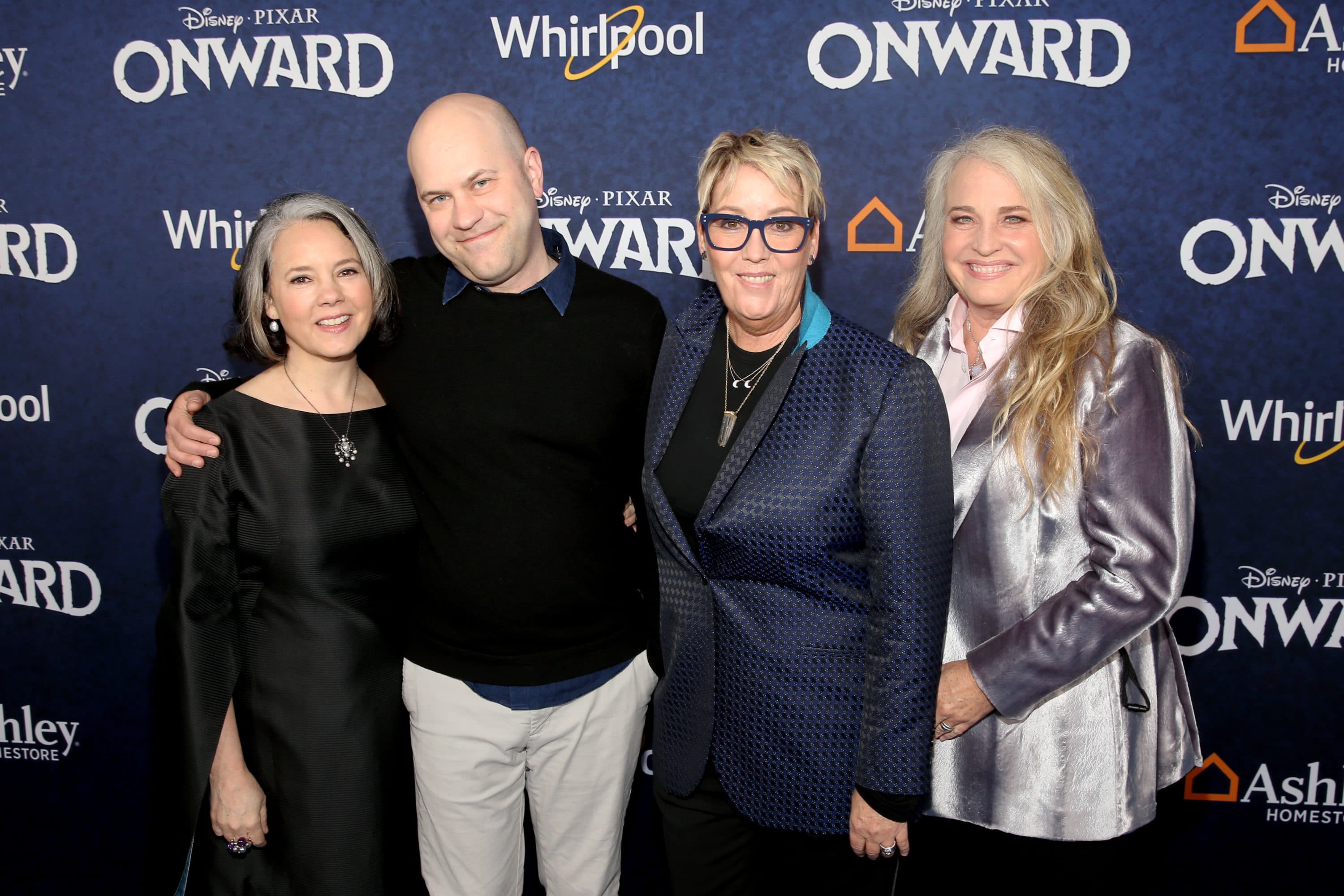 HOLLYWOOD, CALIFORNIA – FEBRUARY 18: (L-R) Michele Scanlon, director/screenwriter Dan Scanlon, producer Kori Rae, and Darla K. Anderson attend the world premiere of Disney and Pixar’s ONWARD at the El Capitan Theatre on February 18, 2020 in Hollywood, California. (Photo by Alberto E. Rodriguez/Getty Images for Disney)