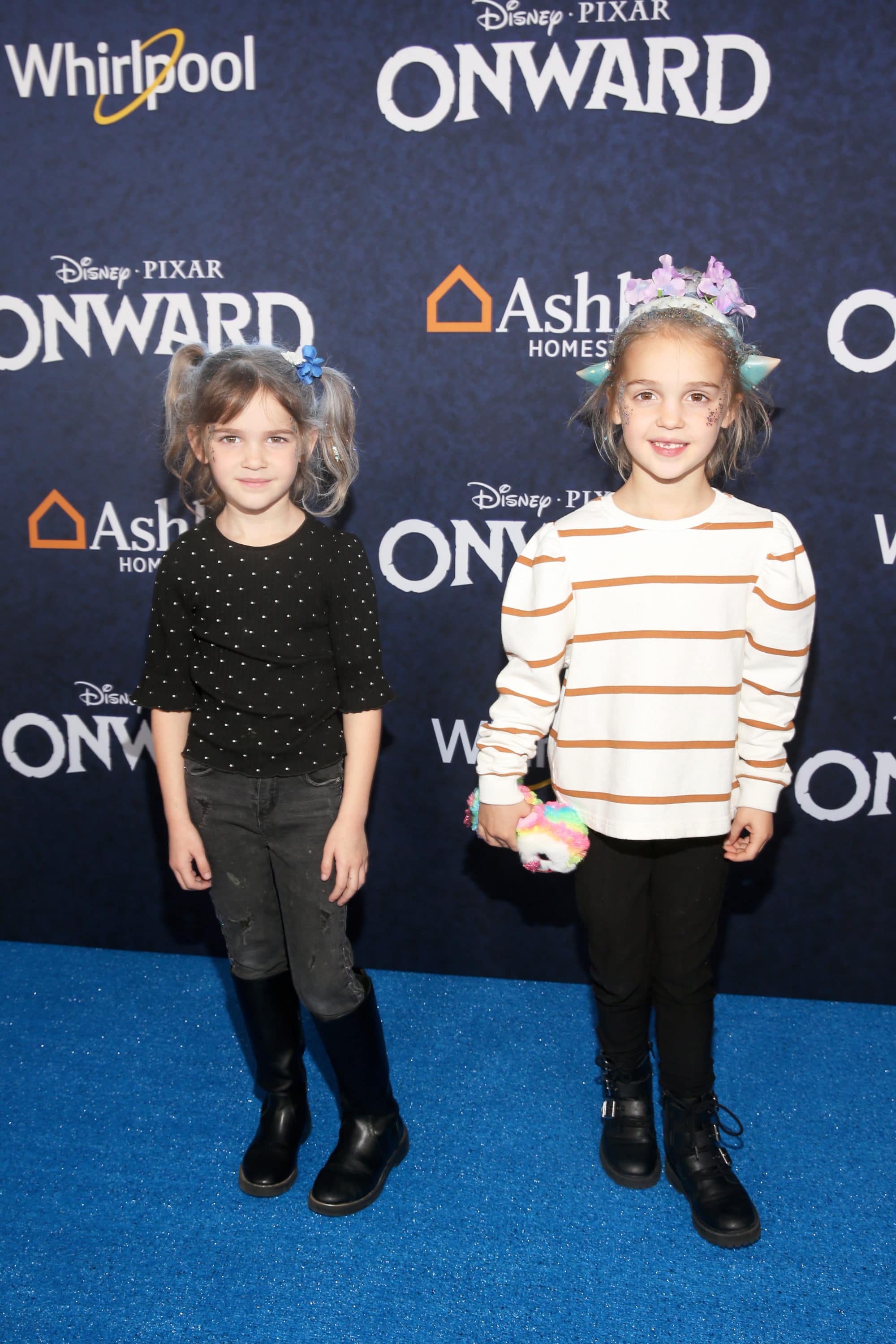 HOLLYWOOD, CALIFORNIA – FEBRUARY 18: (L-R) Mila Stauffer and Emma Stauffer attend the world premiere of Disney and Pixar’s ONWARD at the El Capitan Theatre on February 18, 2020 in Hollywood, California. (Photo by Jesse Grant/Getty Images for Disney)