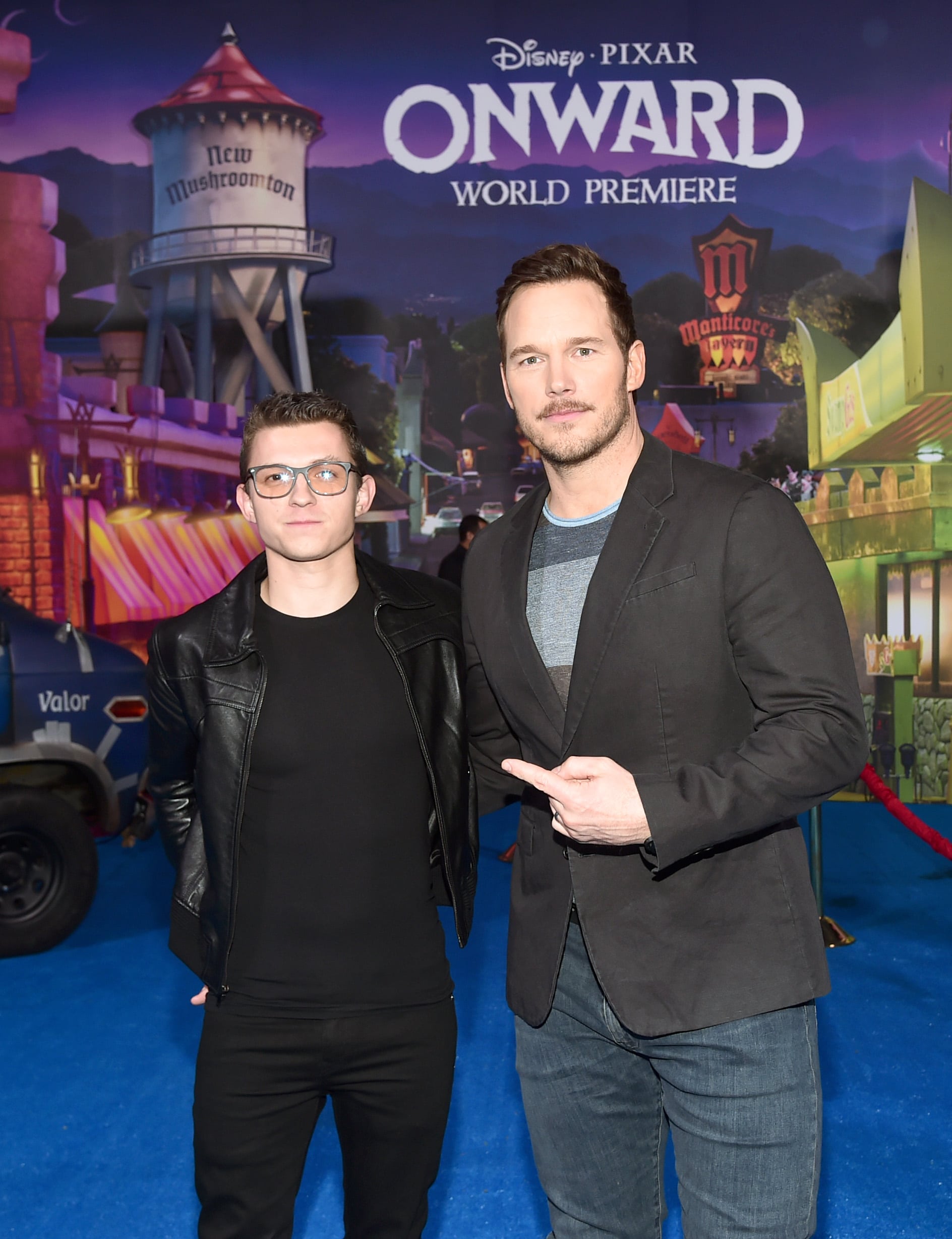 HOLLYWOOD, CALIFORNIA – FEBRUARY 18: (L-R) Tom Holland and Chris Pratt attend the world premiere of Disney and Pixar’s ONWARD at the El Capitan Theatre on February 18, 2020 in Hollywood, California. (Photo by Alberto E. Rodriguez/Getty Images for Disney)