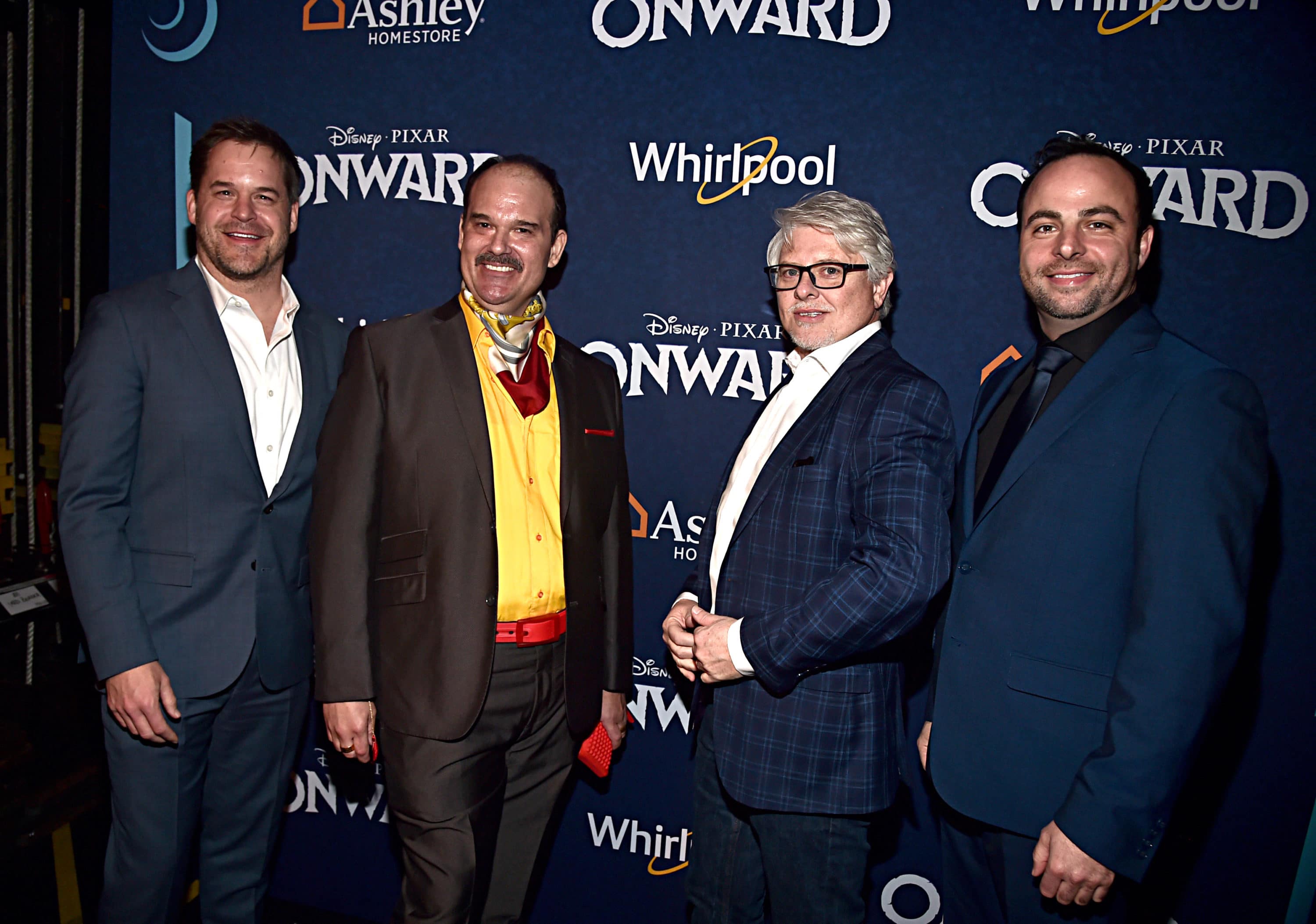 HOLLYWOOD, CALIFORNIA – FEBRUARY 18: (L-R) Kyle Bornheimer, Mel Rodriguez, Dave Foley, and George Psarras attend the world premiere of Disney and Pixar’s ONWARD at the El Capitan Theatre on February 18, 2020 in Hollywood, California. (Photo by Alberto E. Rodriguez/Getty Images for Disney)