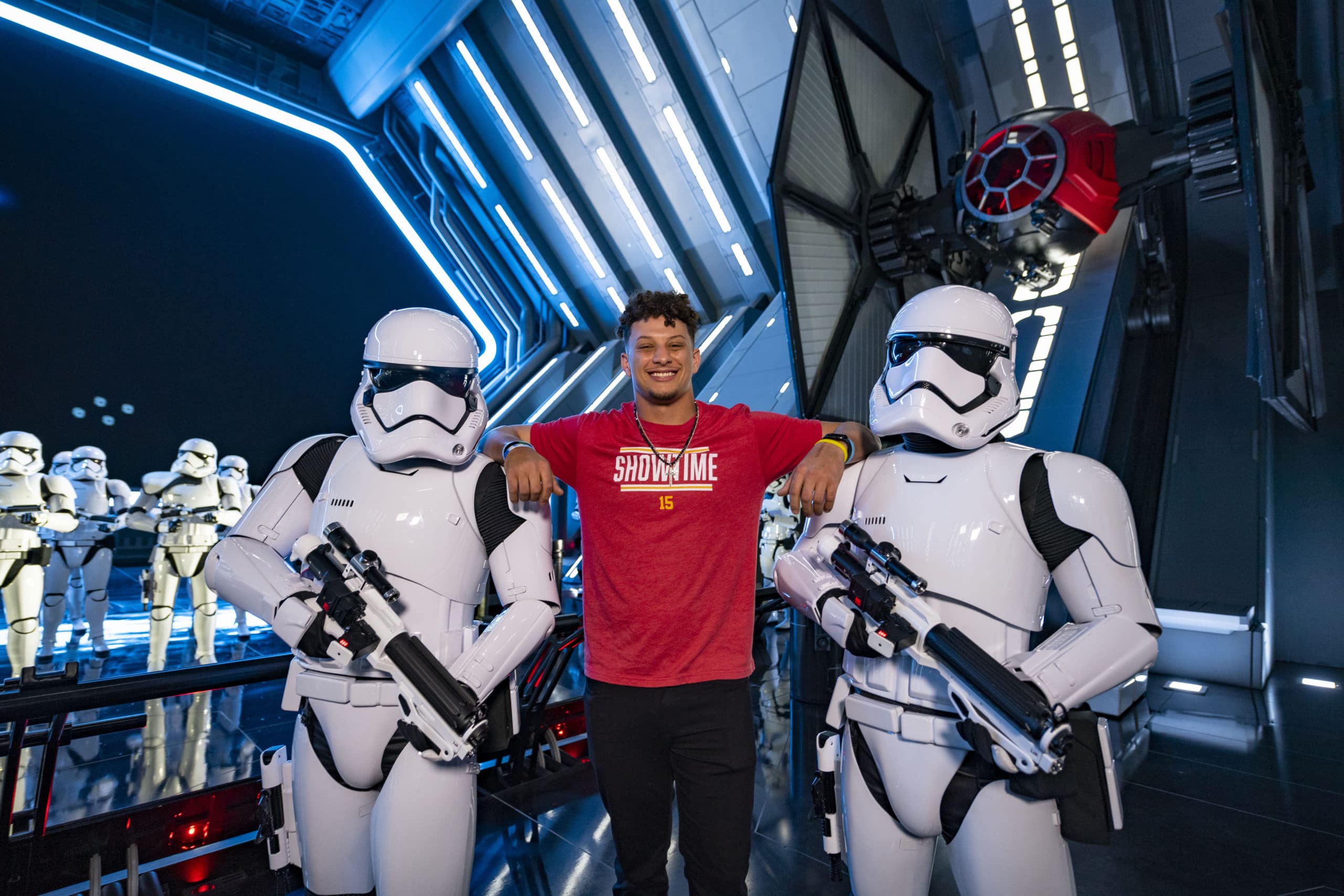 Kansas City Chiefs quarterback Patrick Mahomes experiences Star Wars: Rise of the Resistance, Monday, Feb. 3, 2020, at Disney’s Hollywood Studios while celebrating his Super Bowl victory at Walt Disney Resort in Lake Buena Vista, Fla. (Matt Stroshane, Photographer)