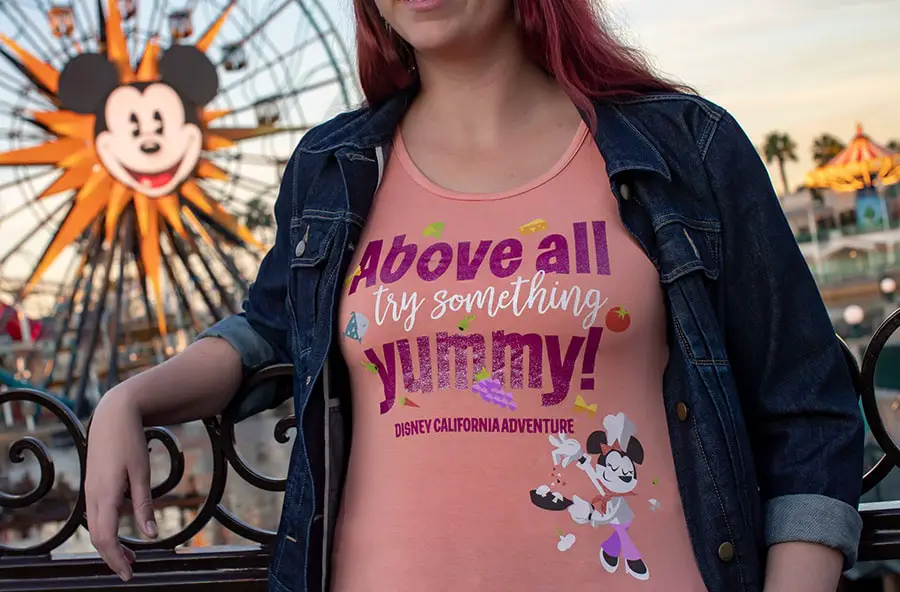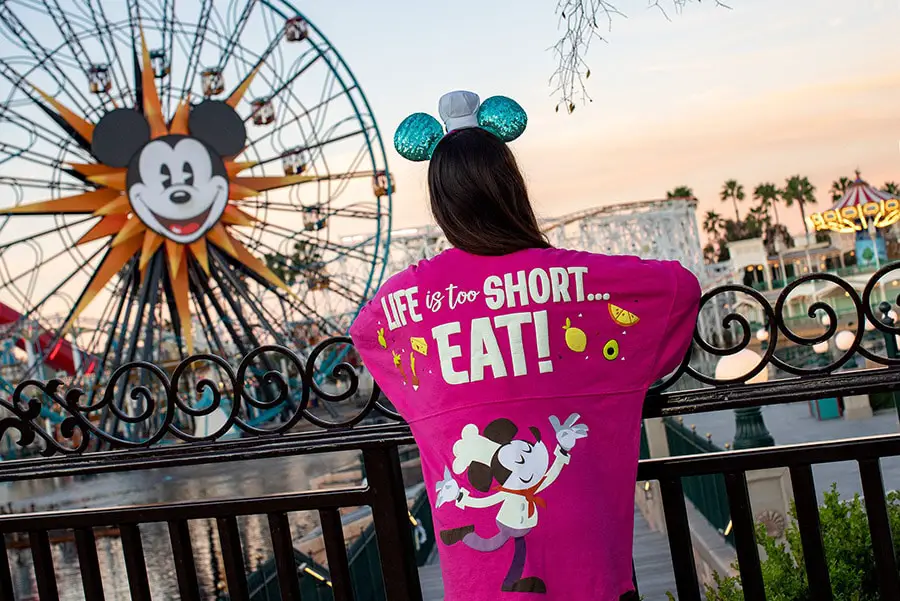 The latest trend in Disney fashion has been spirit jerseys! You can find them in almost any color at both Disneyland and Walt Disney World. This year, you can get a bright pink spirit jersey featuring Chef Mickey! The shirts go right alongside this jersey as they show off your love for all things yummy! You can complete your outfit with the hat featuring Pluto stomping on grapes and the stainless Tervis featuring Mickey!