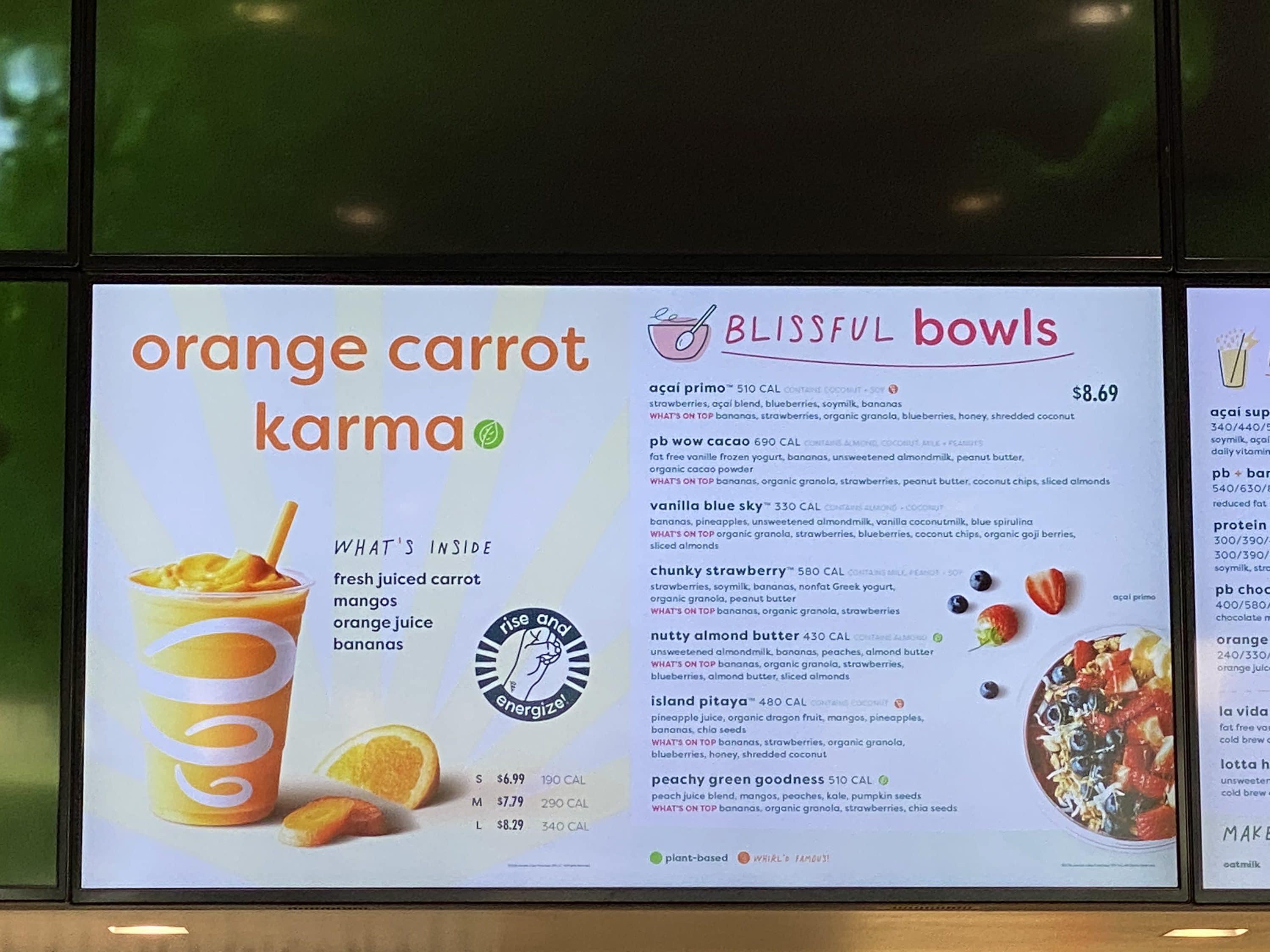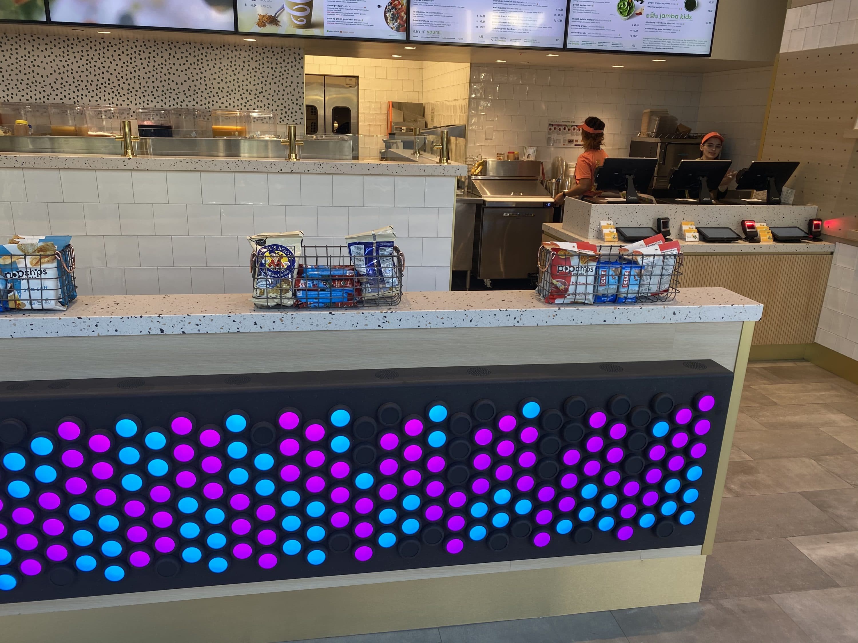 The new store is open and airy with digital monitors for signage inside. It also offers mobile ordering for guests. It is part of a rebranding and redesigning across all of its stores. Jamba is also broadening its menu as well. It now will feature smoothies, juices, bowls, and on-the-go bites. The shorter name was part of the redesign process as the company wanted to show off how its changed with these new offers.