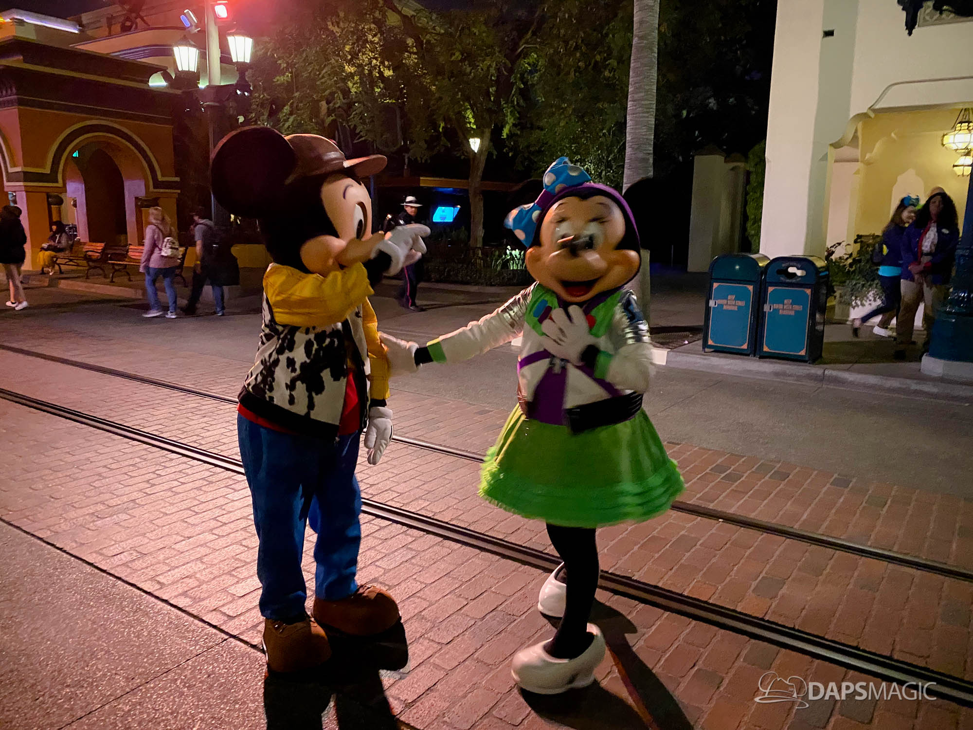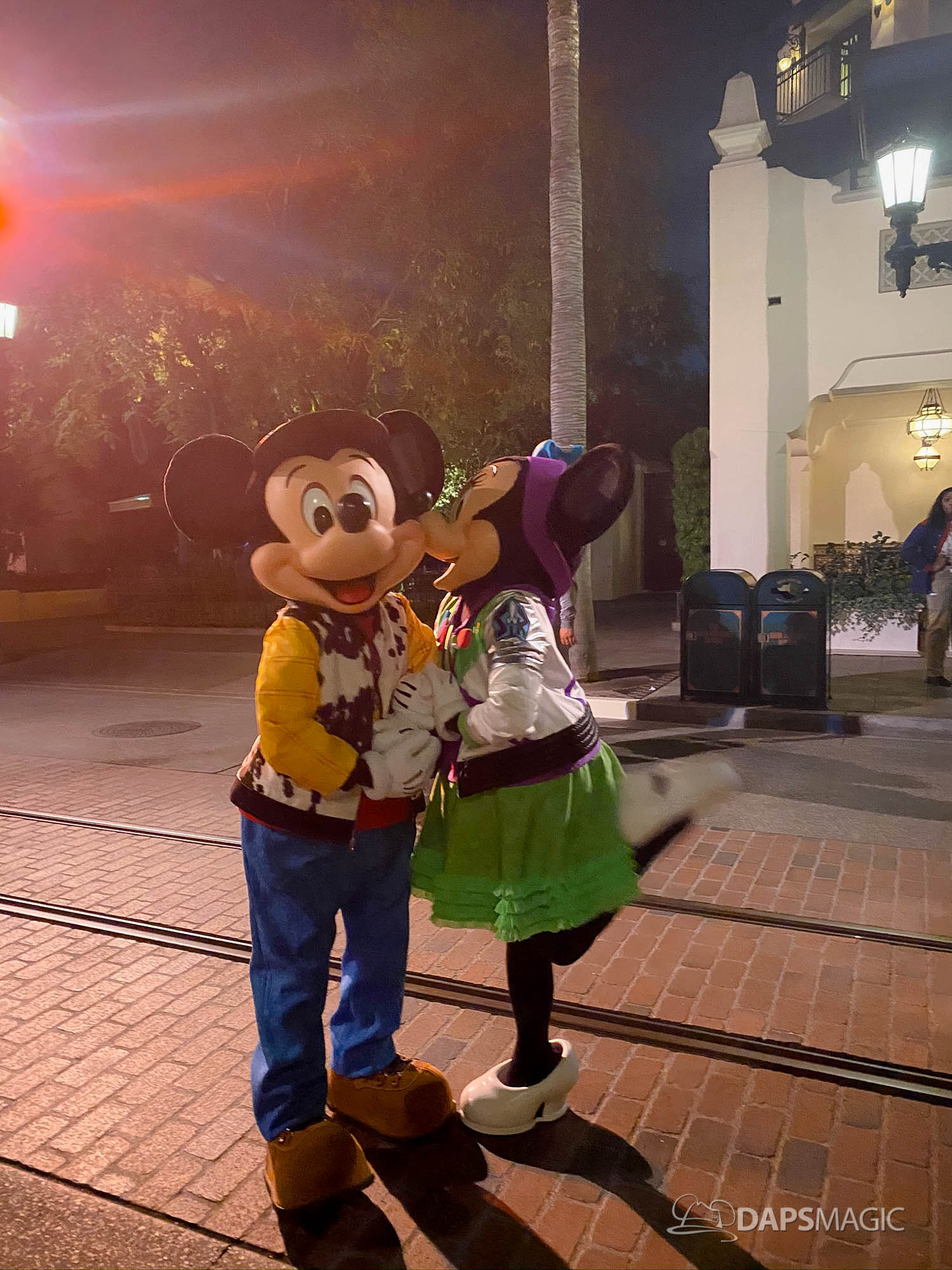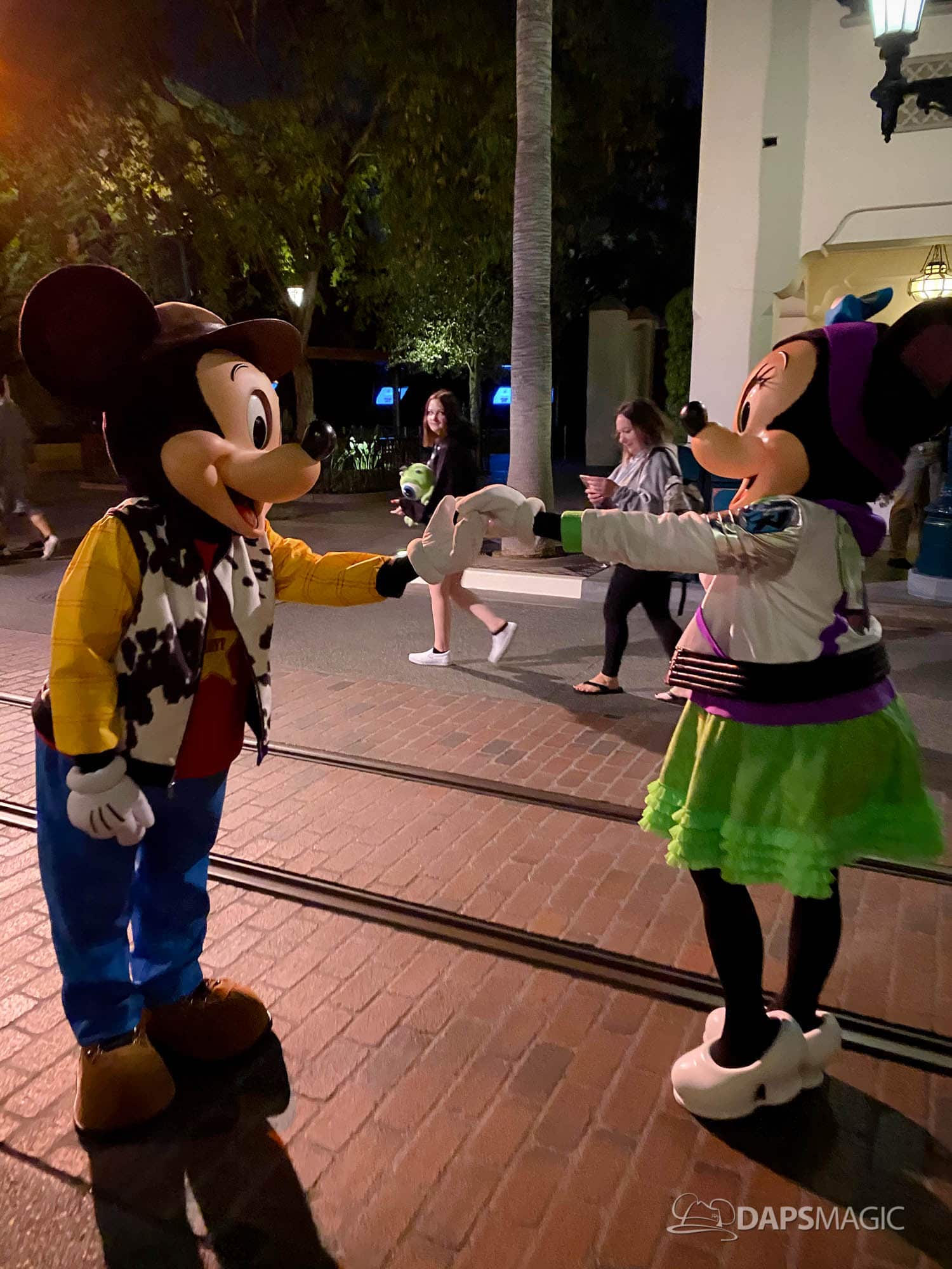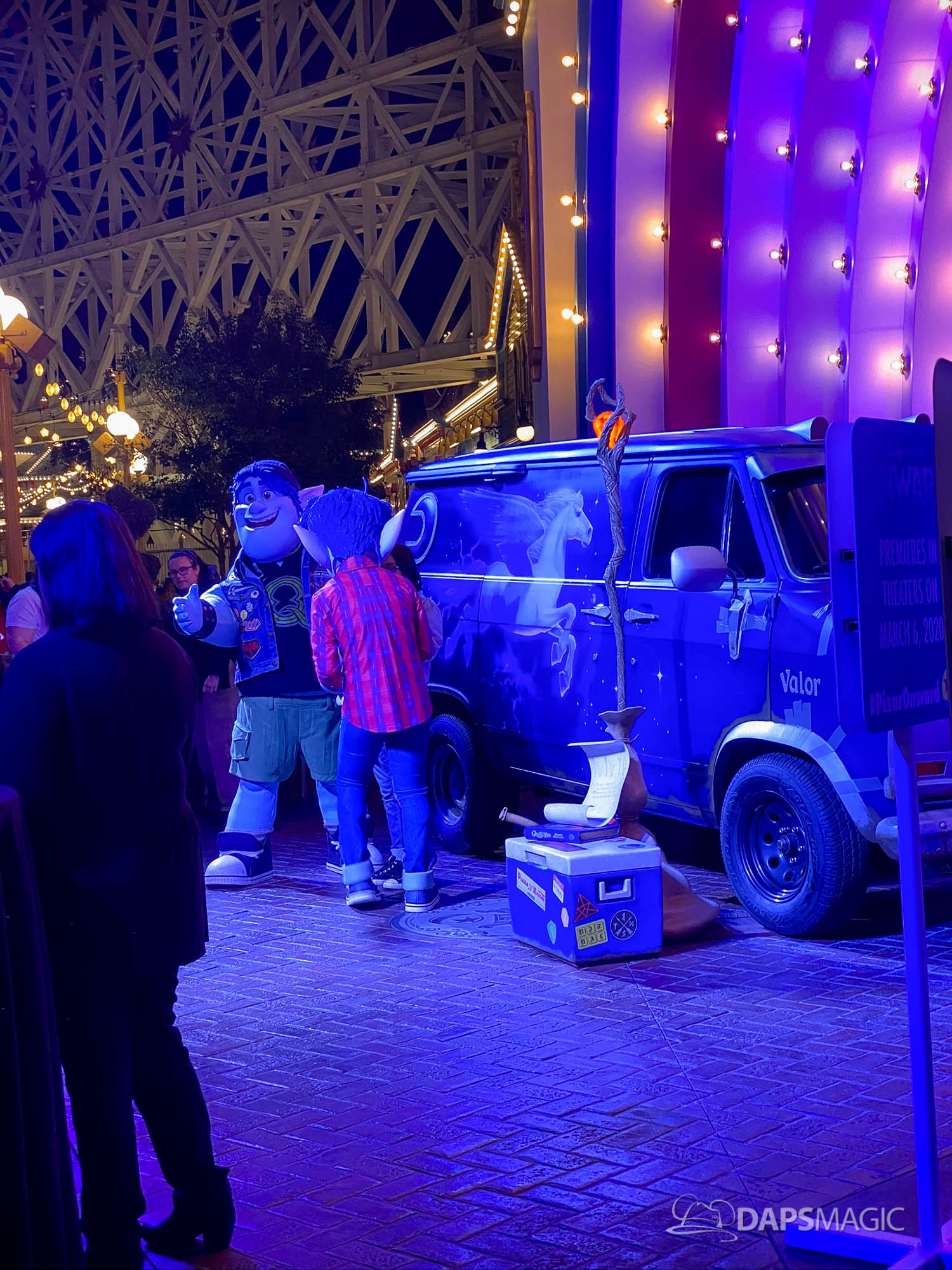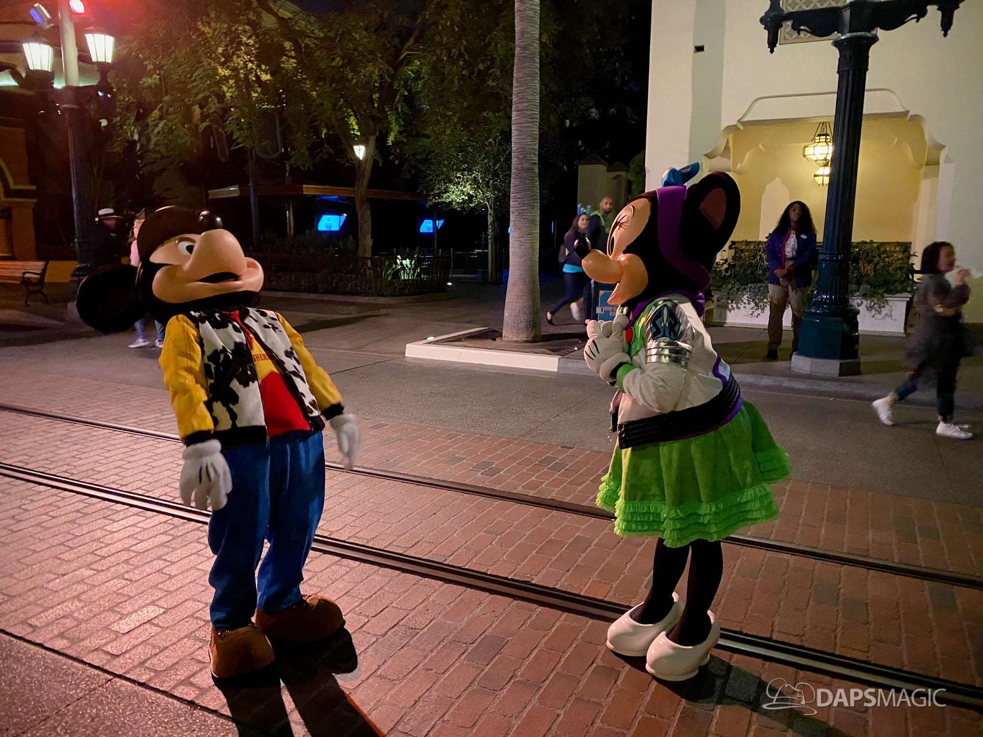 Throughout the night, there were quite a few Pixar characters to meet at Disney California Adventure. They were scattered around the park and were having a blast meeting guests. Almost all of them were Pixar characters, except for Mickey and Minnie Mouse. They were dressed up as Woody and Buzz and were completely adorable. This event was also the Disneyland Resort debut of the Onward characters, which were quite popular throughout the night.
