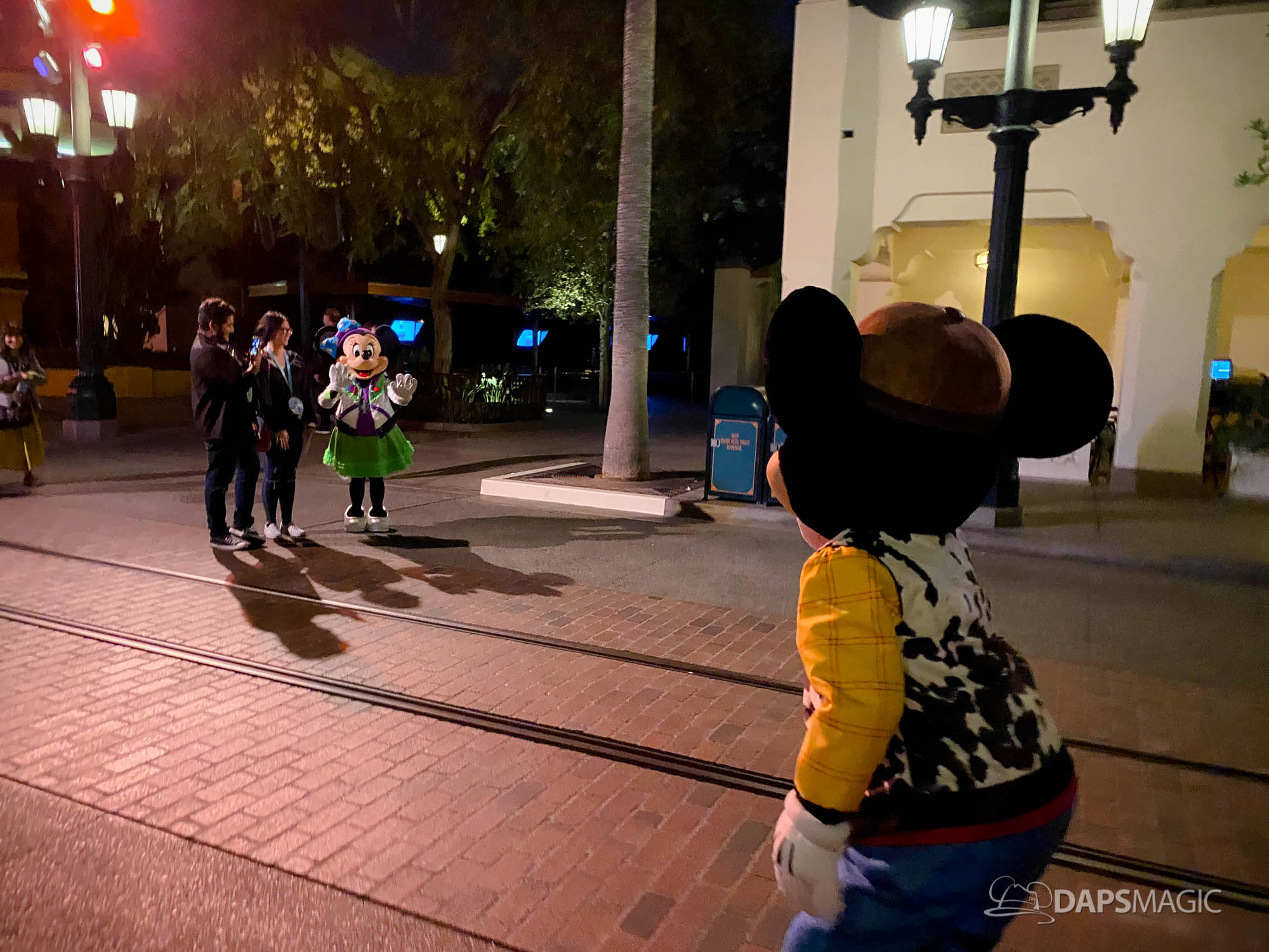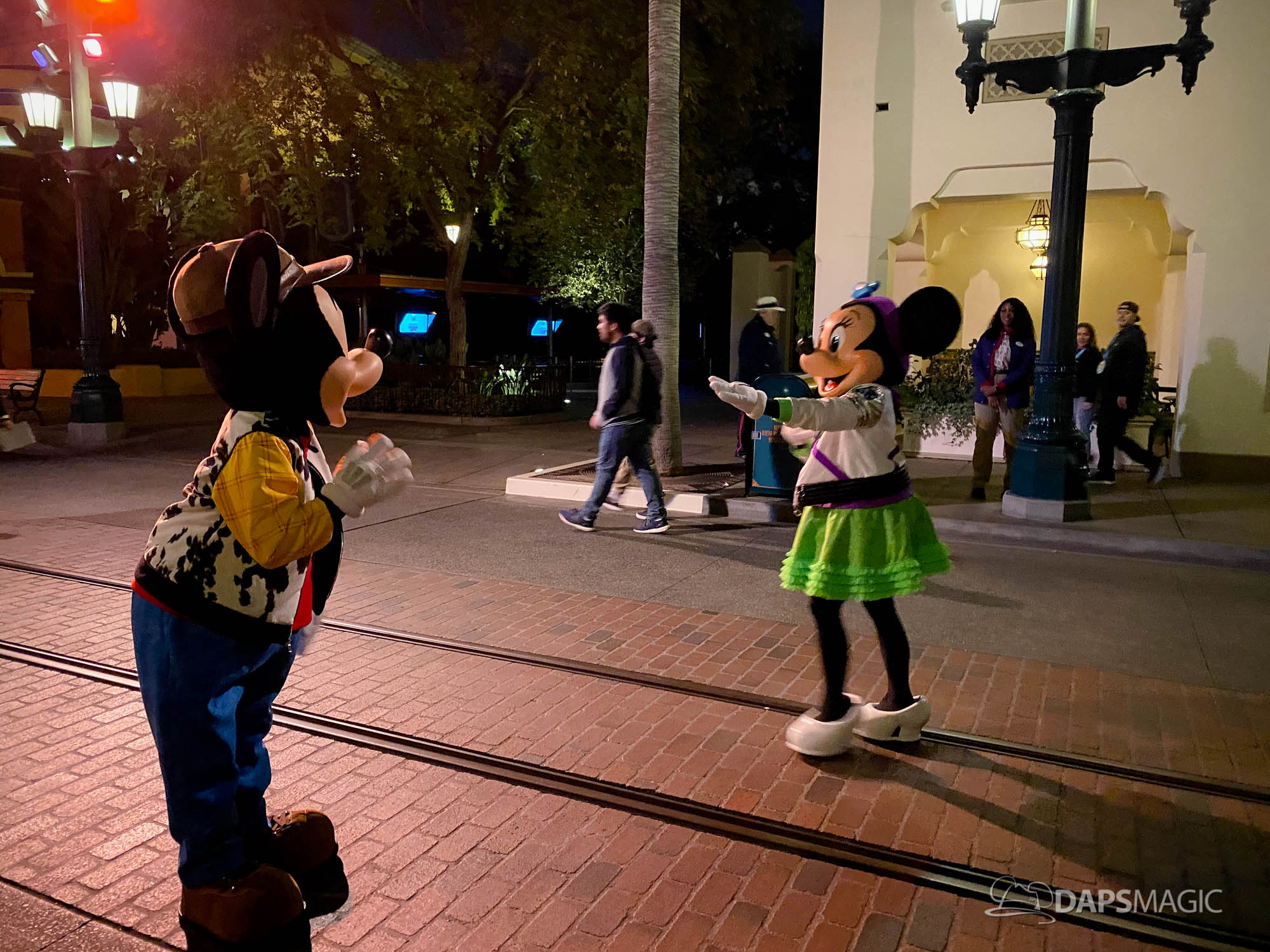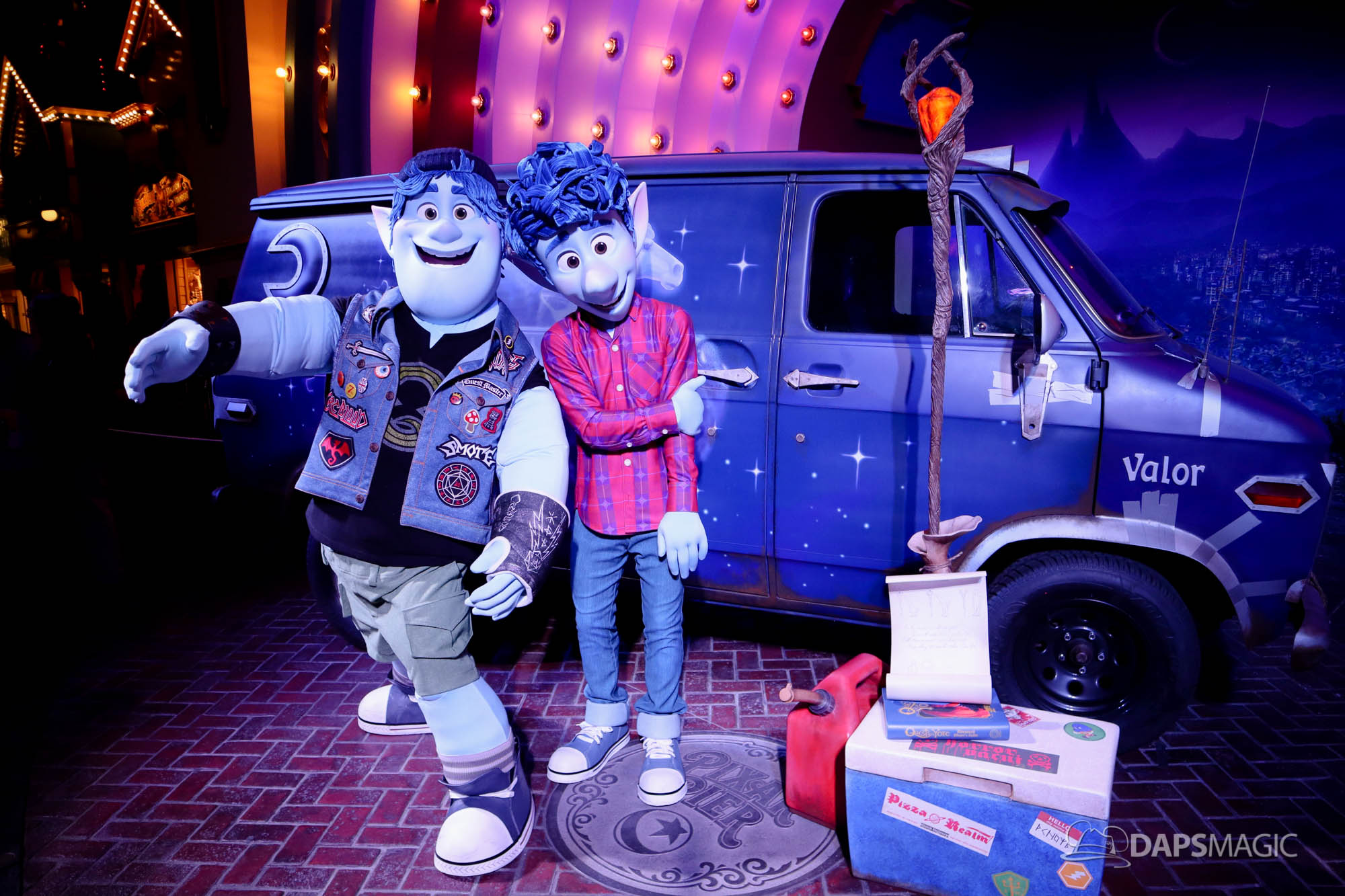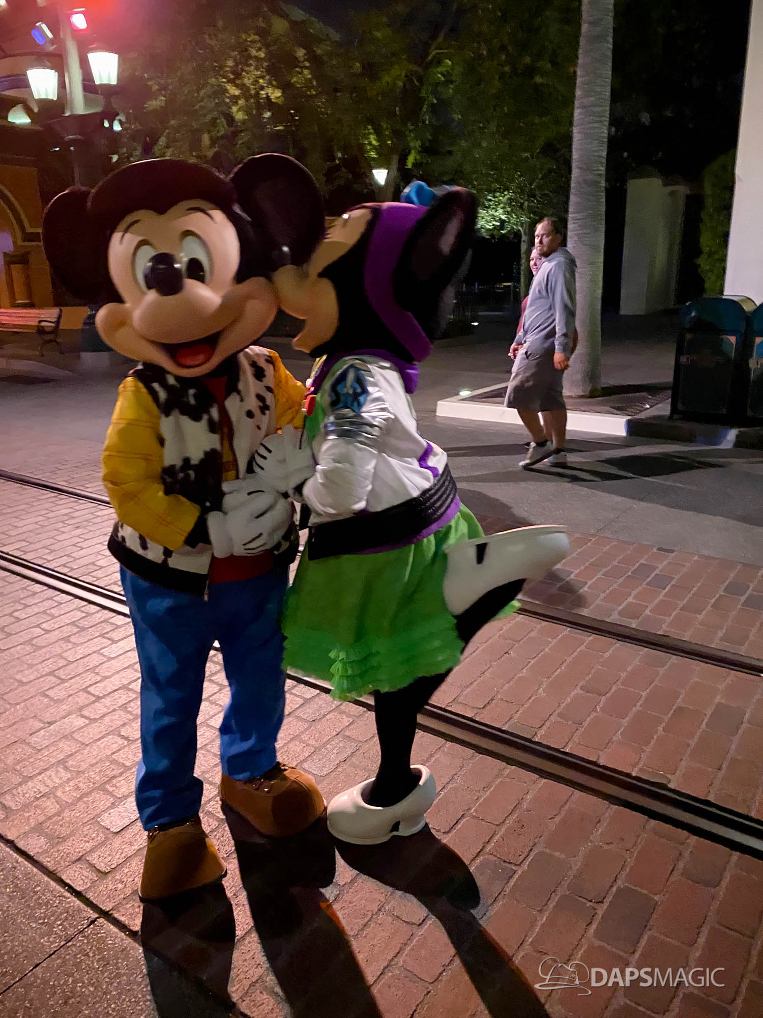 Throughout the night, there were quite a few Pixar characters to meet at Disney California Adventure. They were scattered around the park and were having a blast meeting guests. Almost all of them were Pixar characters, except for Mickey and Minnie Mouse. They were dressed up as Woody and Buzz and were completely adorable. This event was also the Disneyland Resort debut of the Onward characters, which were quite popular throughout the night.
