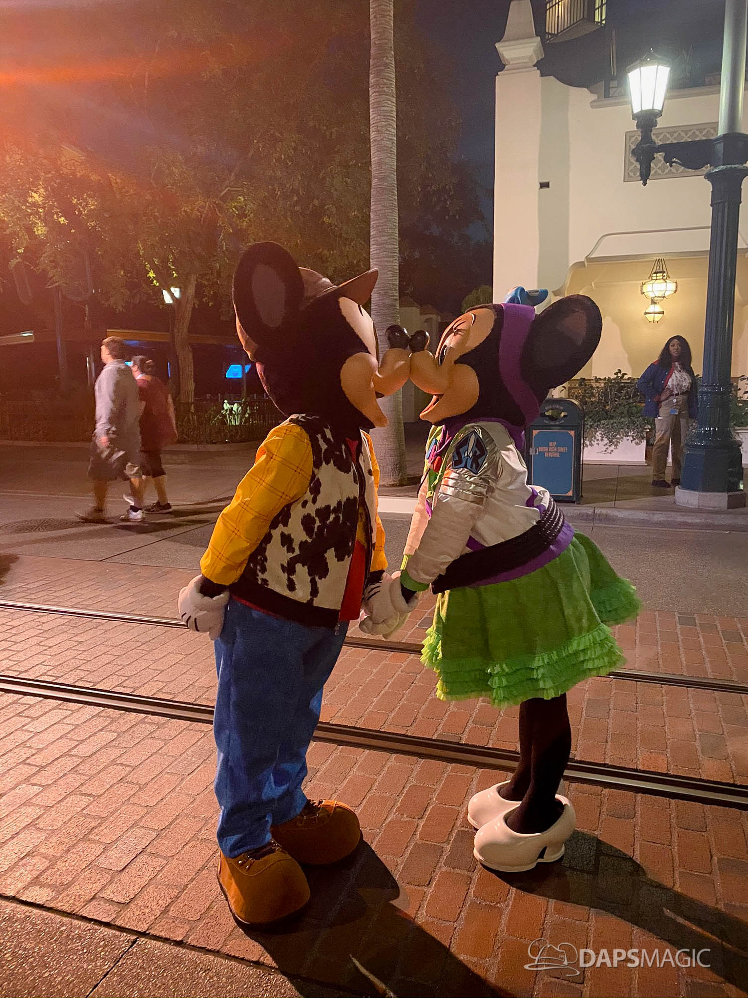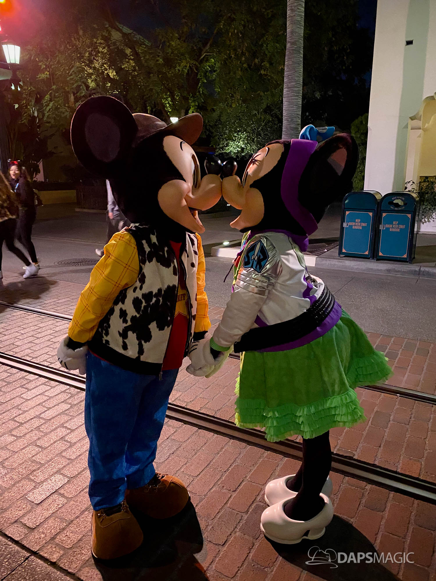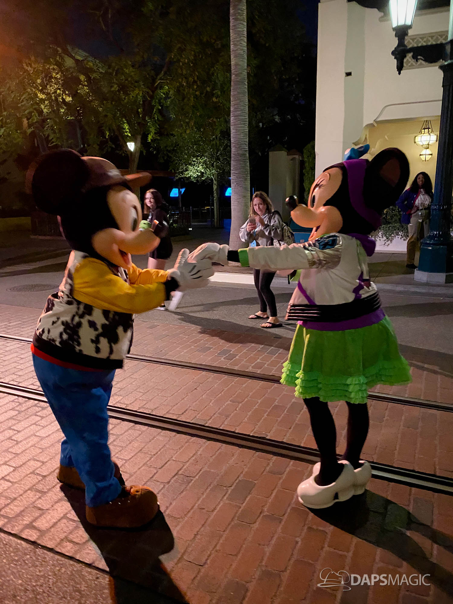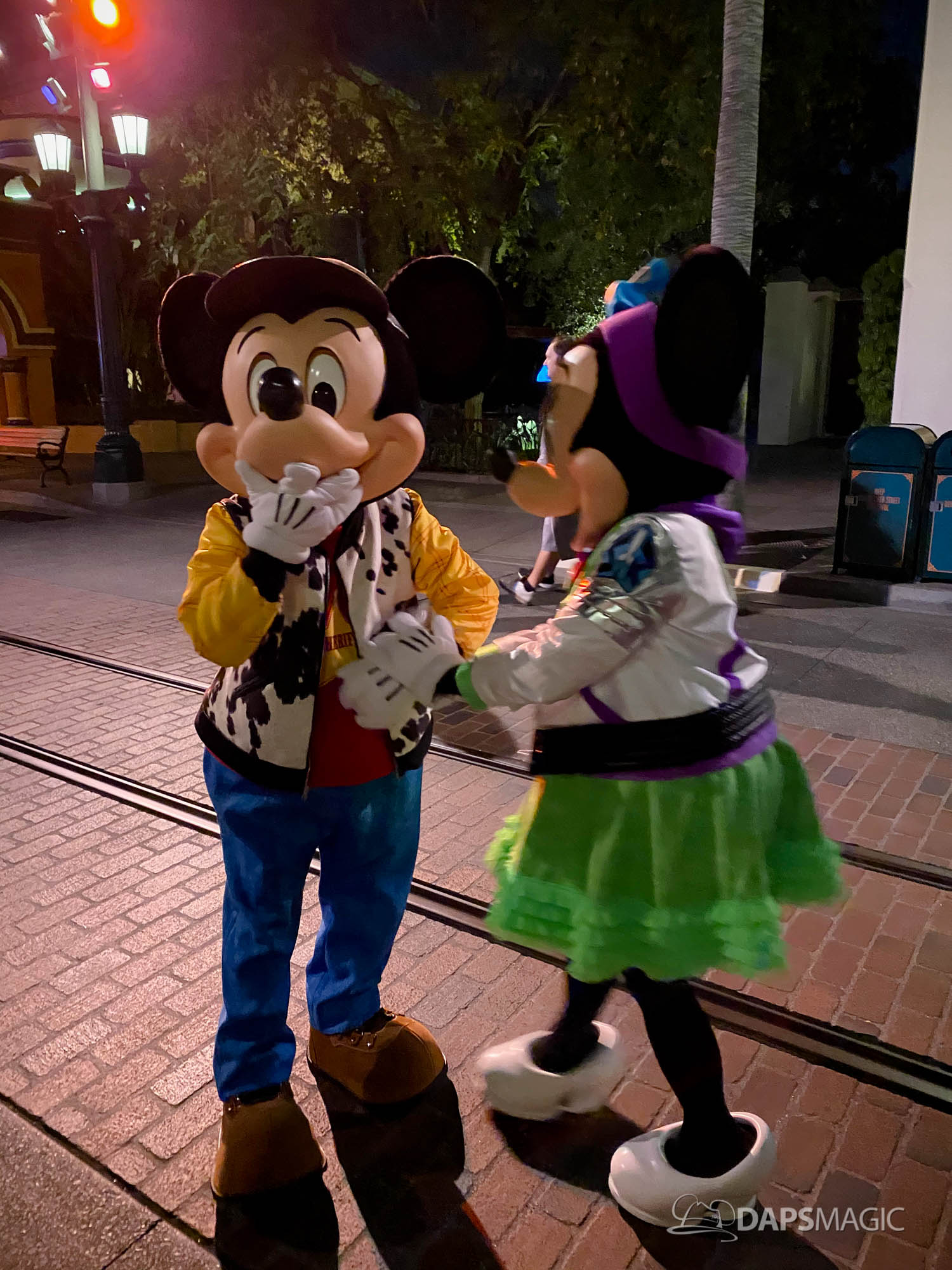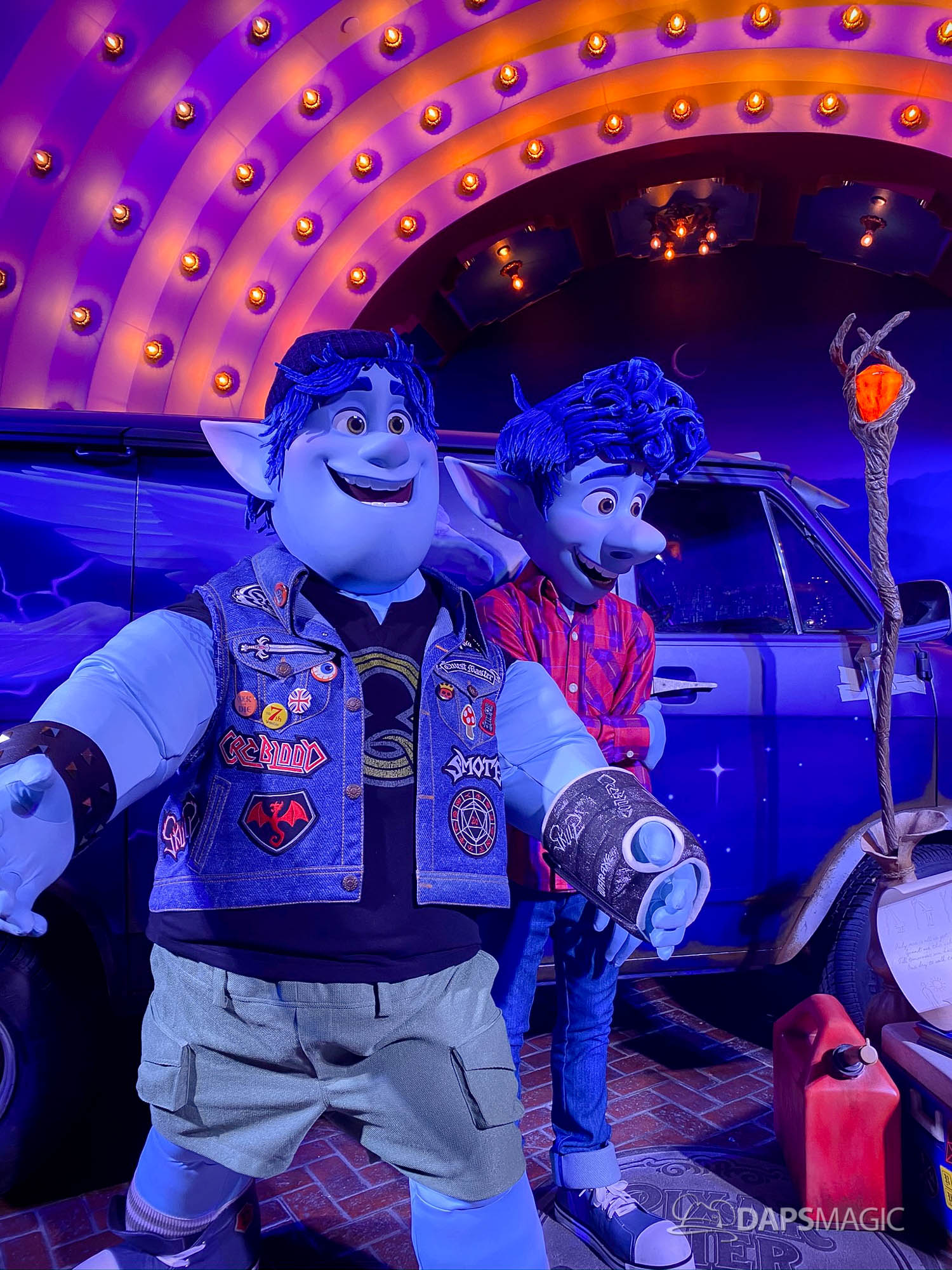 Throughout the night, there were quite a few Pixar characters to meet at Disney California Adventure. They were scattered around the park and were having a blast meeting guests. Almost all of them were Pixar characters, except for Mickey and Minnie Mouse. They were dressed up as Woody and Buzz and were completely adorable. This event was also the Disneyland Resort debut of the Onward characters, which were quite popular throughout the night.