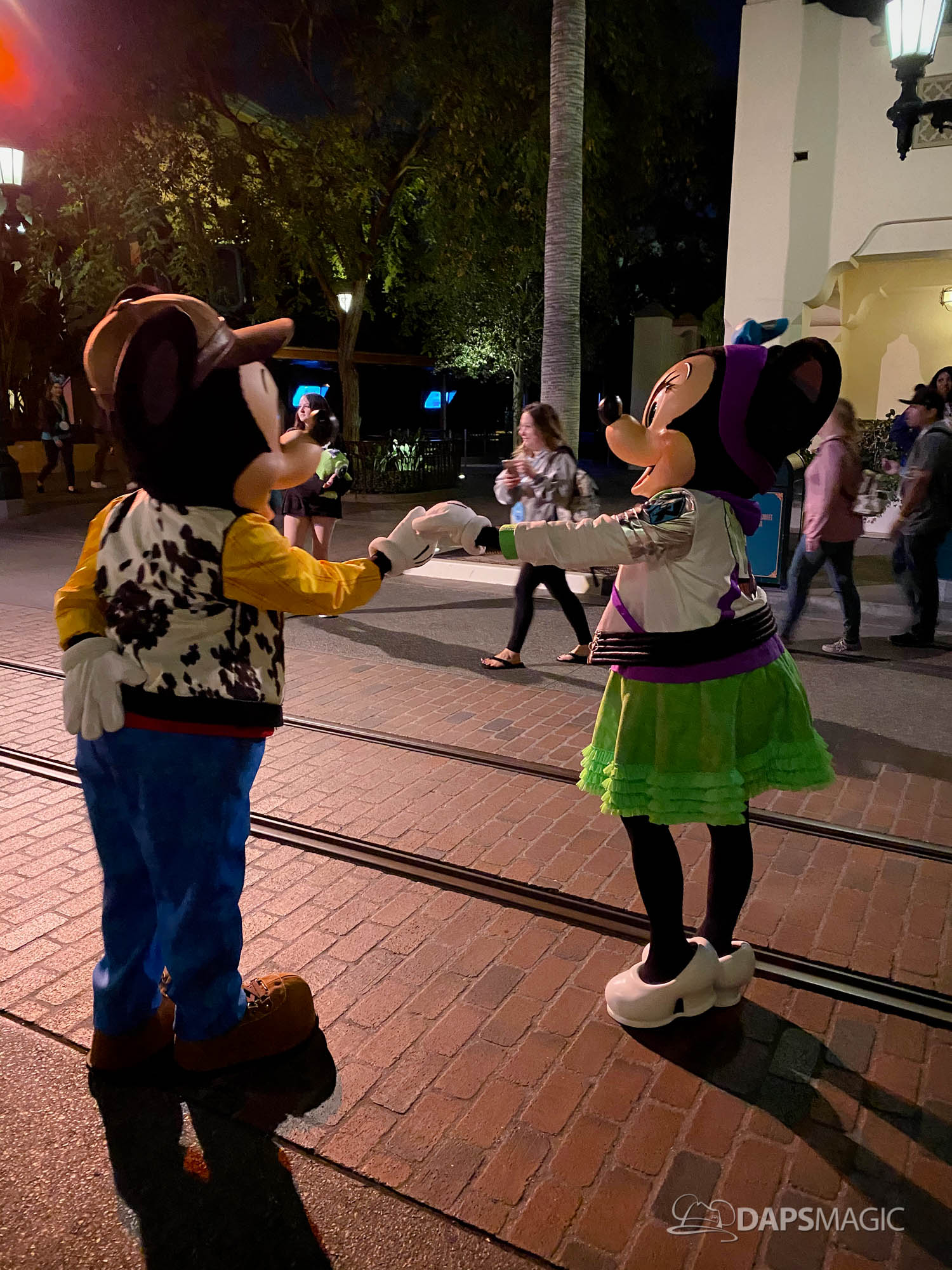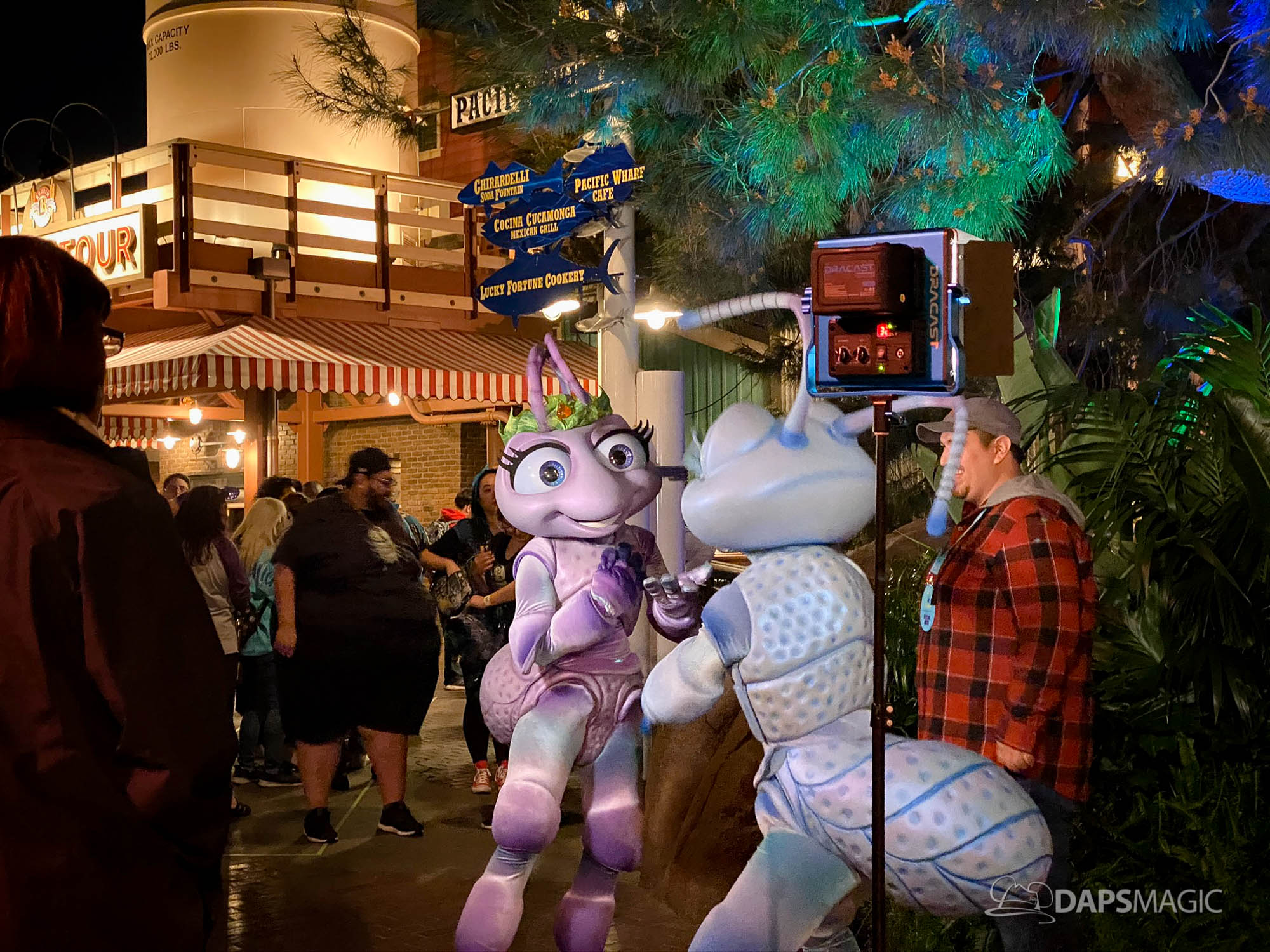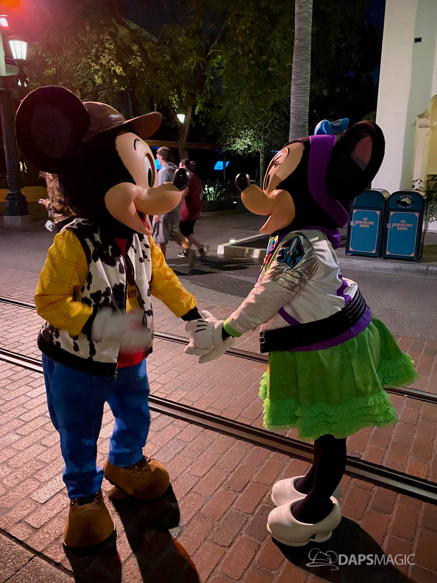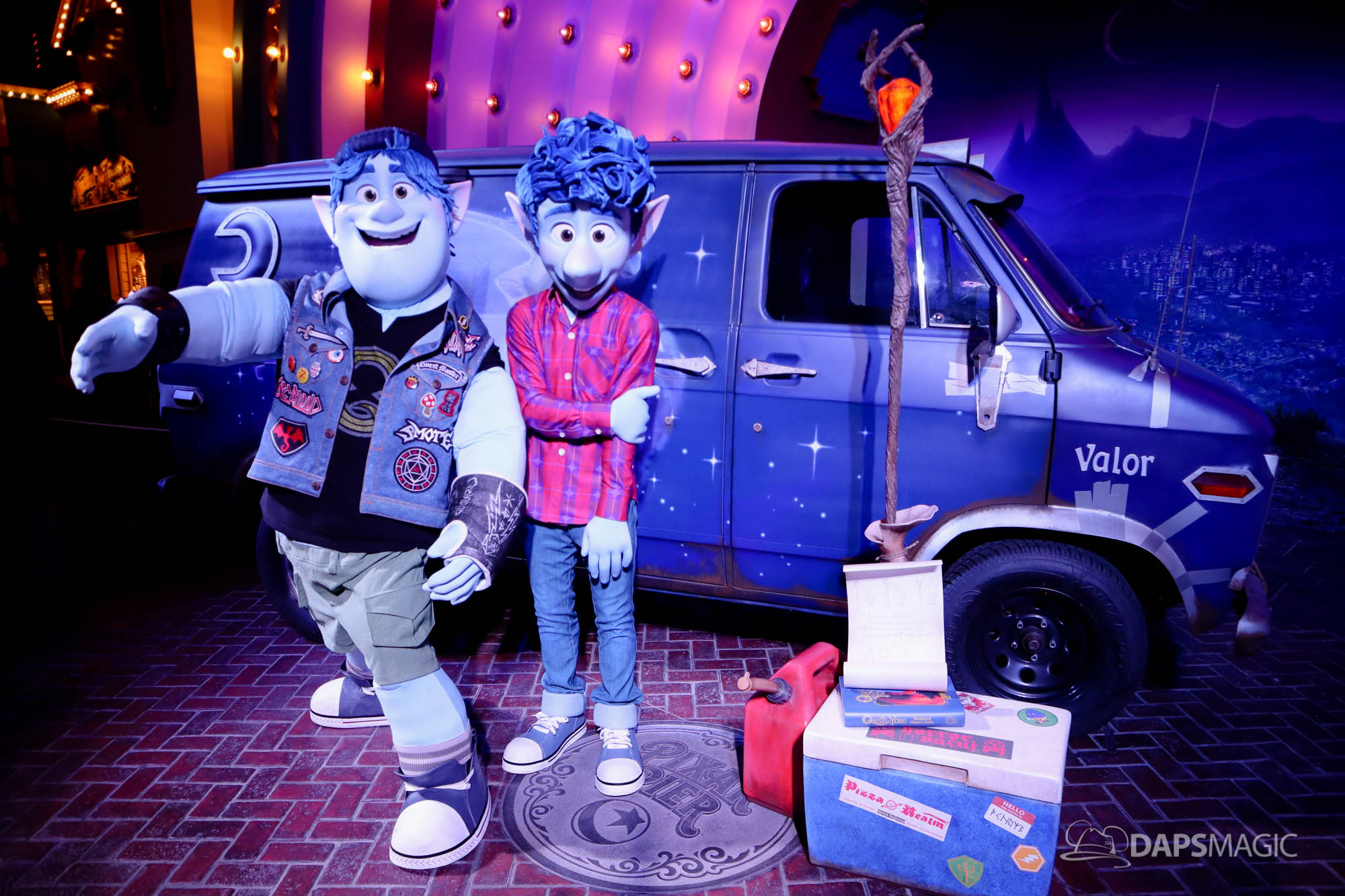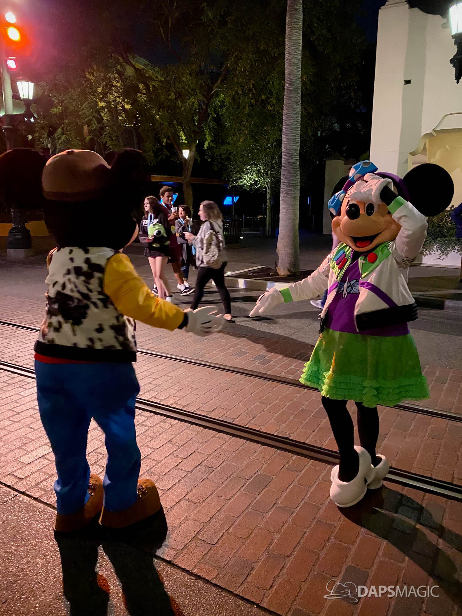 Throughout the night, there were quite a few Pixar characters to meet at Disney California Adventure. They were scattered around the park and were having a blast meeting guests. Almost all of them were Pixar characters, except for Mickey and Minnie Mouse. They were dressed up as Woody and Buzz and were completely adorable. This event was also the Disneyland Resort debut of the Onward characters, which were quite popular throughout the night.