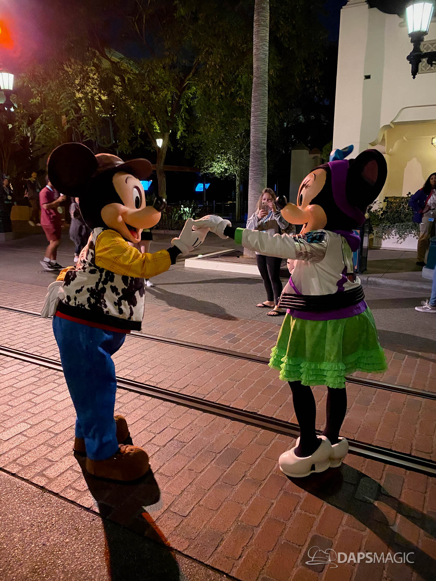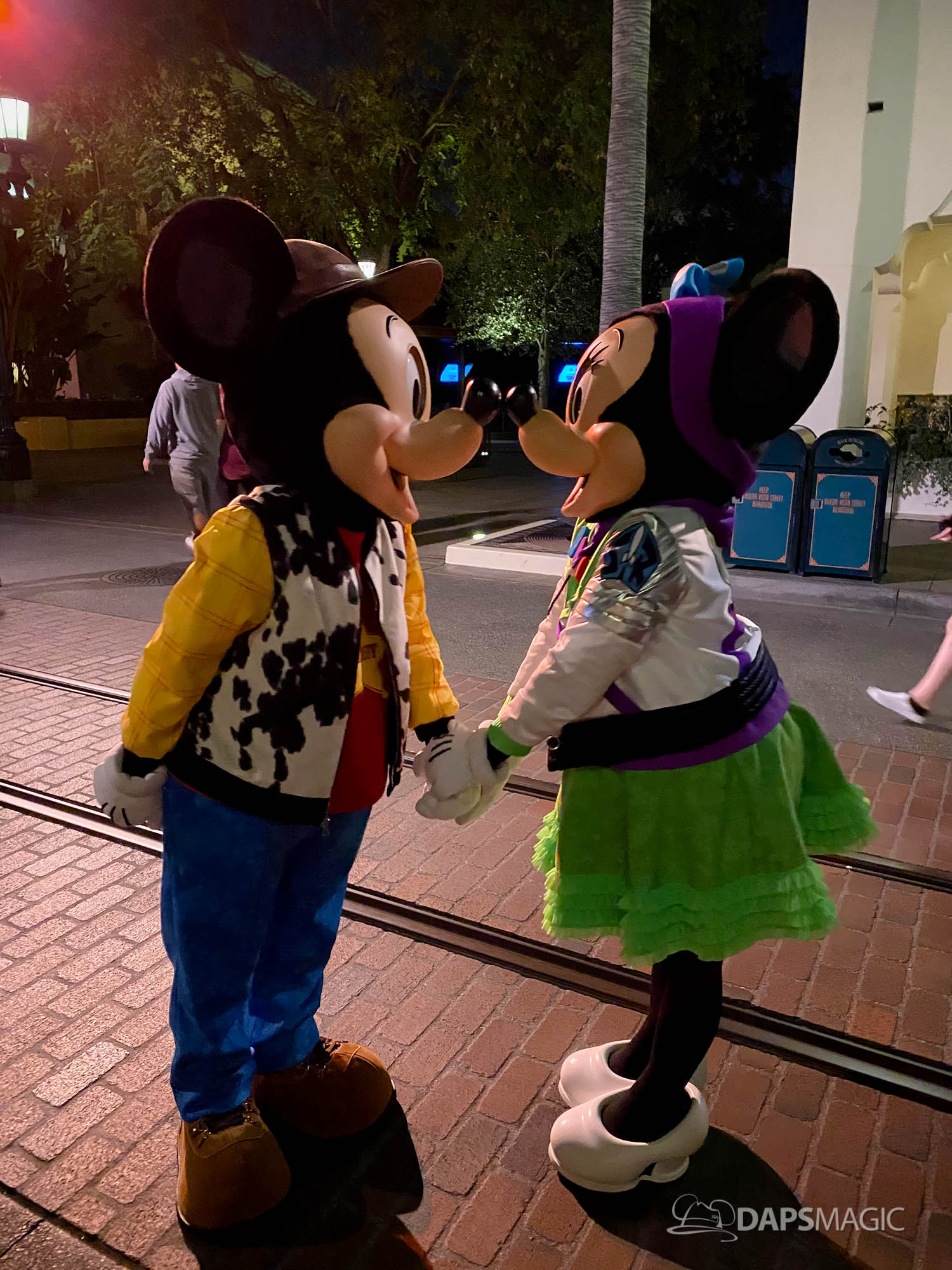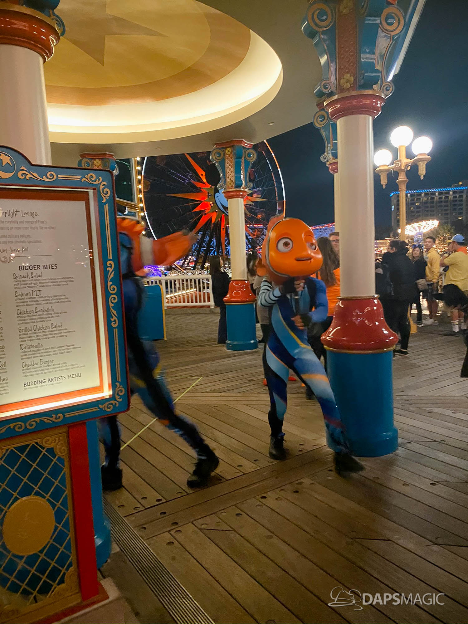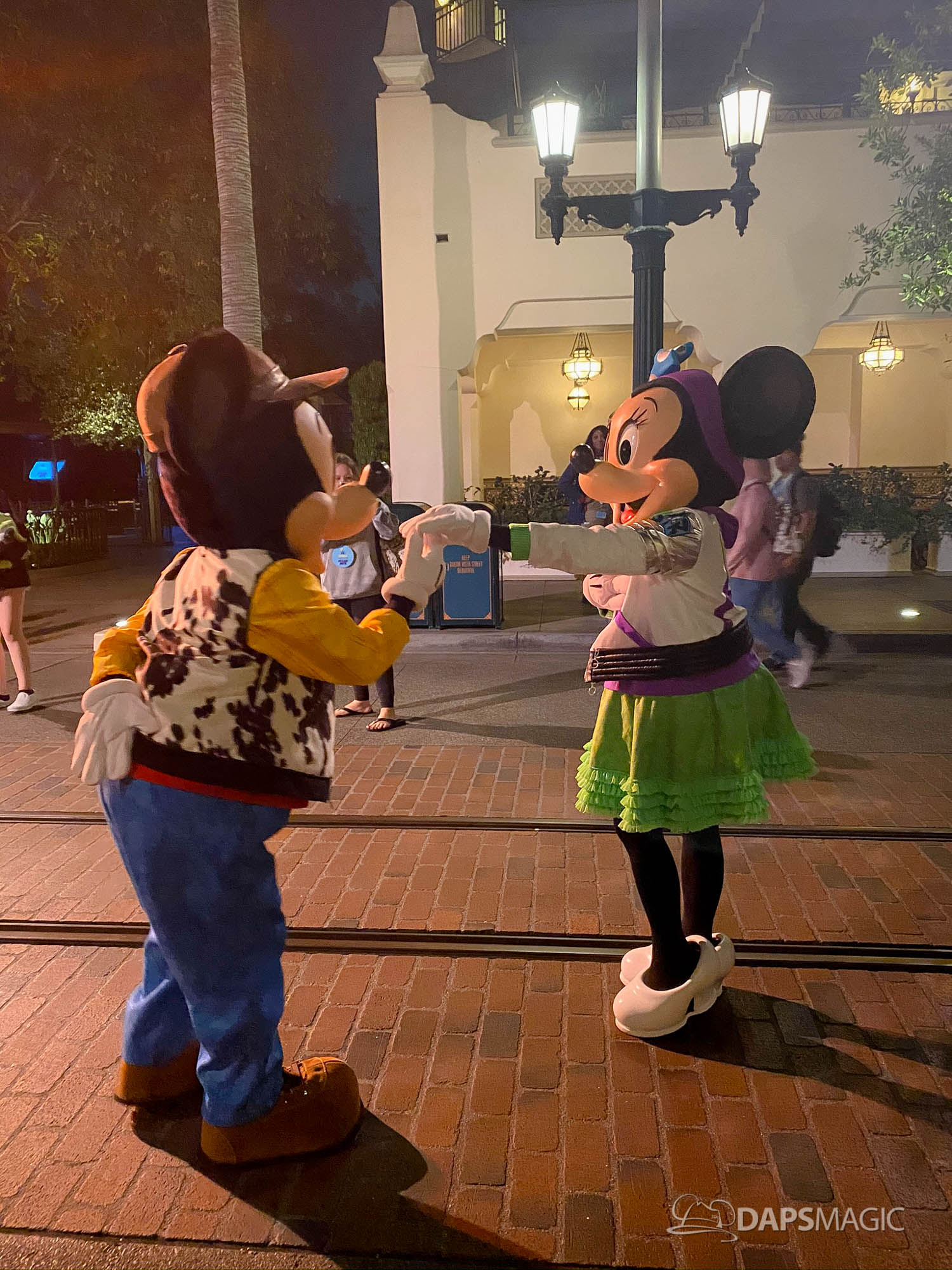 Throughout the night, there were quite a few Pixar characters to meet at Disney California Adventure. They were scattered around the park and were having a blast meeting guests. Almost all of them were Pixar characters, except for Mickey and Minnie Mouse. They were dressed up as Woody and Buzz and were completely adorable. This event was also the Disneyland Resort debut of the Onward characters, which were quite popular throughout the night.