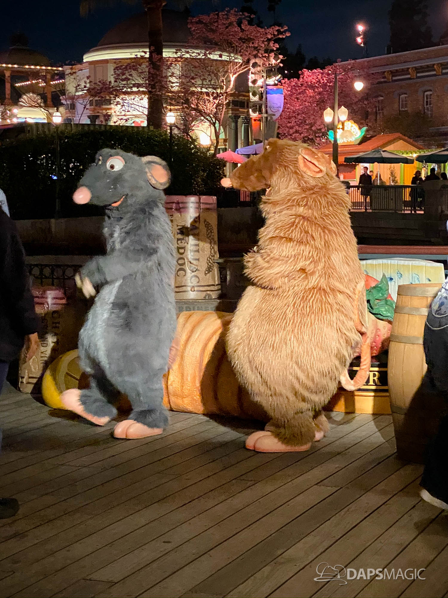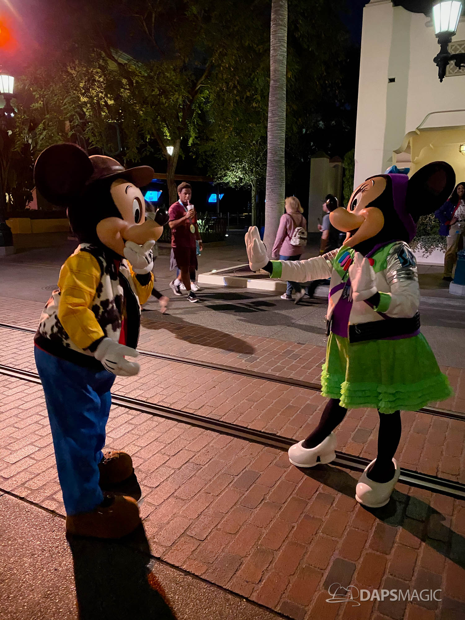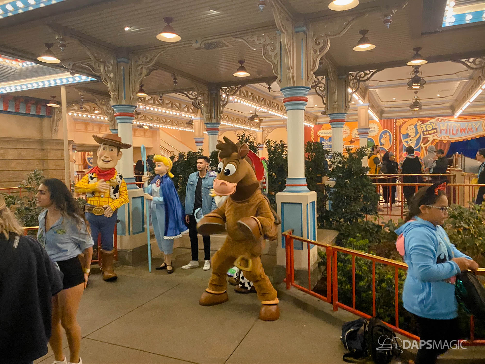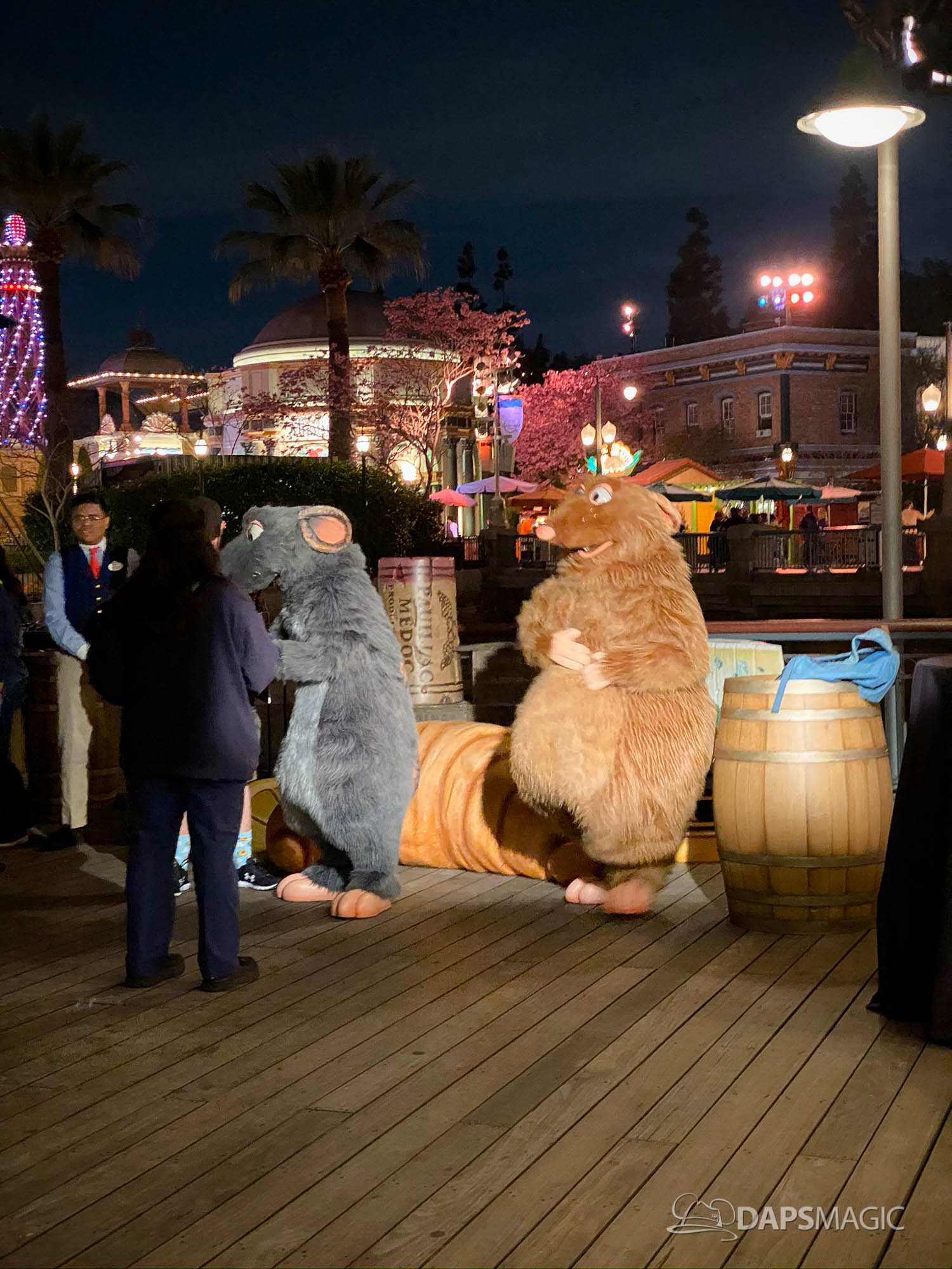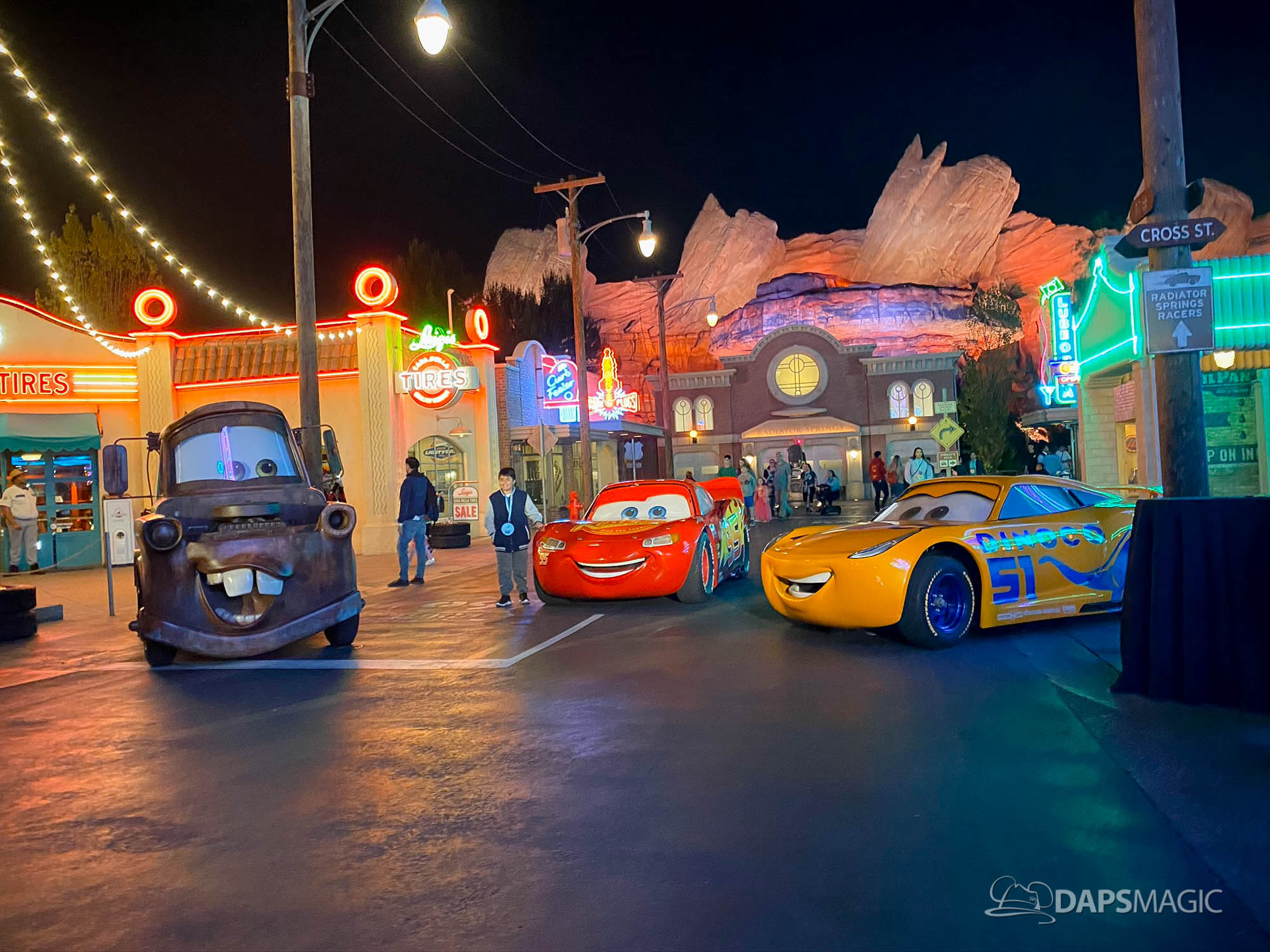 Throughout the night, there were quite a few Pixar characters to meet at Disney California Adventure. They were scattered around the park and were having a blast meeting guests. Almost all of them were Pixar characters, except for Mickey and Minnie Mouse. They were dressed up as Woody and Buzz and were completely adorable. This event was also the Disneyland Resort debut of the Onward characters, which were quite popular throughout the night.