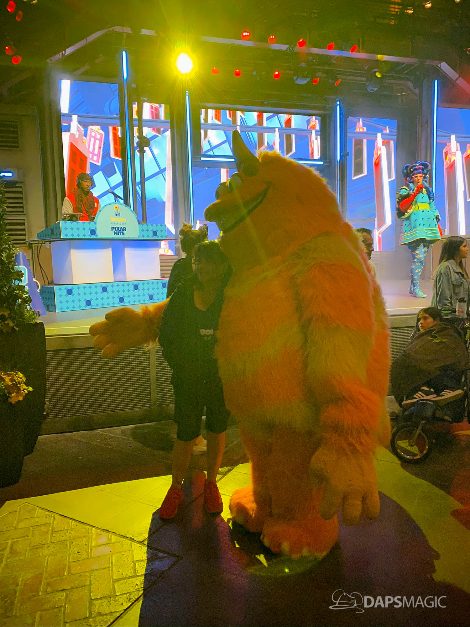 There were several different entertainment options offered at Disneyland After Dark: Pixar Nite. The biggest offering was the Colors of Pixar Fountain Show. This quick show was presented five times throughout the night. The World of Color fountains lit up the lagoon with vibrant colors as music from different Pixar films played. At the Palisades Stage at Paradise Gardens Park the Incredibles Party Zone let guests dance the night away with the Incredibles. Twice during the night Edna took over the stage for Edna’s Fashion Review where guests got to show off their best Pixar outfits. Edna, of course, was the judge. In Cars Land guests could dance the night away on Route 66 at Cars Land Rocks. Hollywood Backlot Stage offered the Monsters, Inc Dance Party! where guests could dance the night away with their favorite monsters from both Monsters, Inc and also Monsters University. Finally, at the Disney Theater in Hollywood Land the Pixar Shorts Festival Presented by Disney+ allowed guests to watch their favorite Pixar shorts.