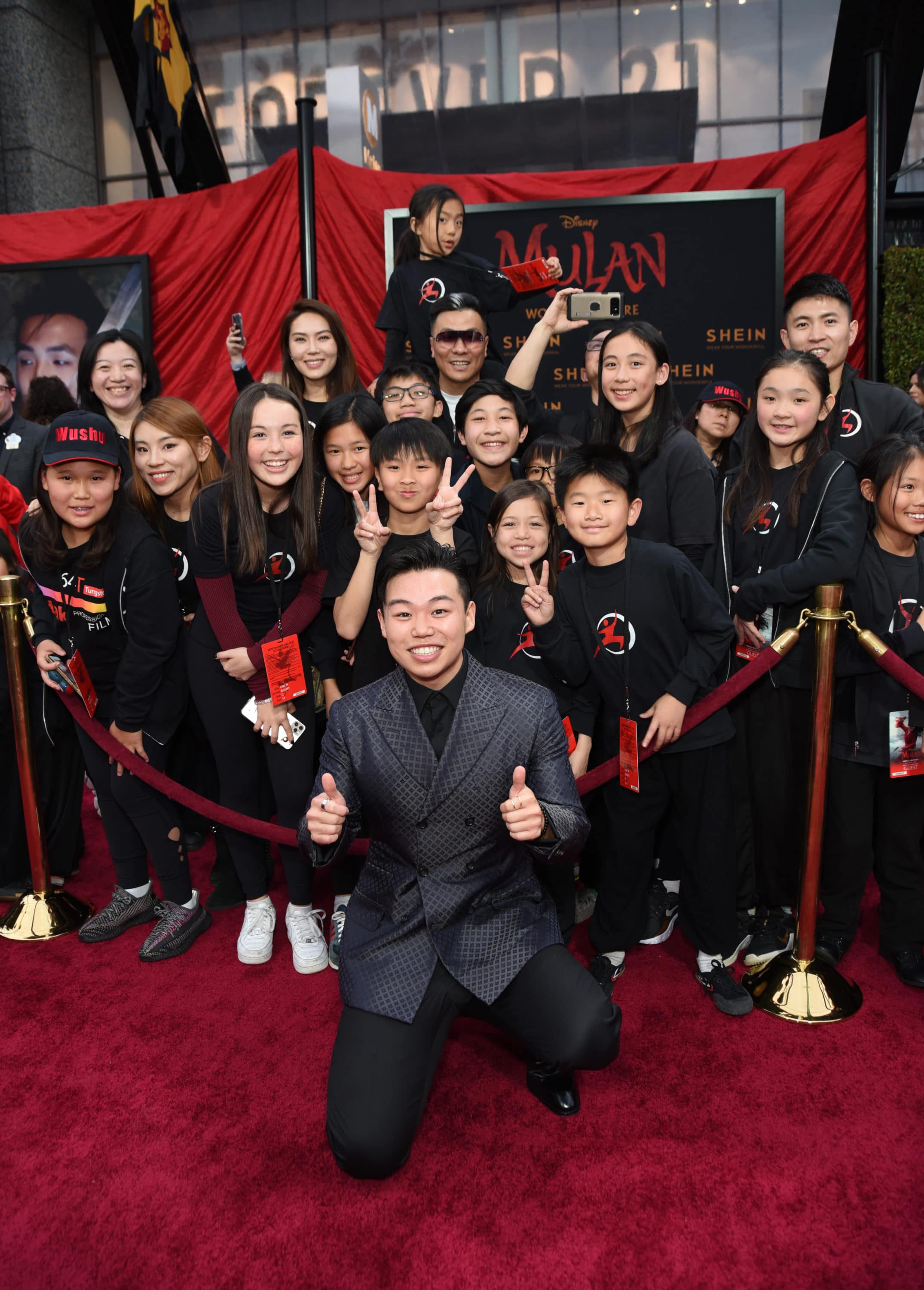 HOLLYWOOD, CALIFORNIA – MARCH 09: Jimmy Wong (C) and guests attend the World Premiere of Disney’s ‘MULAN’ at the Dolby Theatre on March 09, 2020 in Hollywood, California. (Photo by Alberto E. Rodriguez/Getty Images for Disney)