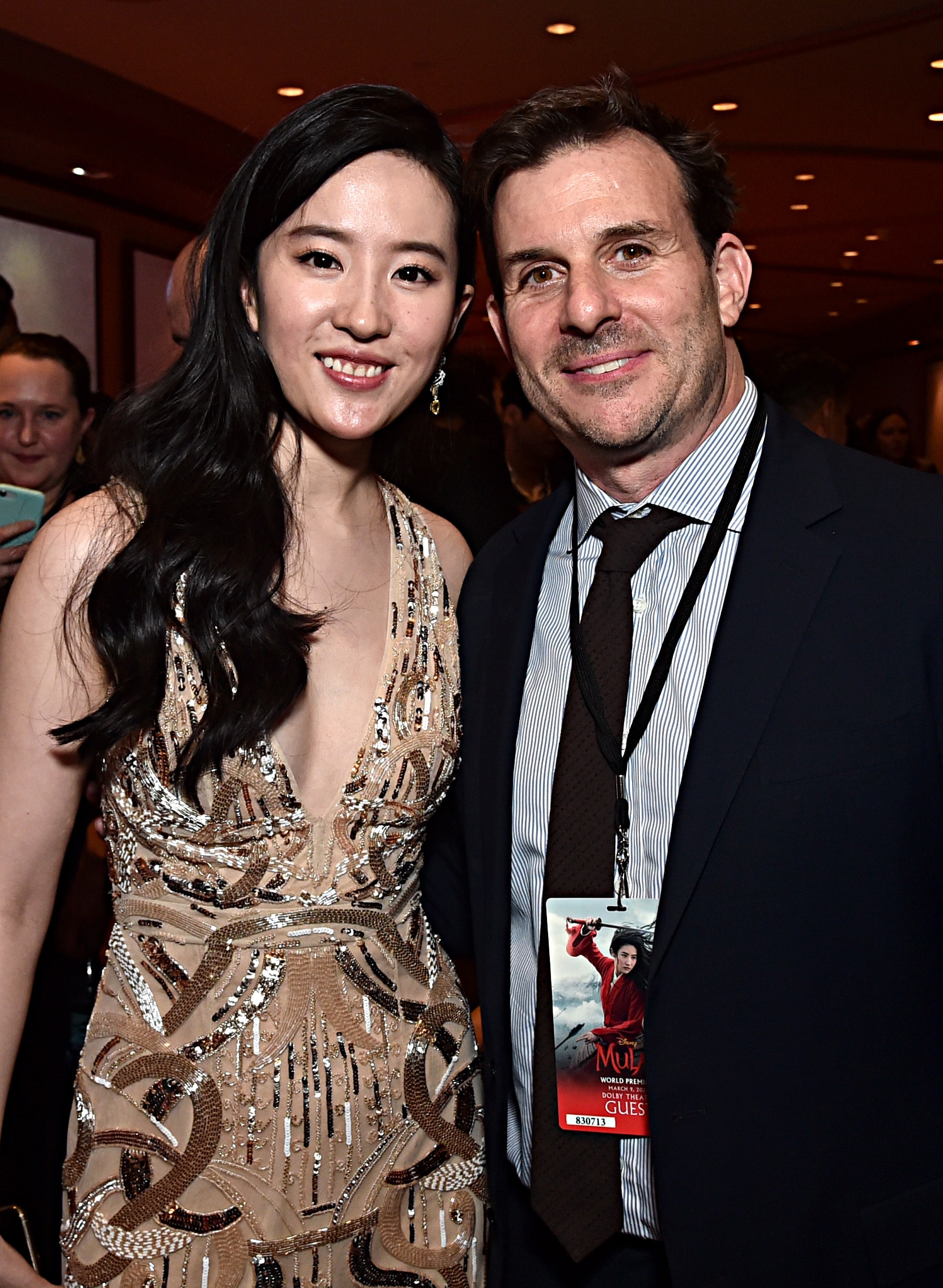 HOLLYWOOD, CALIFORNIA – MARCH 09: President of Walt Disney Studios Motion Picture Production Sean Bailey and Yifei Liu attend the World Premiere of Disney’s ‘MULAN’ at the Dolby Theatre on March 09, 2020 in Hollywood, California. (Photo by Alberto E. Rodriguez/Getty Images for Disney)